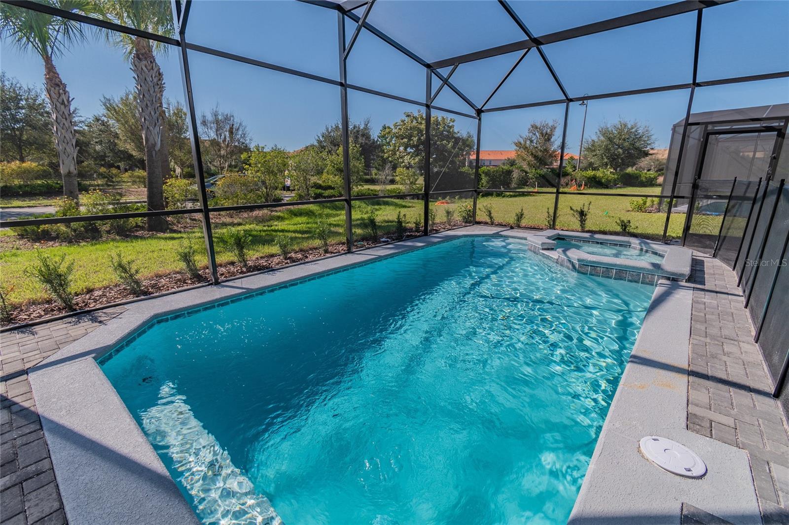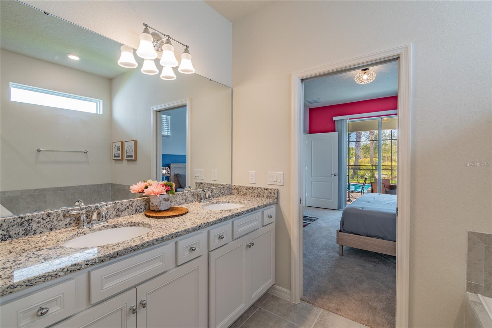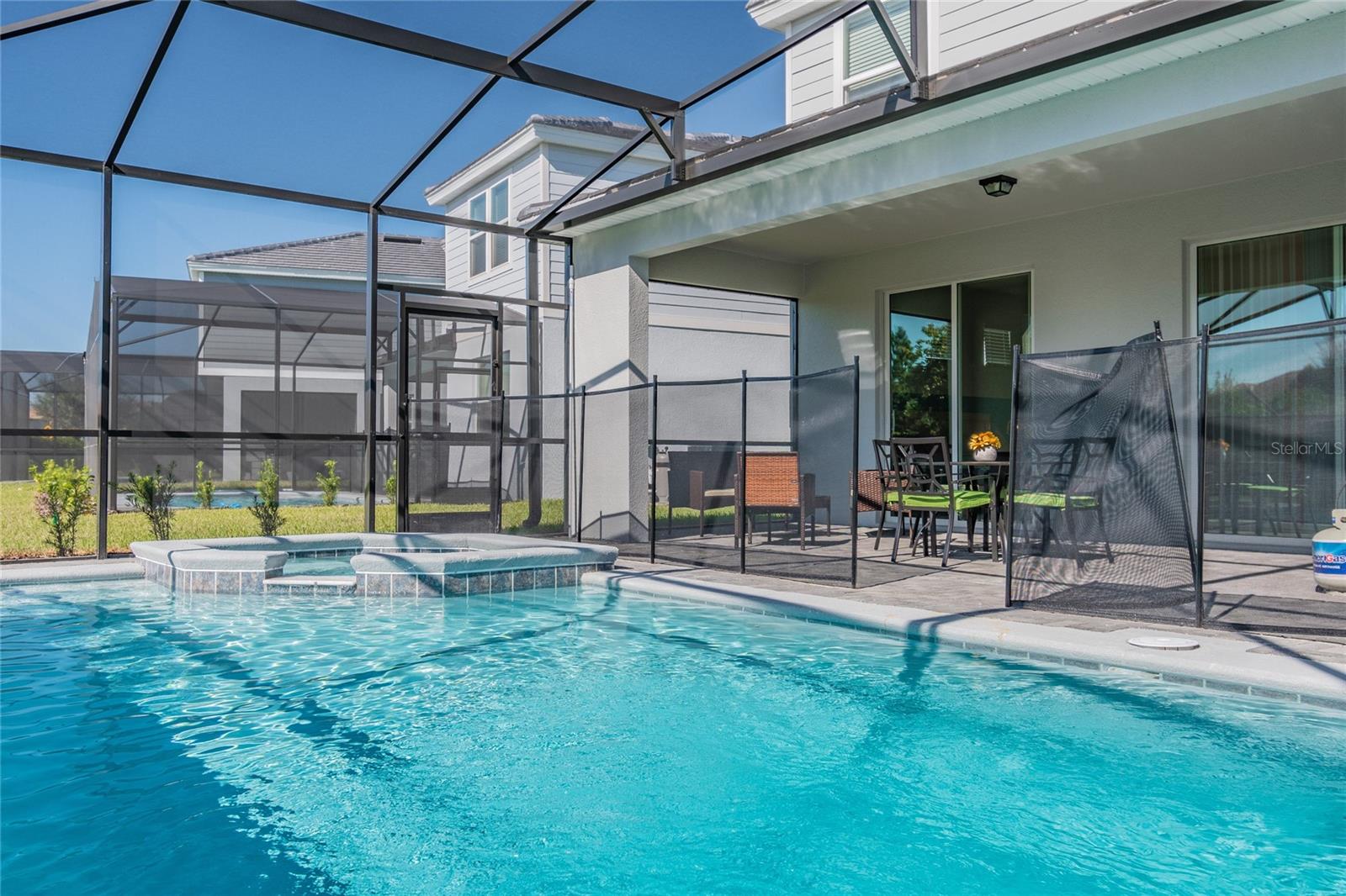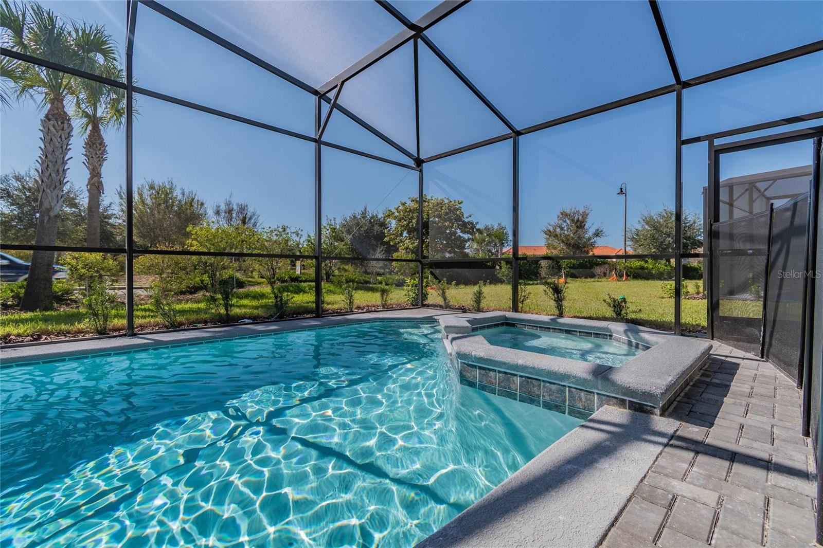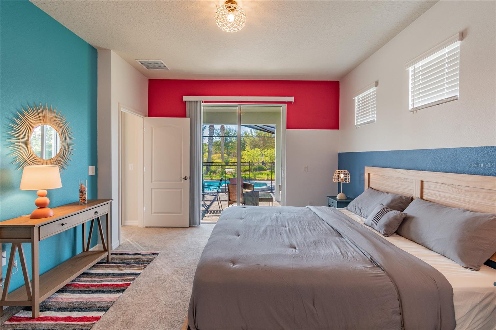 Welcome to this charming pool home in the sought-after Solterra community! With 5 bedrooms and 5.5 bathrooms, this residence is designed for comfort and style. The bright and airy interior showcases an open floor plan and tasteful decor, complemented by carpet and ceramic tile flooring throughout. The modern kitchen is equipped with stainless steel appliances, solid countertops, and a breakfast bar—perfect for cooking and entertaining. Step outside to enjoy your screened-in private pool and spa, which is heated for year-round relaxation. The spacious primary bedroom is located on the main floor, offering direct views of the pool area and featuring an ensuite bathroom with dual vanity sinks, a luxurious tub, and a separate shower. Each additional bedroom also has its own ensuite bath, ensuring privacy and convenience. This gated community offers fantastic amenities, including a clubhouse, resort-style pool, playground, and tennis courts. Whether you're looking for a primary residence or a high-potential investment, this property’s prime location and features make it a top choice!