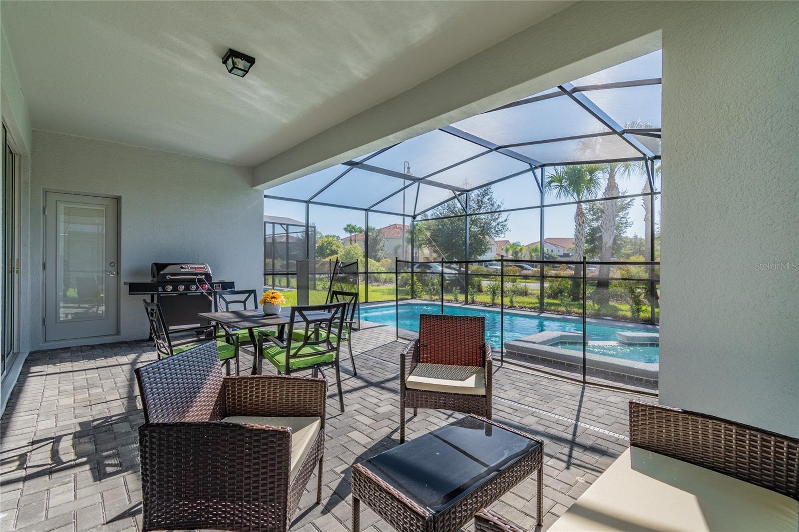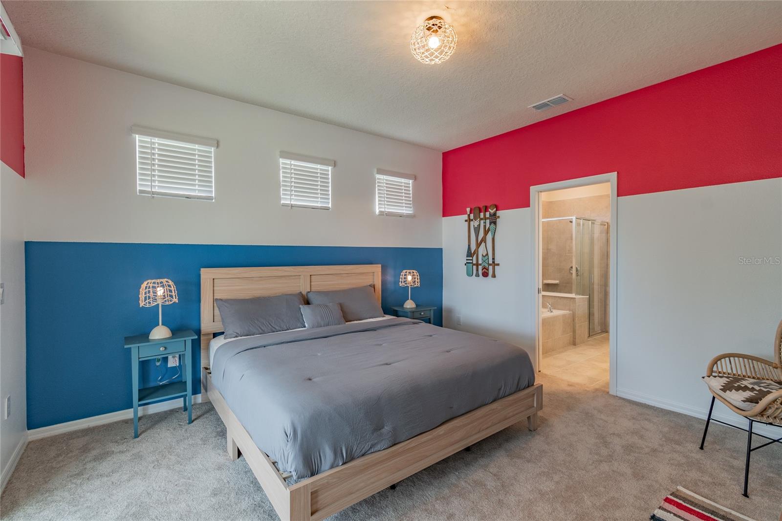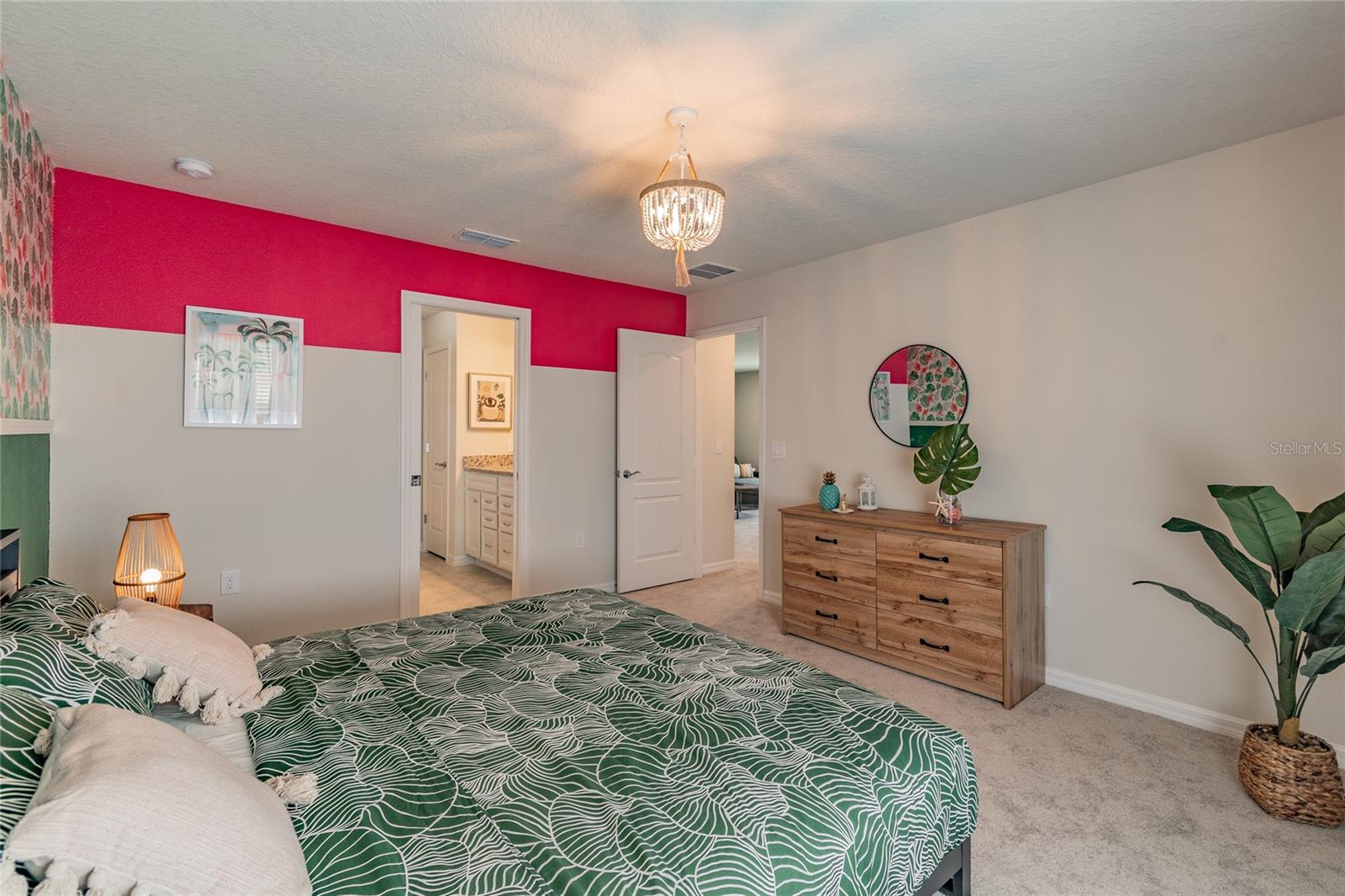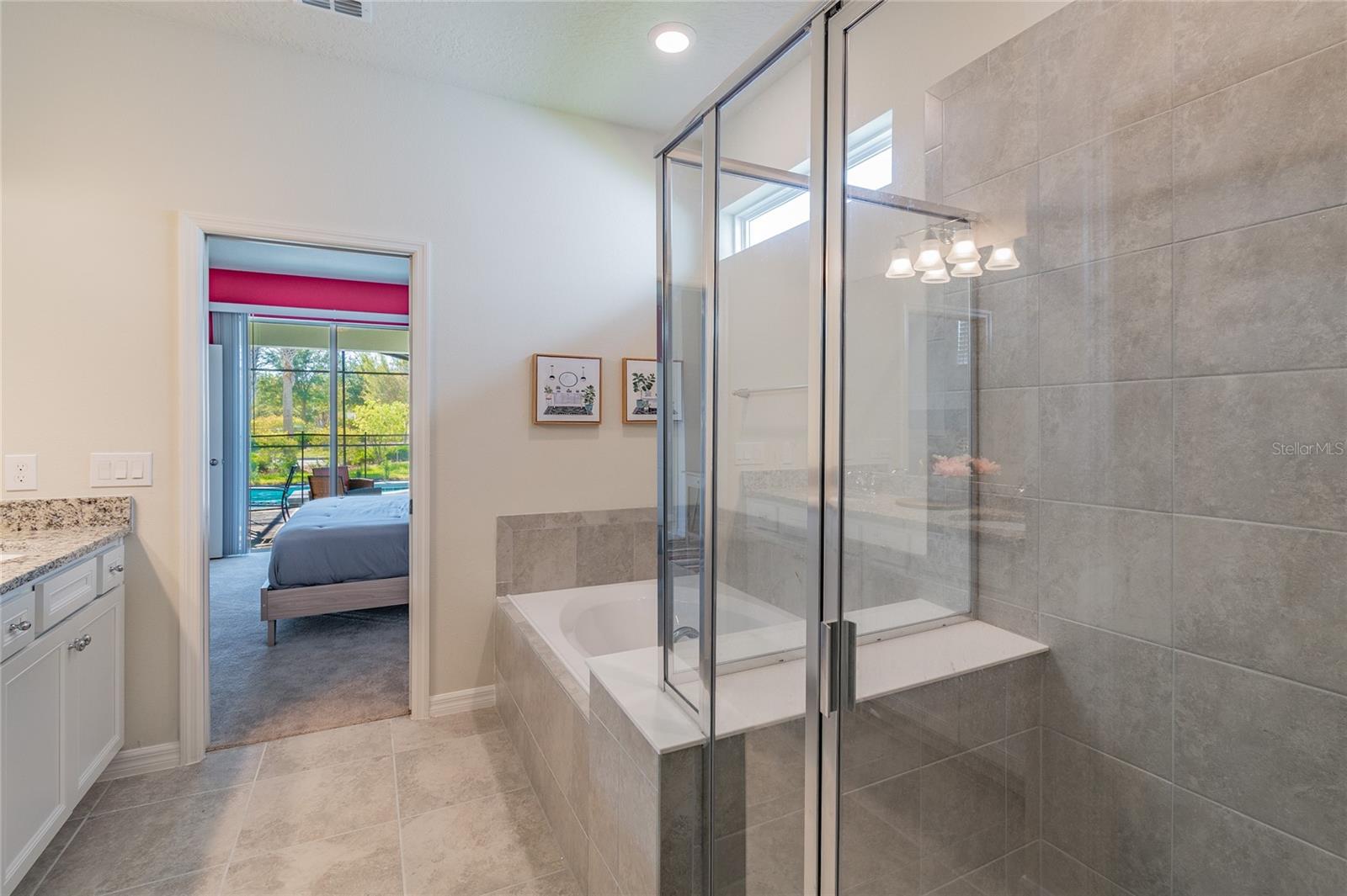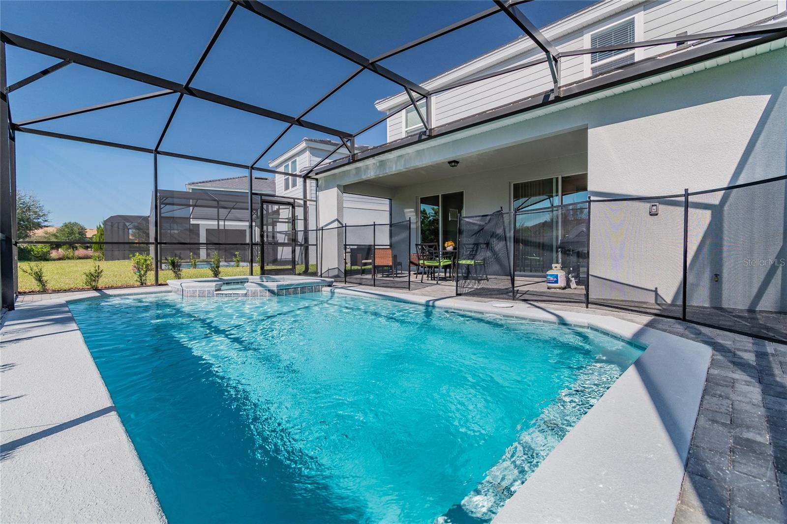 Welcome to this charming pool home in the sought-after Solterra community! With 5 bedrooms and 5.5 bathrooms, this residence is designed for comfort and style. The bright and airy interior showcases an open floor plan and tasteful decor, complemented by carpet and ceramic tile flooring throughout. The modern kitchen is equipped with stainless steel appliances, solid countertops, and a breakfast bar—perfect for cooking and entertaining. Step outside to enjoy your screened-in private pool and spa, which is heated for year-round relaxation. The spacious primary bedroom is located on the main floor, offering direct views of the pool area and featuring an ensuite bathroom with dual vanity sinks, a luxurious tub, and a separate shower. Each additional bedroom also has its own ensuite bath, ensuring privacy and convenience. This gated community offers fantastic amenities, including a clubhouse, resort-style pool, playground, and tennis courts. Whether you're looking for a primary residence or a high-potential investment, this property’s prime location and features make it a top choice!