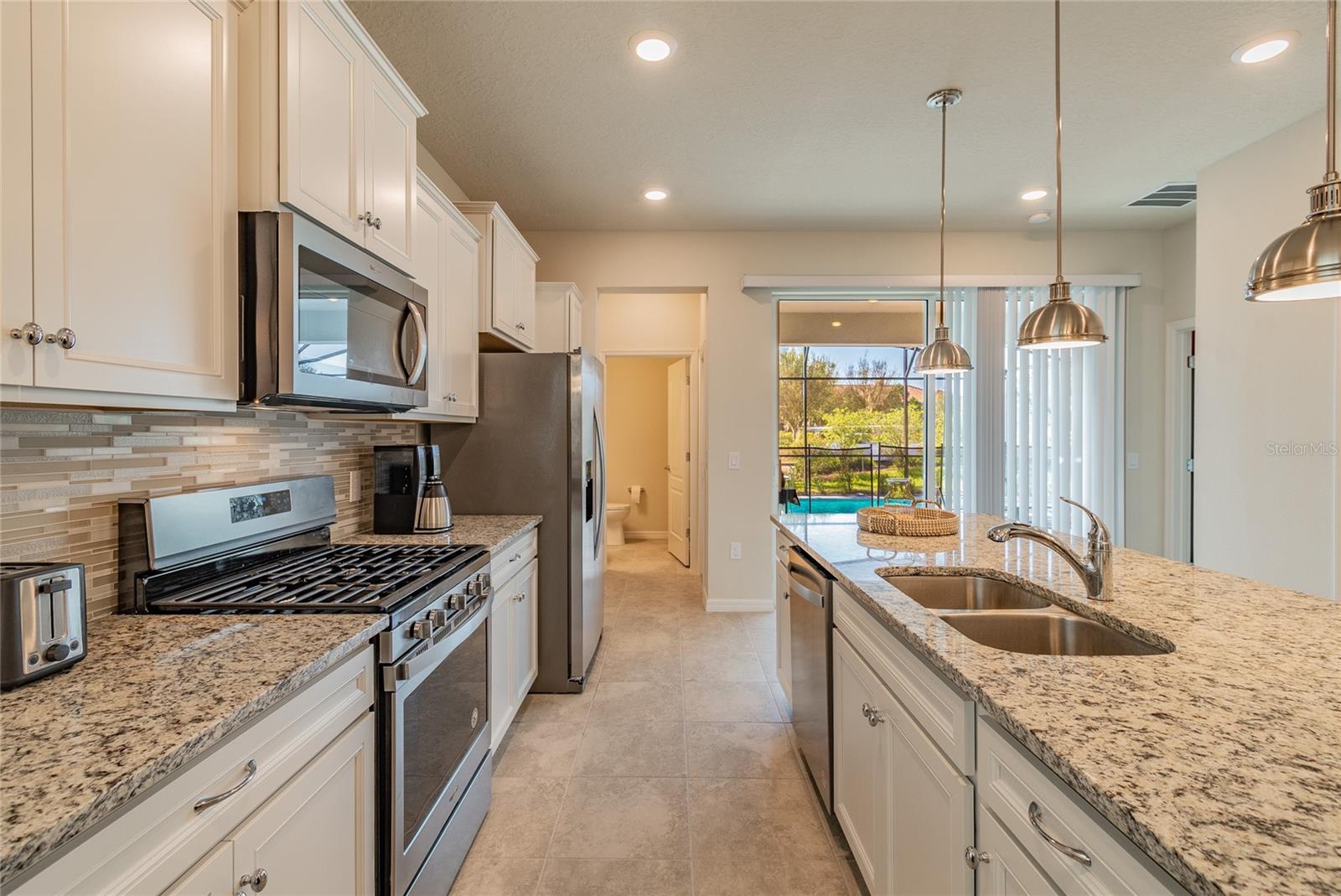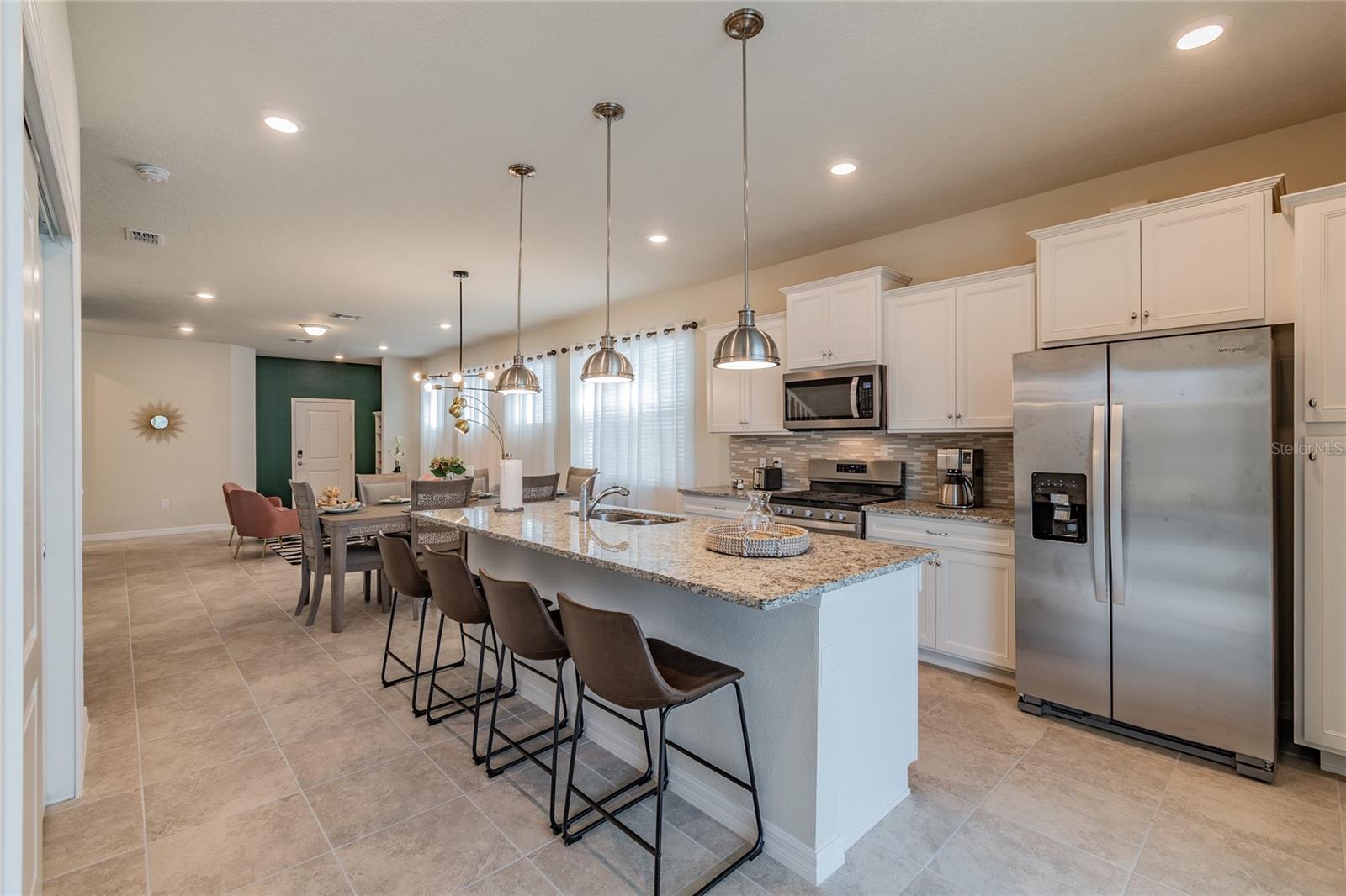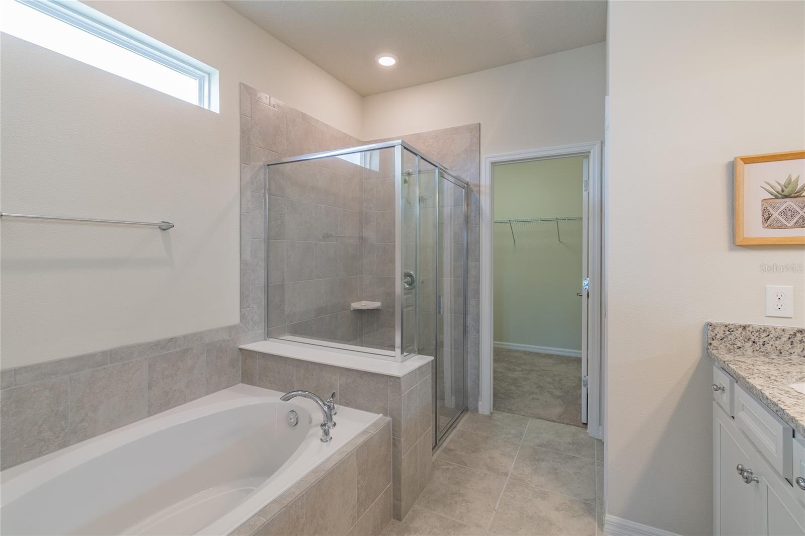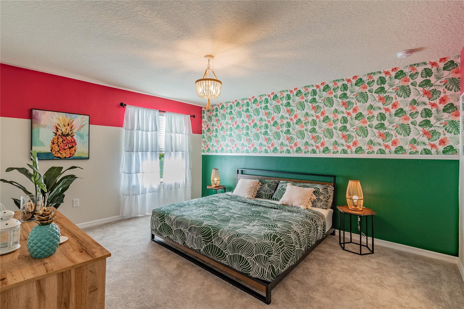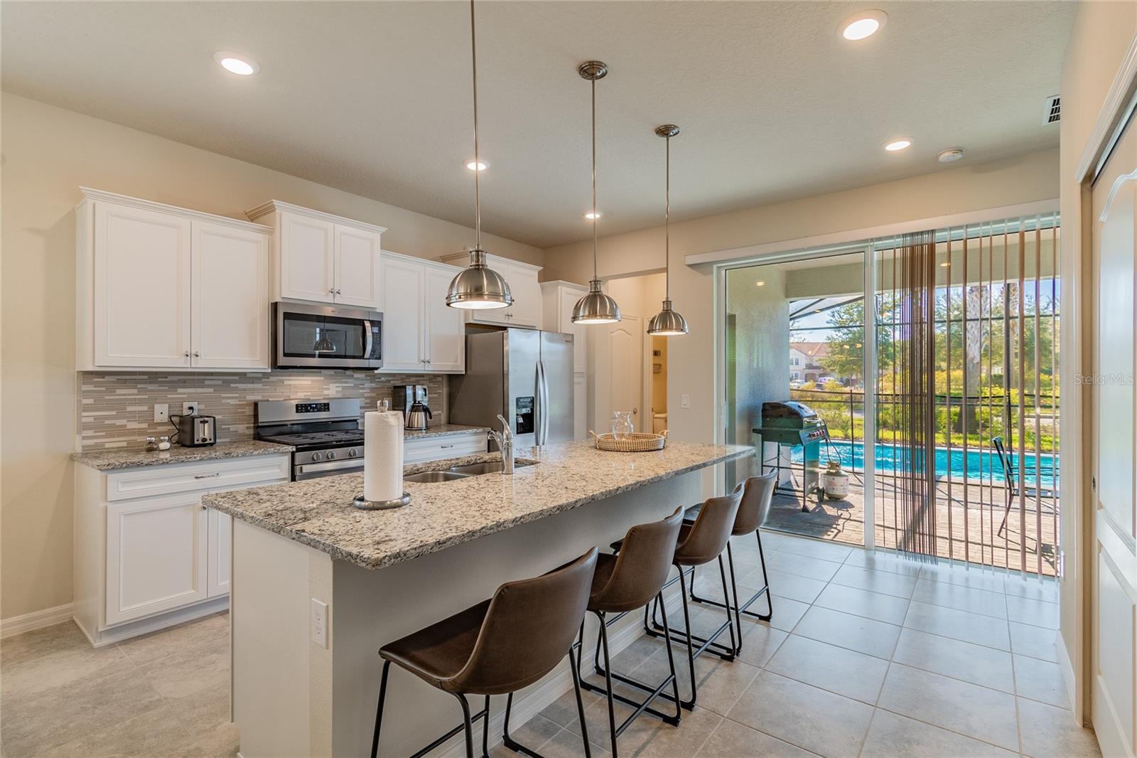 Welcome to this charming pool home in the sought-after Solterra community! With 5 bedrooms and 5.5 bathrooms, this residence is designed for comfort and style. The bright and airy interior showcases an open floor plan and tasteful decor, complemented by carpet and ceramic tile flooring throughout. The modern kitchen is equipped with stainless steel appliances, solid countertops, and a breakfast bar—perfect for cooking and entertaining. Step outside to enjoy your screened-in private pool and spa, which is heated for year-round relaxation. The spacious primary bedroom is located on the main floor, offering direct views of the pool area and featuring an ensuite bathroom with dual vanity sinks, a luxurious tub, and a separate shower. Each additional bedroom also has its own ensuite bath, ensuring privacy and convenience. This gated community offers fantastic amenities, including a clubhouse, resort-style pool, playground, and tennis courts. Whether you're looking for a primary residence or a high-potential investment, this property’s prime location and features make it a top choice!