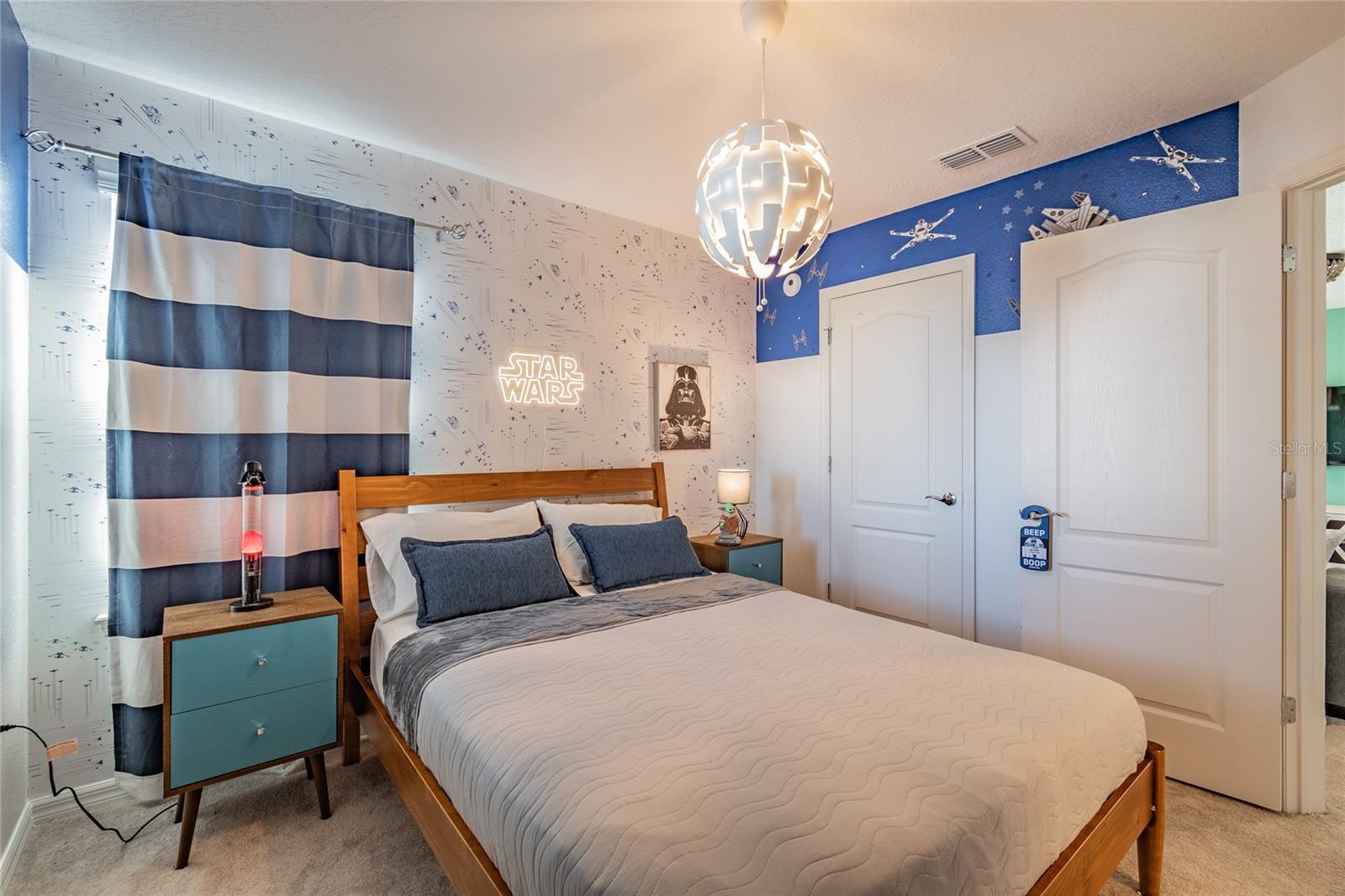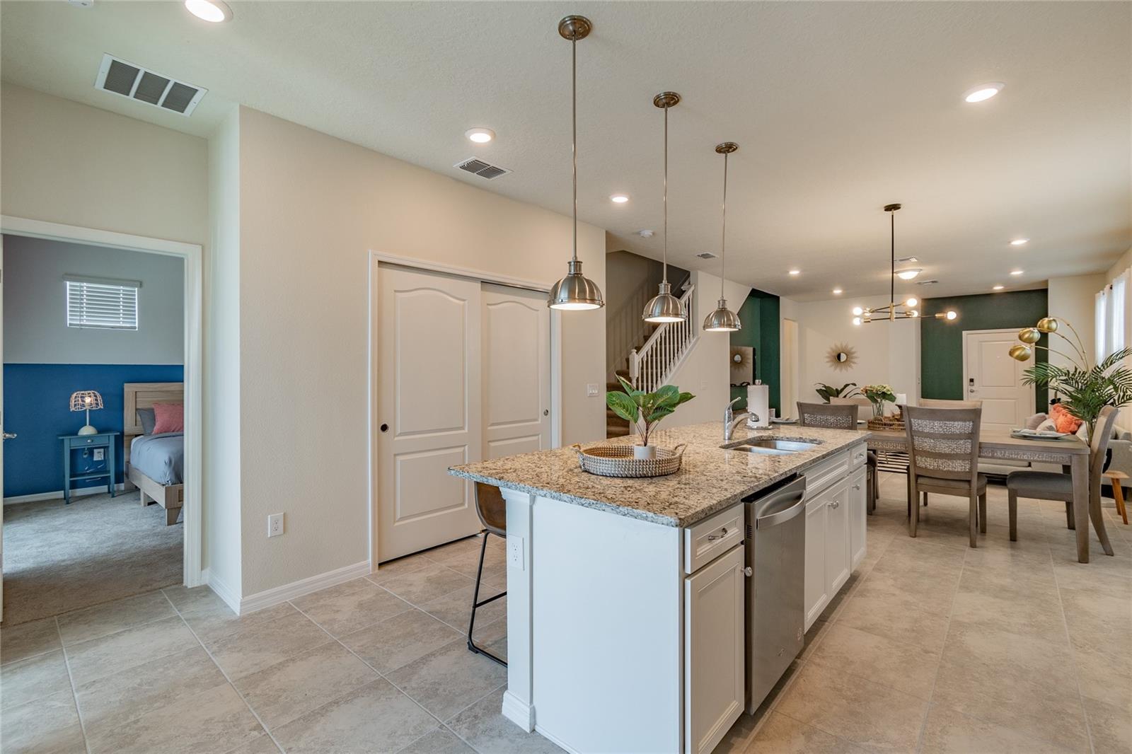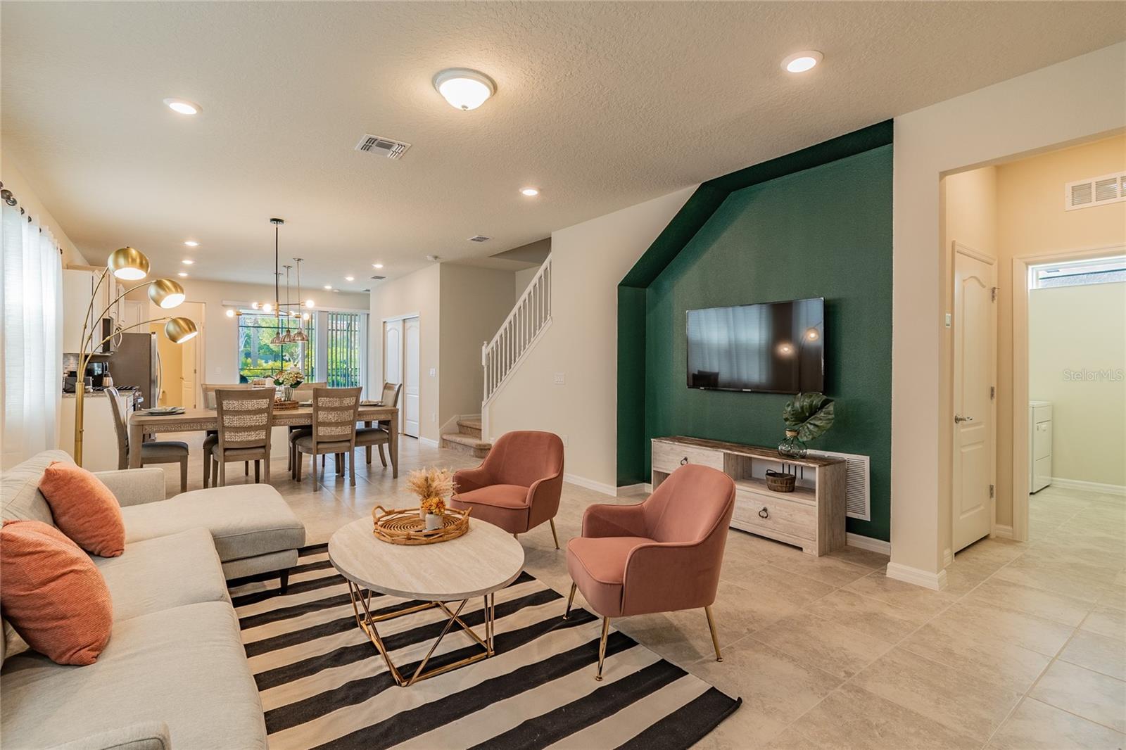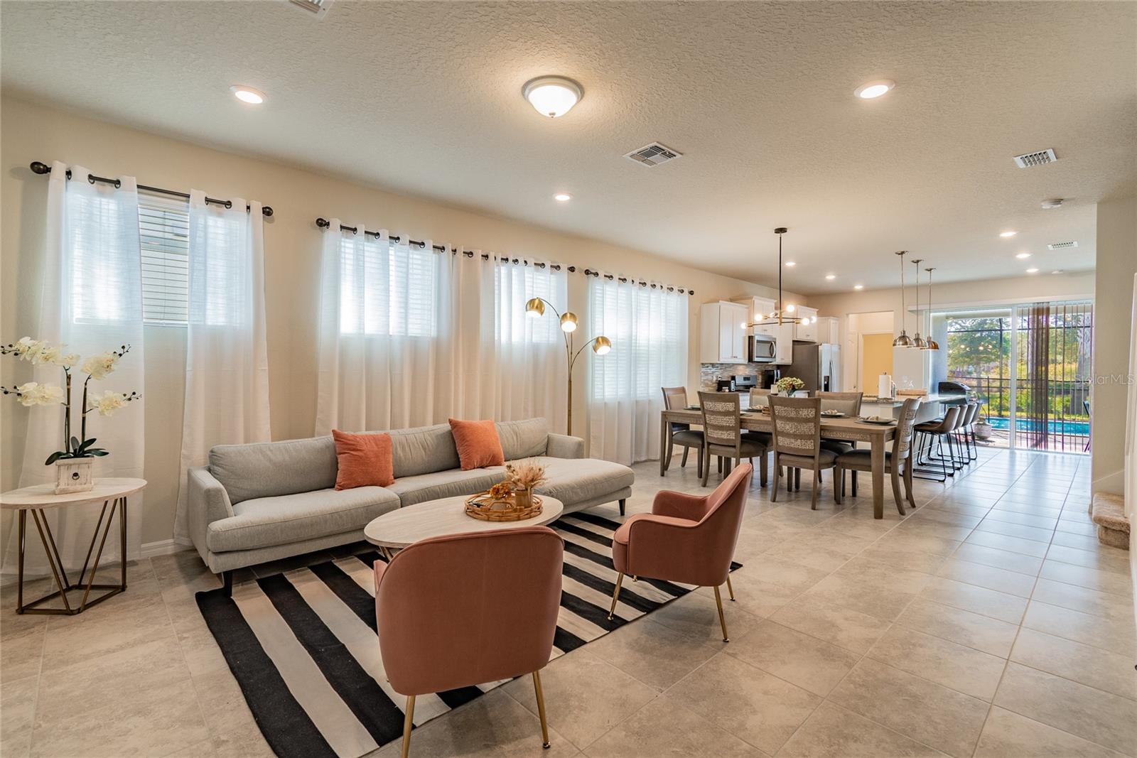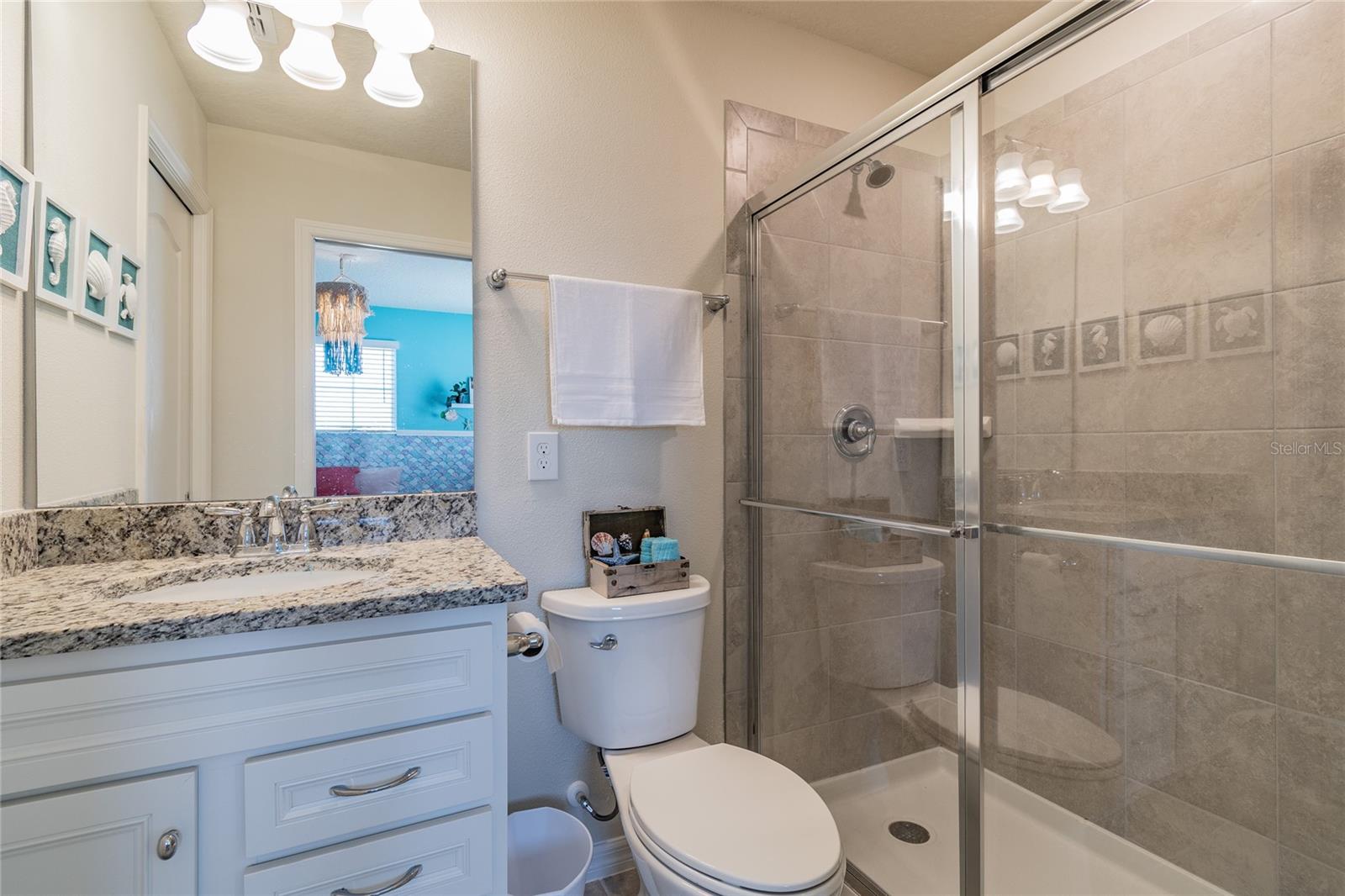 Welcome to this charming pool home in the sought-after Solterra community! With 5 bedrooms and 5.5 bathrooms, this residence is designed for comfort and style. The bright and airy interior showcases an open floor plan and tasteful decor, complemented by carpet and ceramic tile flooring throughout. The modern kitchen is equipped with stainless steel appliances, solid countertops, and a breakfast bar—perfect for cooking and entertaining. Step outside to enjoy your screened-in private pool and spa, which is heated for year-round relaxation. The spacious primary bedroom is located on the main floor, offering direct views of the pool area and featuring an ensuite bathroom with dual vanity sinks, a luxurious tub, and a separate shower. Each additional bedroom also has its own ensuite bath, ensuring privacy and convenience. This gated community offers fantastic amenities, including a clubhouse, resort-style pool, playground, and tennis courts. Whether you're looking for a primary residence or a high-potential investment, this property’s prime location and features make it a top choice!