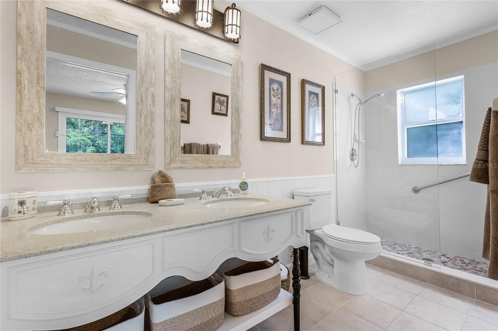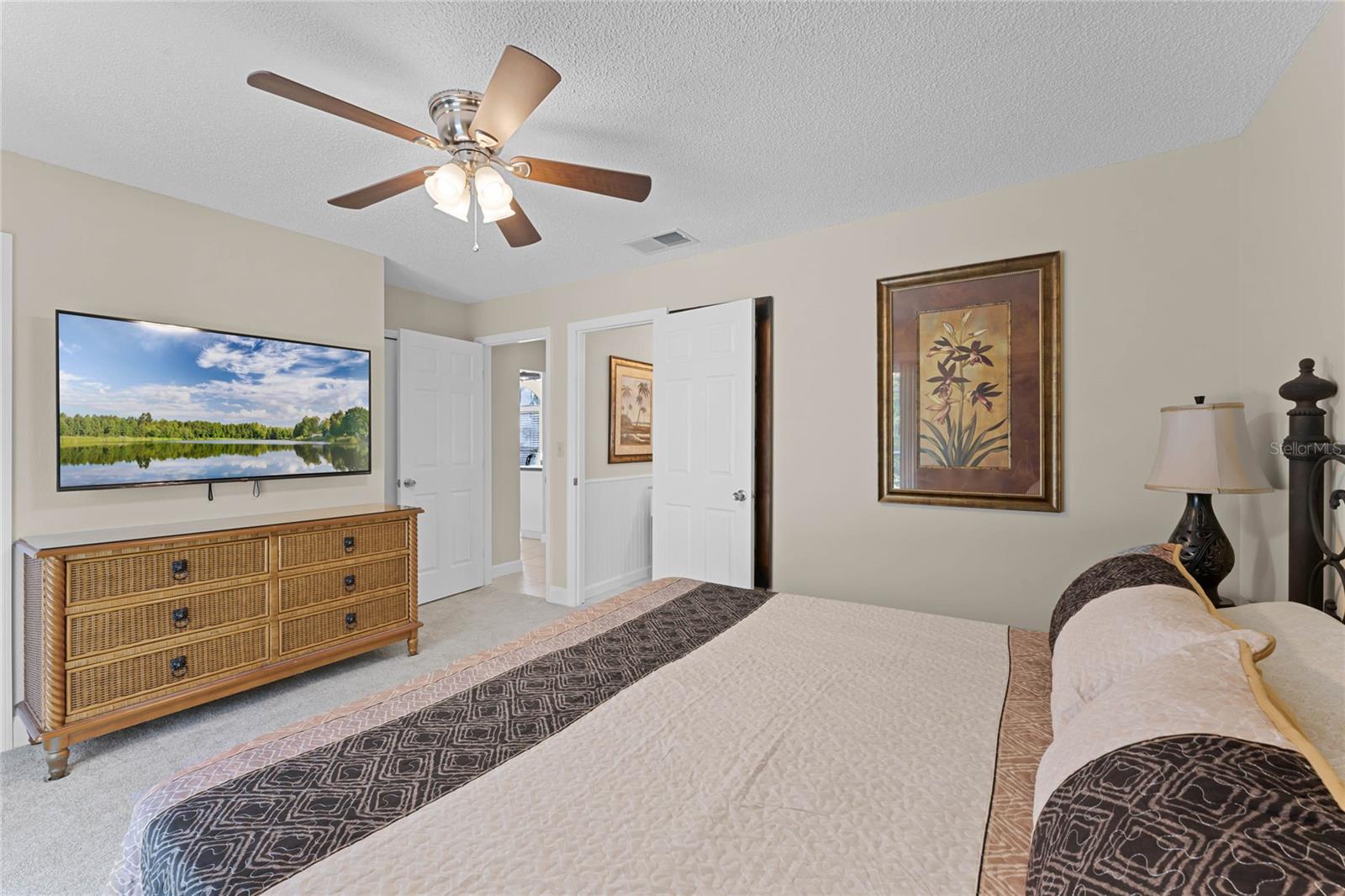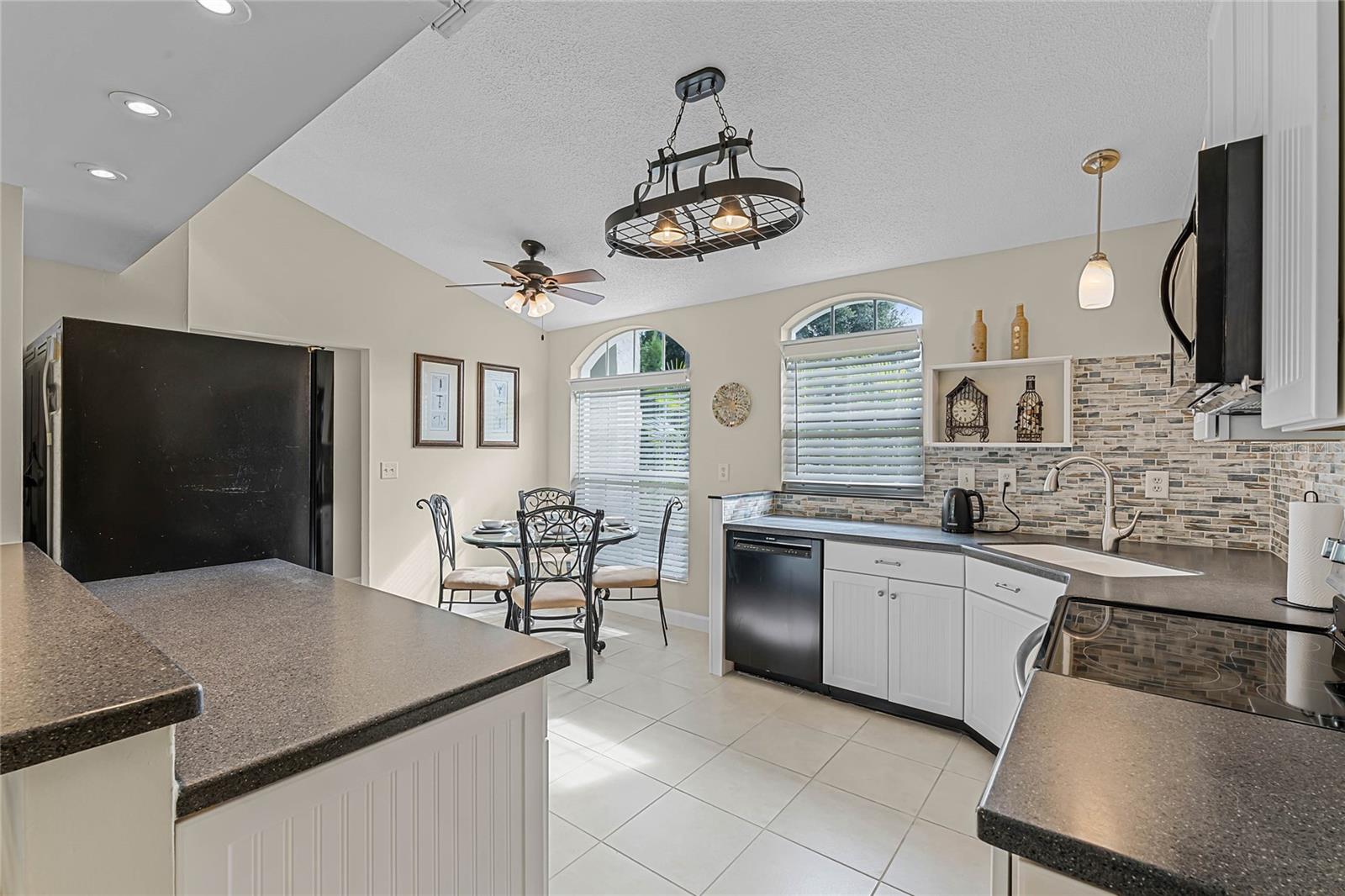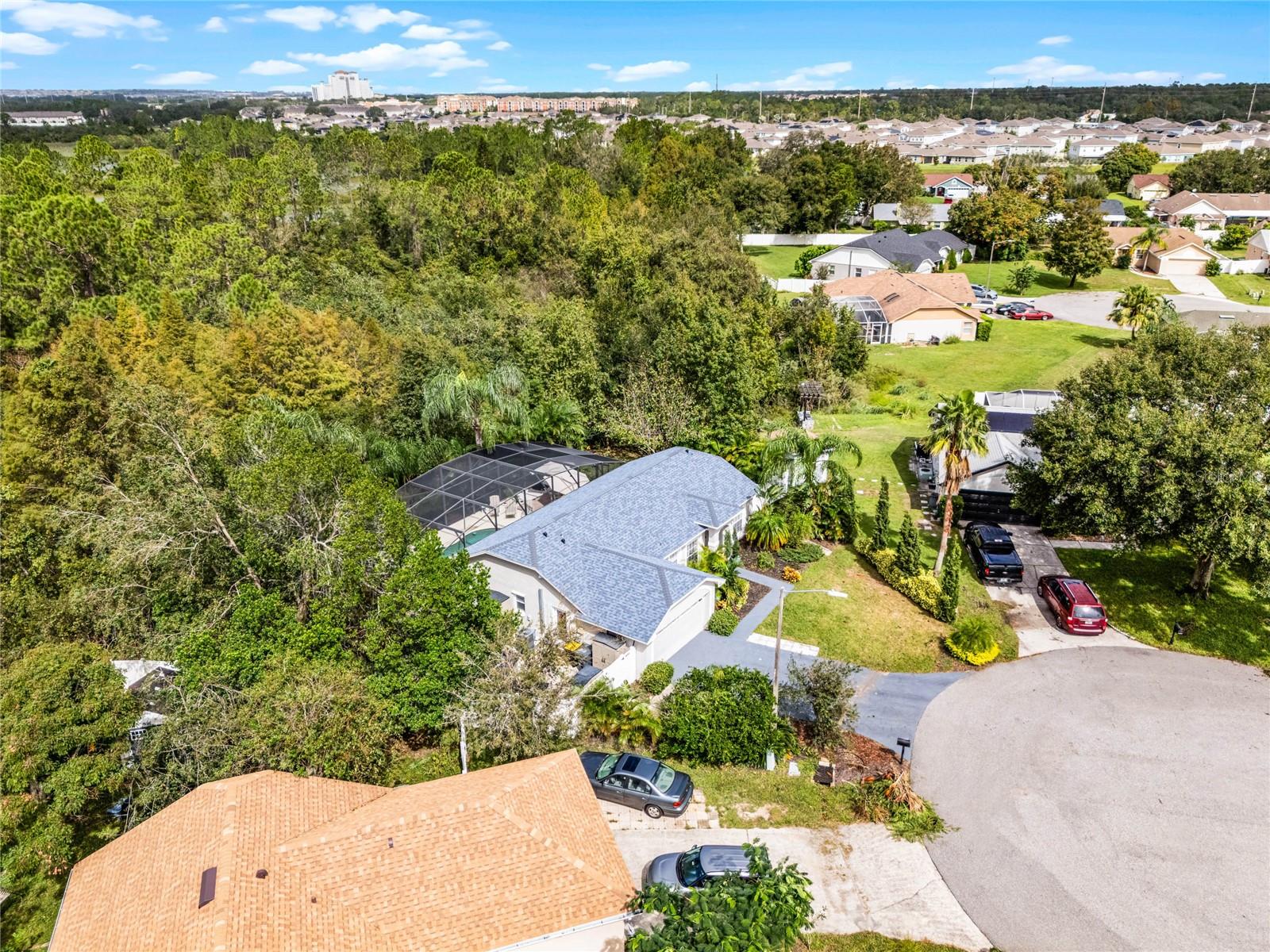 Welcome home to your tropical oasis in the heart of Champions Gate. This 3 bedroom, 2 bath pool home really is a hidden gem, situated on over 2.11 acres on a cul de sac in the Loma Linda community. As you enter the home the renovated kitchen is to your left, with self closing, pull out shelving offering plenty of storage, a breakfast nook and breakfast bar. The kitchen then opens up to the family room, offering plenty of space to sit and enjoy the spectacular views of the pool and tranquil garden beyond. Sliding glass doors and a picture window makes the space bright and airy. To the left of the home is the primary suite, with a spacious bedroom and sliding glass doors onto the lanai, newly appointed closets and a updated bathroom with vanity. To the right of the home are bedrooms 2 and 3 with a full bathroom in between, bedroom 2 is ensuite giving private access to the bathroom. All bedrooms have new carpet and the whole interior has been freshly painted. A renovated laundry room offers a clothes folding area and plenty of storage, which in turn leads to the bonus room. The 2 car garage was converted into a living/games room which offers endless opportunities, a home office, play room with access to the garden, which is all under AC. The oversized pool and screened in lanai offers so much space for entertaining and relaxing with the family. The fenced in garden is beautifully landscaped, with automatic sprinklers, fruit trees, storage sheds and even a Gnome house. The property extends over 500 feet straight back into a nature preserve. There is a raised walkway that leads you through a nature trail to a private pond and floating dock. Need a space to get away from it all ? Then look no further this truly is a rare find just minutes from Disney, the attractions, restaurants and shopping. The roof is only 3 years old and the hoa is only $23 a month !!! Call today for your own private tour, whether you are looking for full time living, a second home or to rent short/long term this home has it all.