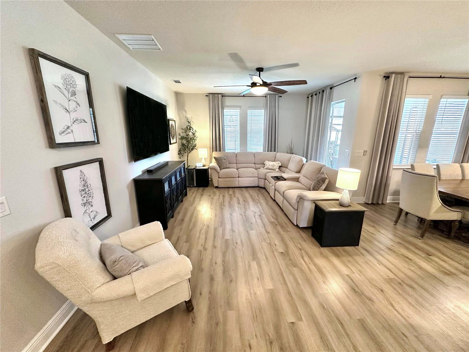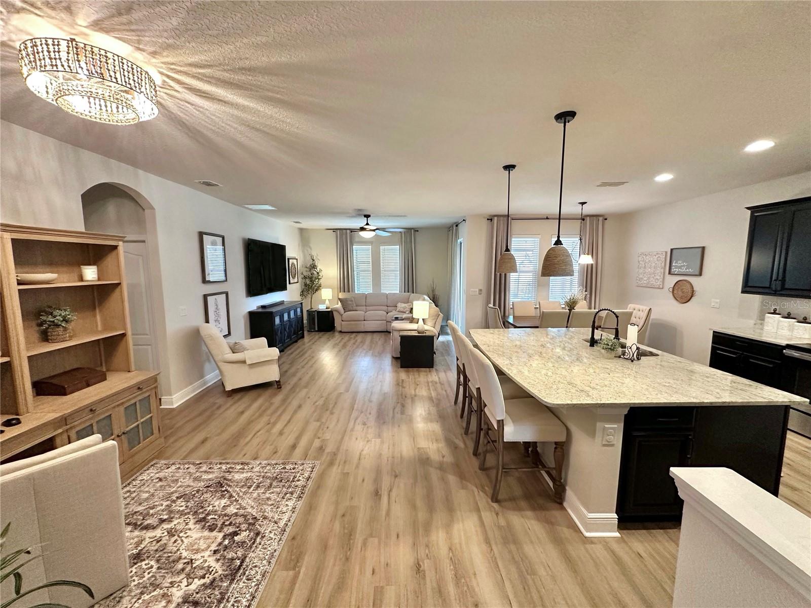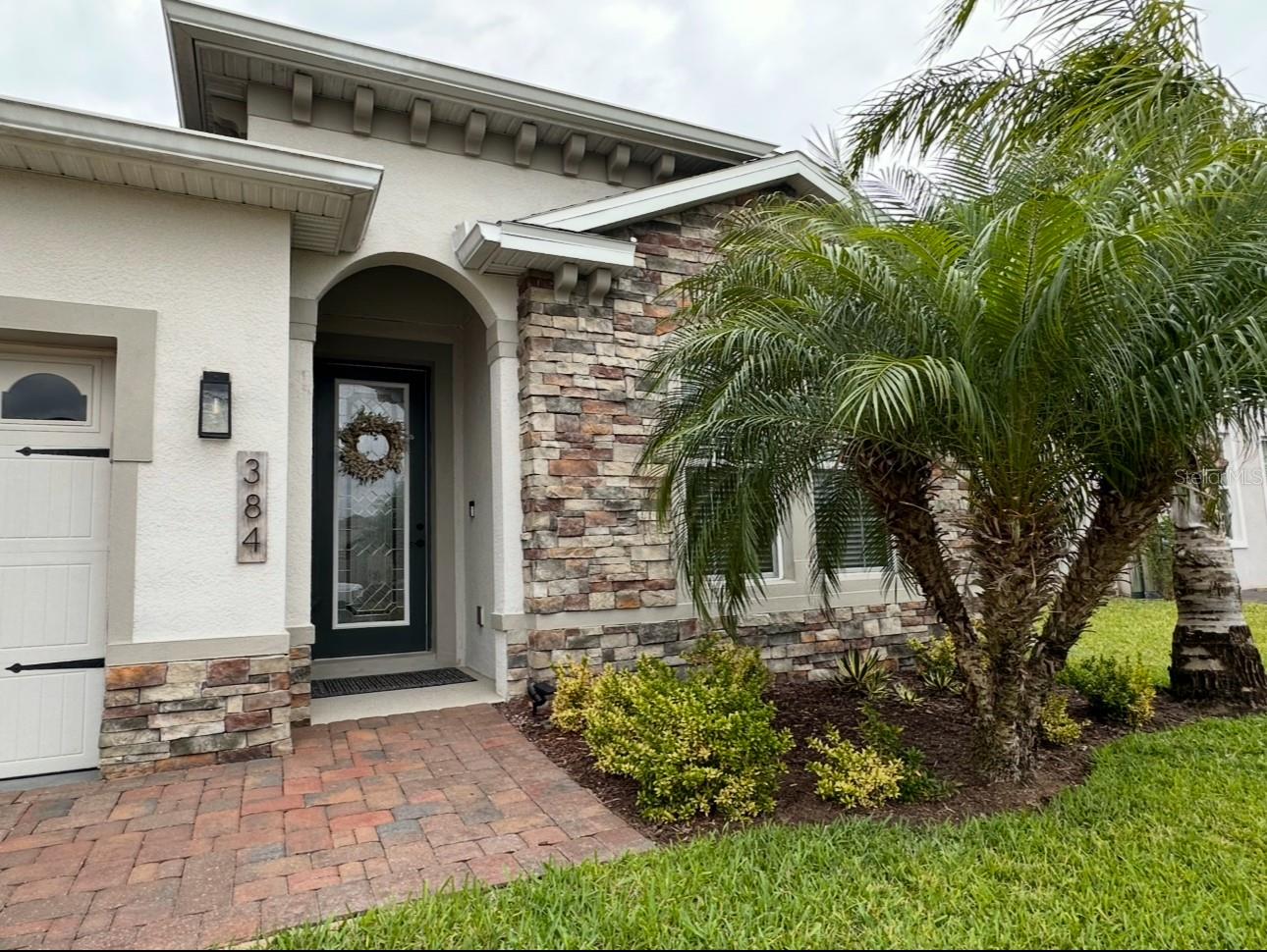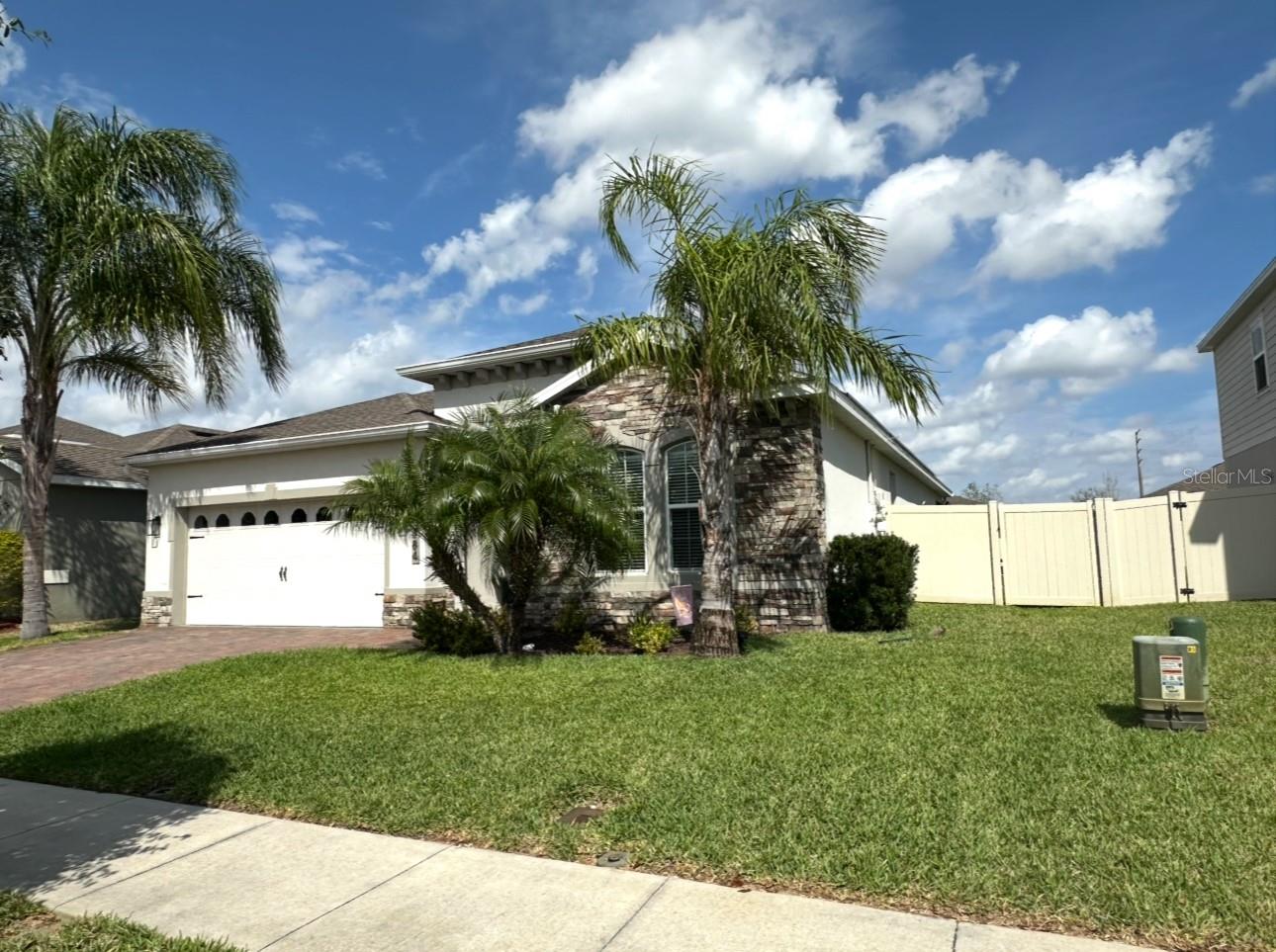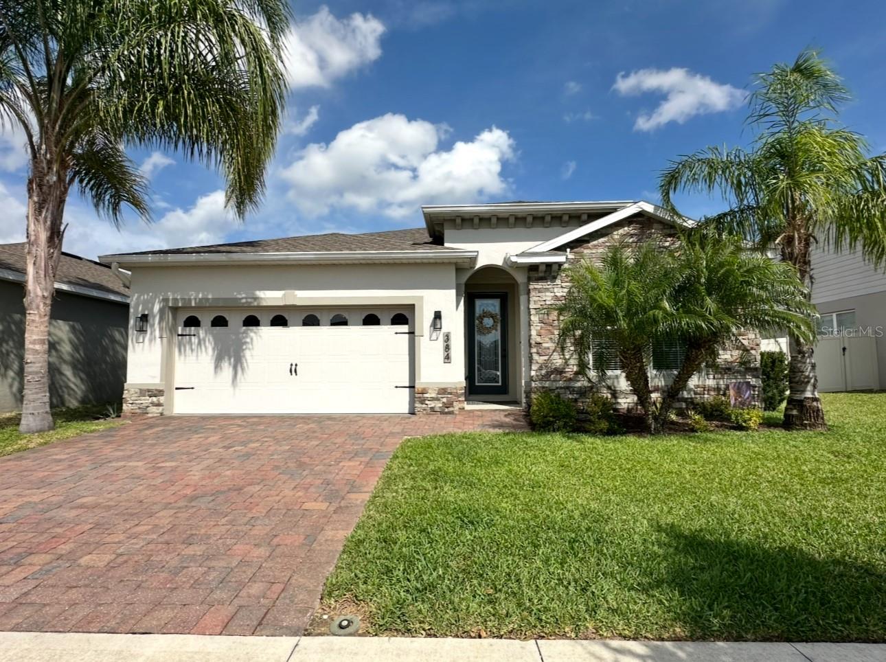 Welcome to this beautifully upgraded 4-bedroom, 3-bathroom home, offering a spacious open floor plan designed for modern living. This move-in-ready property features a range of impressive upgrades that combine style and functionality. Enjoy the energy efficiency of a water softener and solar panels, which help lower utility costs while enhancing comfort. The extended lanai is perfect for outdoor relaxation or entertaining, and the home boasts two walk-in showers and a tub-shower combo in the bathrooms for added convenience. With 9-foot ceilings throughout, the home feels open and airy, and the durable LVP flooring ensures easy maintenance. Upgraded tile in key areas adds a touch of elegance, and the fully equipped kitchen comes with essential appliances, including a fridge, washer, and dryer. Additional storage space is available in the garage with overhead racks, while the sleek epoxy garage floor ensures a clean and easy-to-maintain surface. The home also features an Ecobee thermostat, offering smart home temperature control, and residents can enjoy the nearby community pool on warm Florida days. Located just 15 minutes from Disney and 30 minutes from Universal Studios, this property offers easy access to world-renowned theme parks while still providing a peaceful retreat. The community also hosts regular food truck nights, offering residents the chance to enjoy delicious meals and socialize with neighbors. The additional home in the backyard provides excellent flexibility for multi-generational living or offers a great investment opportunity (a fence will be installed for privacy between the properties). (See MLS #G5093073 for other home being sold). Don’t miss out on this exceptional property—schedule a showing today!