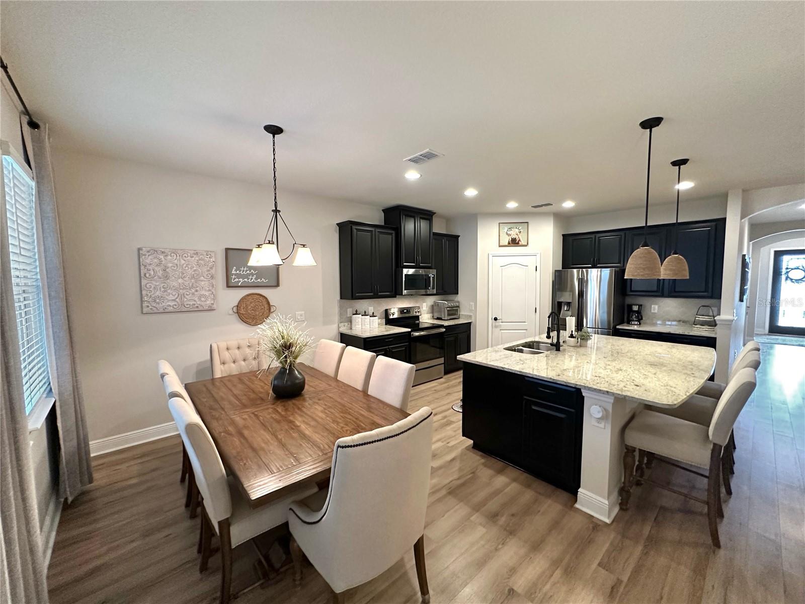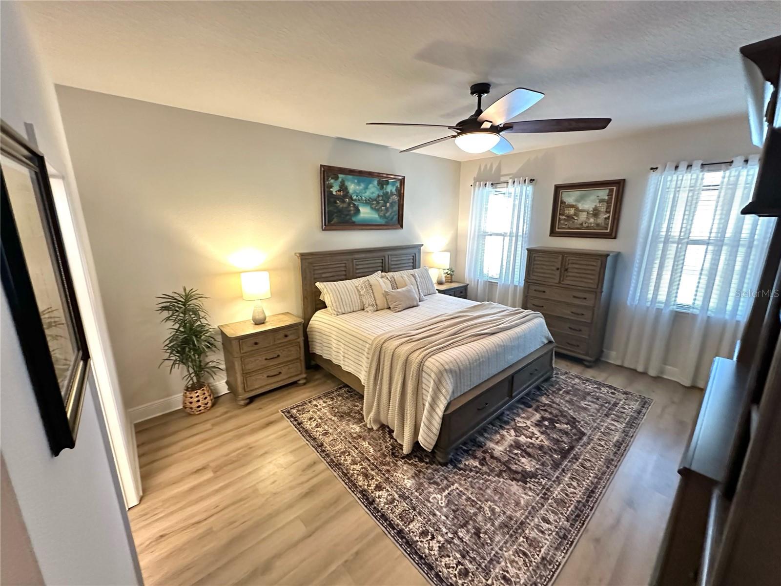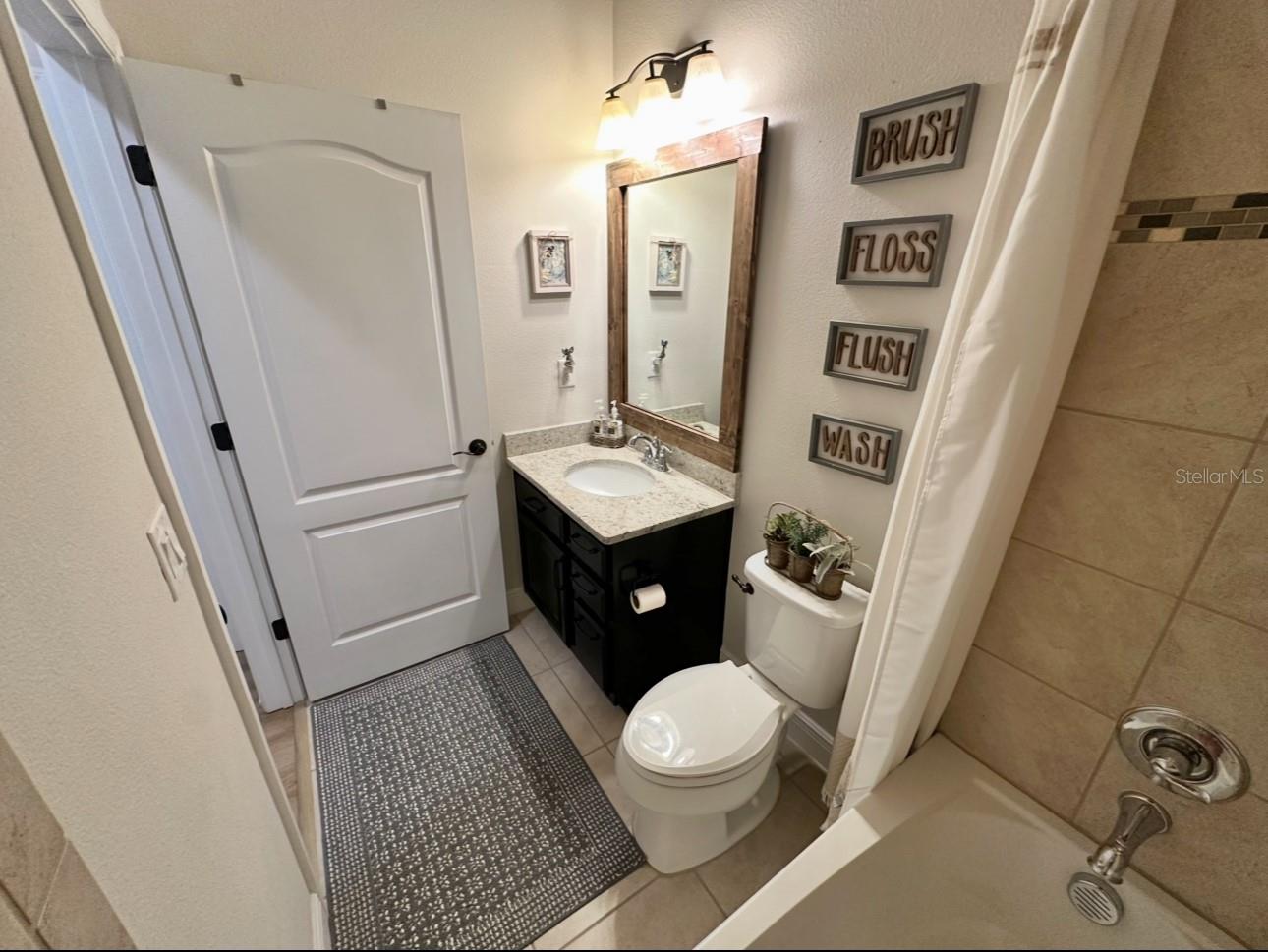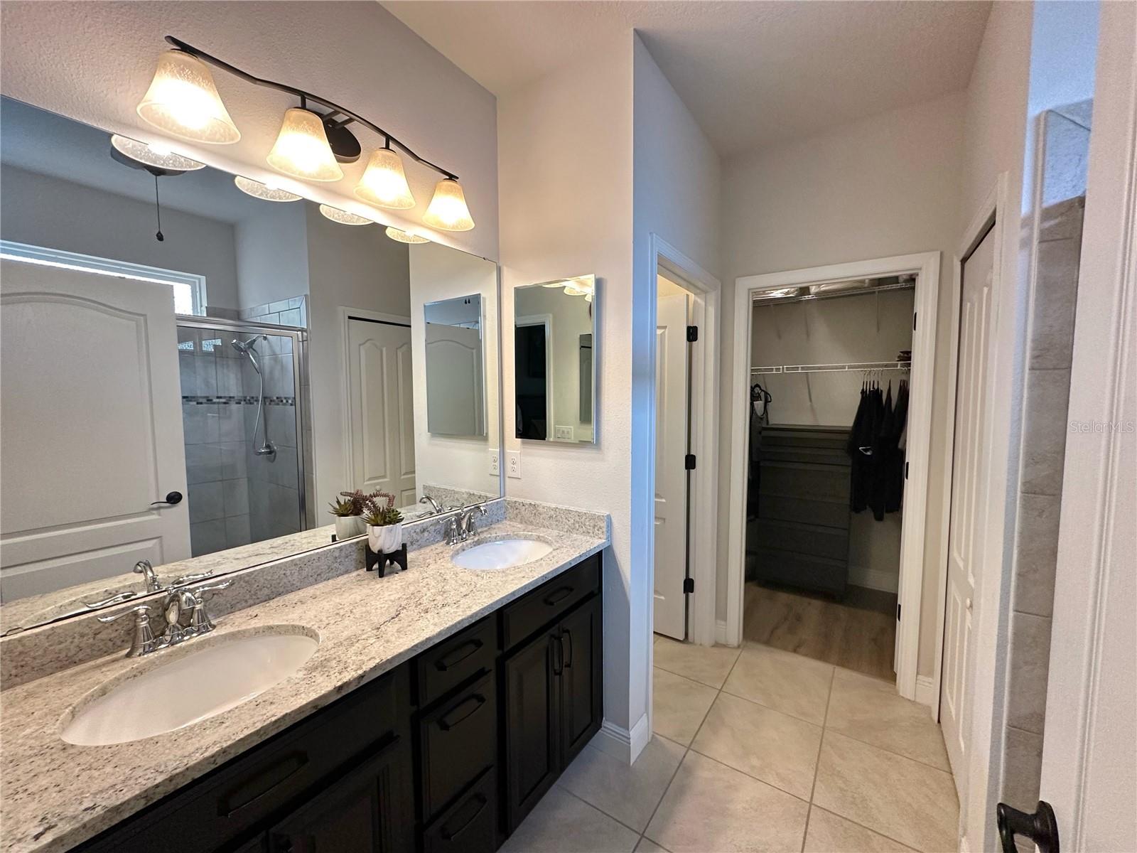 Welcome to this beautifully upgraded 4-bedroom, 3-bathroom home, offering a spacious open floor plan designed for modern living. This move-in-ready property features a range of impressive upgrades that combine style and functionality. Enjoy the energy efficiency of a water softener and solar panels, which help lower utility costs while enhancing comfort. The extended lanai is perfect for outdoor relaxation or entertaining, and the home boasts two walk-in showers and a tub-shower combo in the bathrooms for added convenience. With 9-foot ceilings throughout, the home feels open and airy, and the durable LVP flooring ensures easy maintenance. Upgraded tile in key areas adds a touch of elegance, and the fully equipped kitchen comes with essential appliances, including a fridge, washer, and dryer. Additional storage space is available in the garage with overhead racks, while the sleek epoxy garage floor ensures a clean and easy-to-maintain surface. The home also features an Ecobee thermostat, offering smart home temperature control, and residents can enjoy the nearby community pool on warm Florida days. Located just 15 minutes from Disney and 30 minutes from Universal Studios, this property offers easy access to world-renowned theme parks while still providing a peaceful retreat. The community also hosts regular food truck nights, offering residents the chance to enjoy delicious meals and socialize with neighbors. The additional home in the backyard provides excellent flexibility for multi-generational living or offers a great investment opportunity (a fence will be installed for privacy between the properties). (See MLS #G5093073 for other home being sold). Don’t miss out on this exceptional property—schedule a showing today!