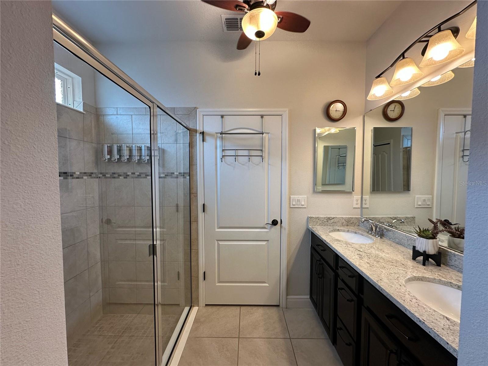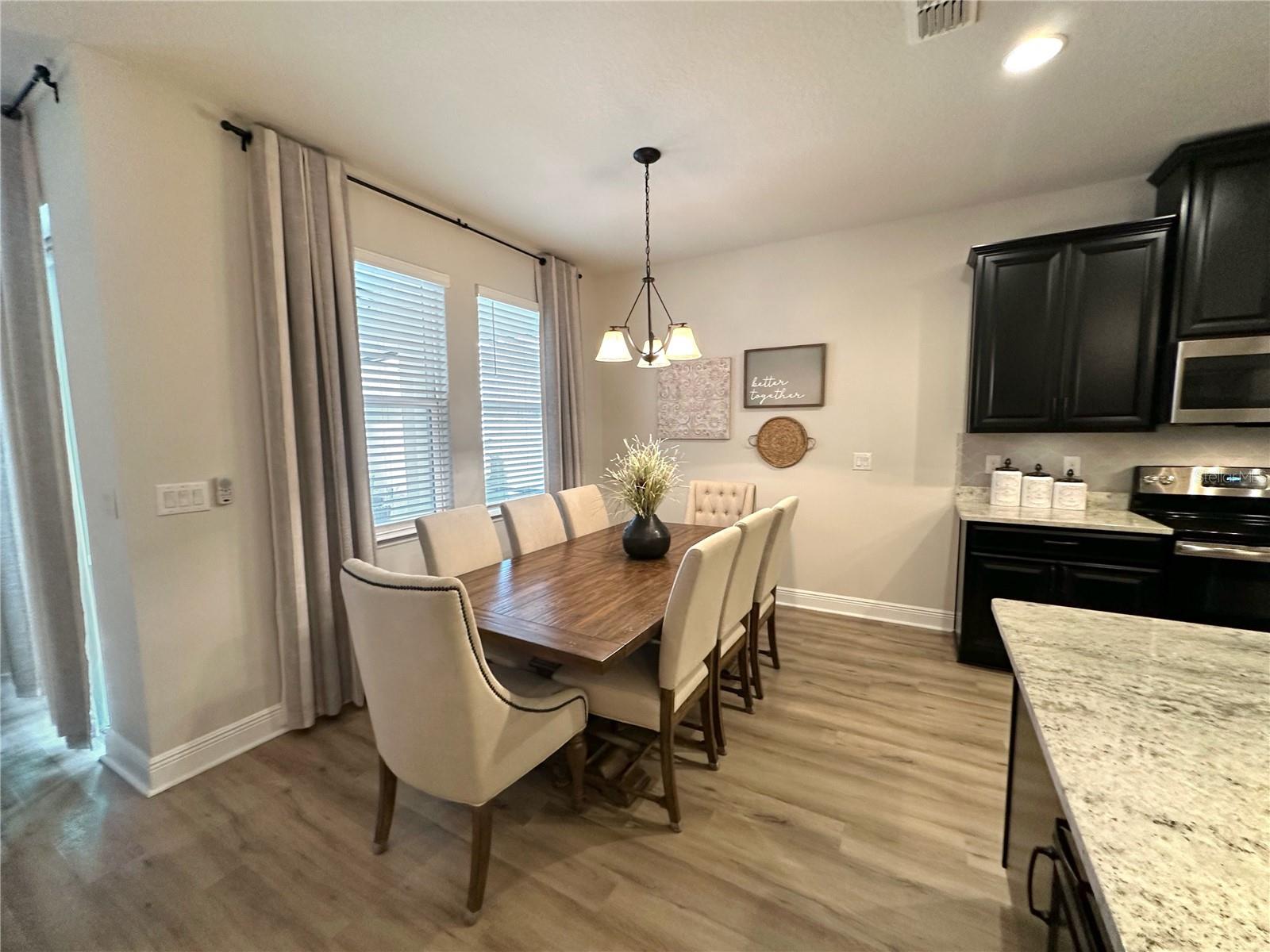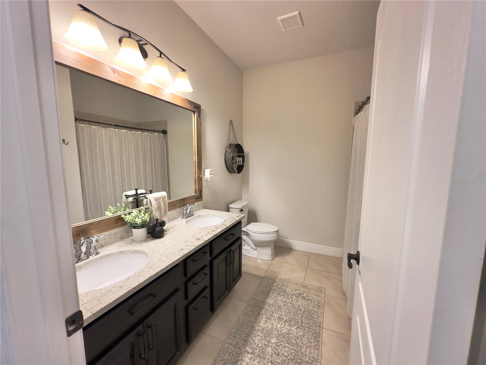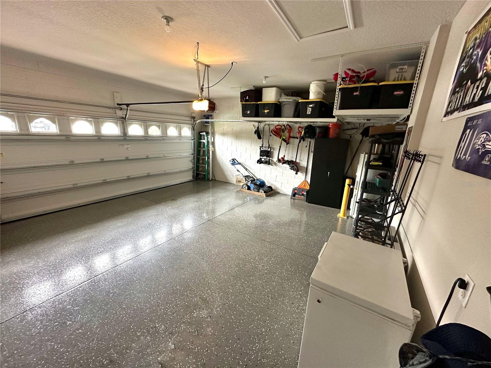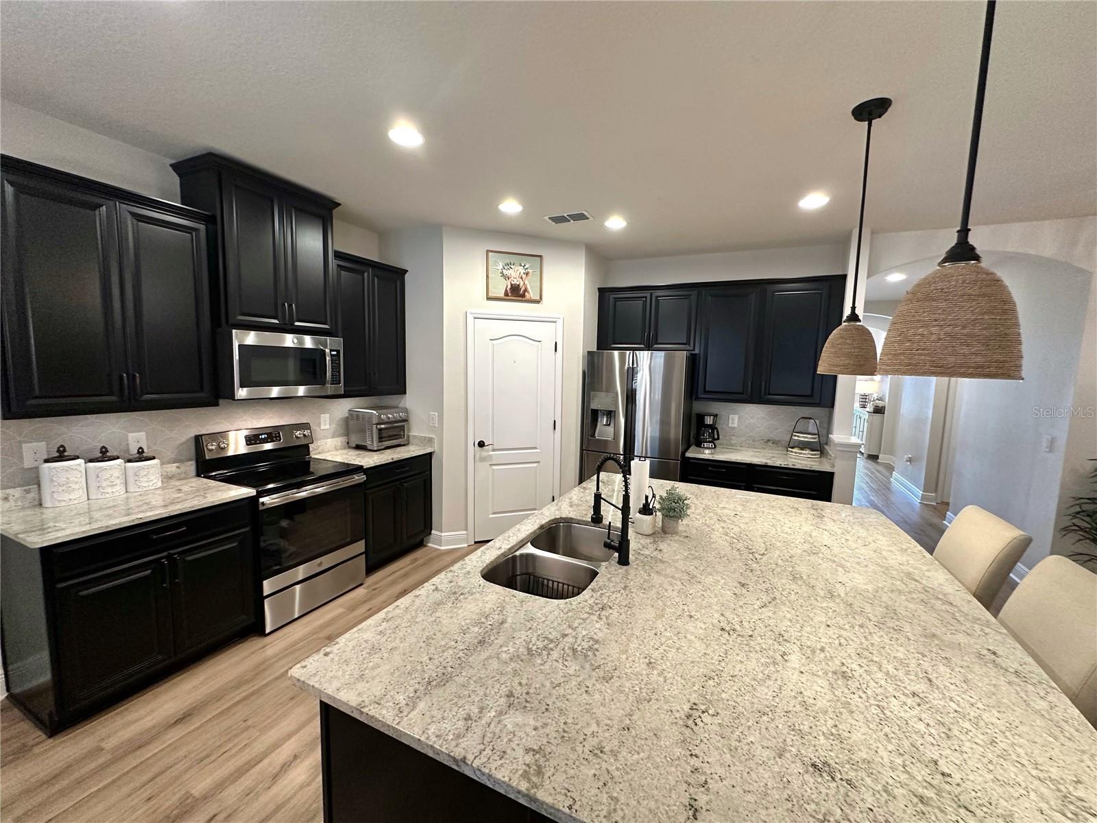Welcome to this beautifully upgraded 4-bedroom, 3-bathroom home, offering a spacious open floor plan designed for modern living. This move-in-ready property features a range of impressive upgrades that combine style and functionality. Enjoy the energy efficiency of a water softener and solar panels, which help lower utility costs while enhancing comfort. The extended lanai is perfect for outdoor relaxation or entertaining, and the home boasts two walk-in showers and a tub-shower combo in the bathrooms for added convenience. With 9-foot ceilings throughout, the home feels open and airy, and the durable LVP flooring ensures easy maintenance. Upgraded tile in key areas adds a touch of elegance, and the fully equipped kitchen comes with essential appliances, including a fridge, washer, and dryer. Additional storage space is available in the garage with overhead racks, while the sleek epoxy garage floor ensures a clean and easy-to-maintain surface. The home also features an Ecobee thermostat, offering smart home temperature control, and residents can enjoy the nearby community pool on warm Florida days. Located just 15 minutes from Disney and 30 minutes from Universal Studios, this property offers easy access to world-renowned theme parks while still providing a peaceful retreat. The community also hosts regular food truck nights, offering residents the chance to enjoy delicious meals and socialize with neighbors. The additional home in the backyard provides excellent flexibility for multi-generational living or offers a great investment opportunity (a fence will be installed for privacy between the properties). (See MLS #G5093073 for other home being sold). Don’t miss out on this exceptional property—schedule a showing today!