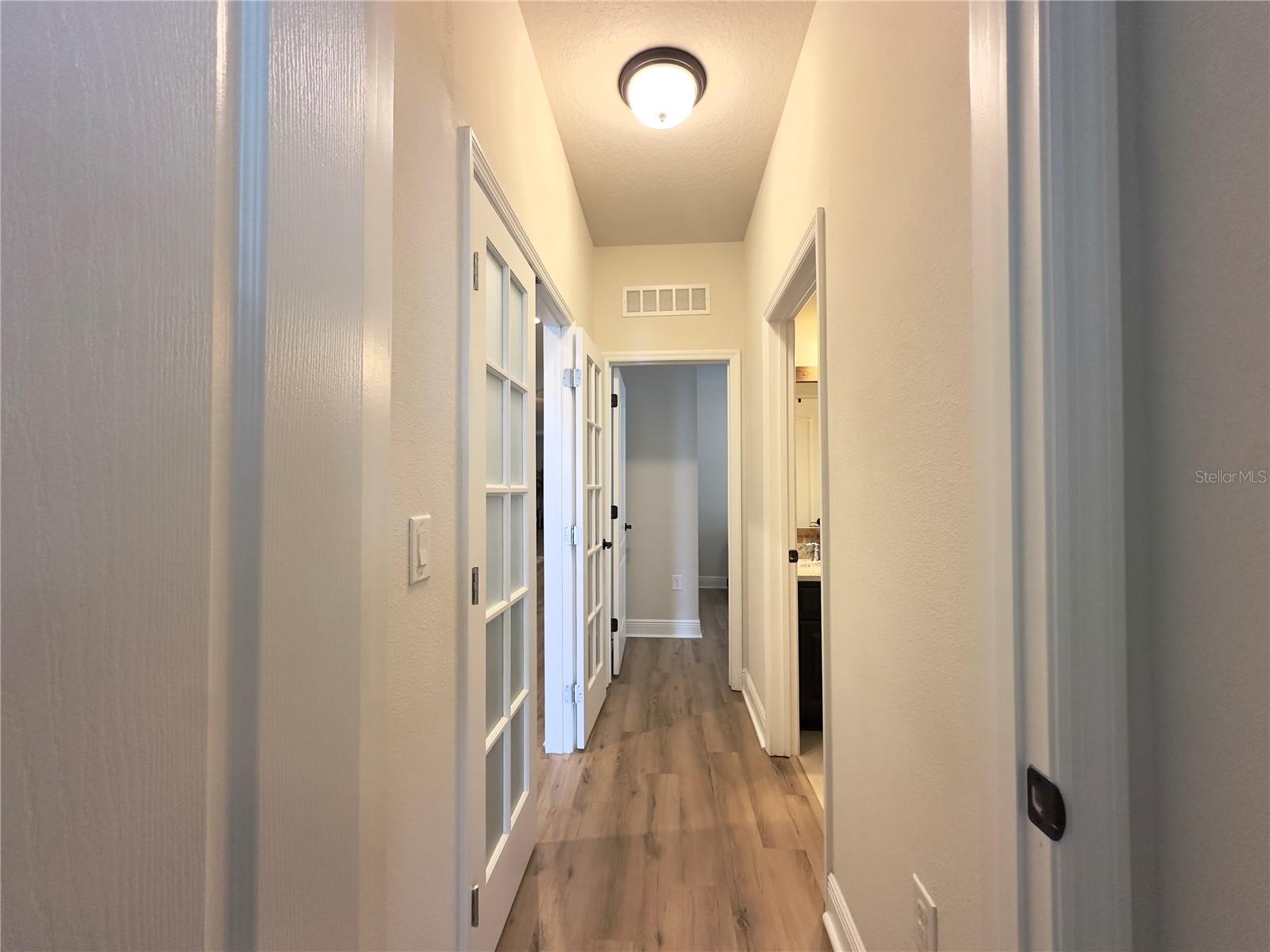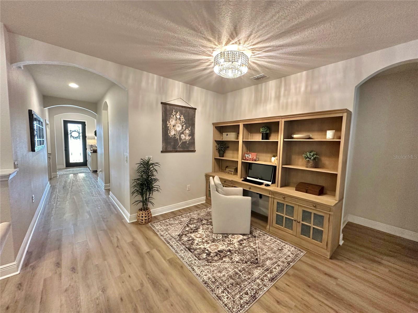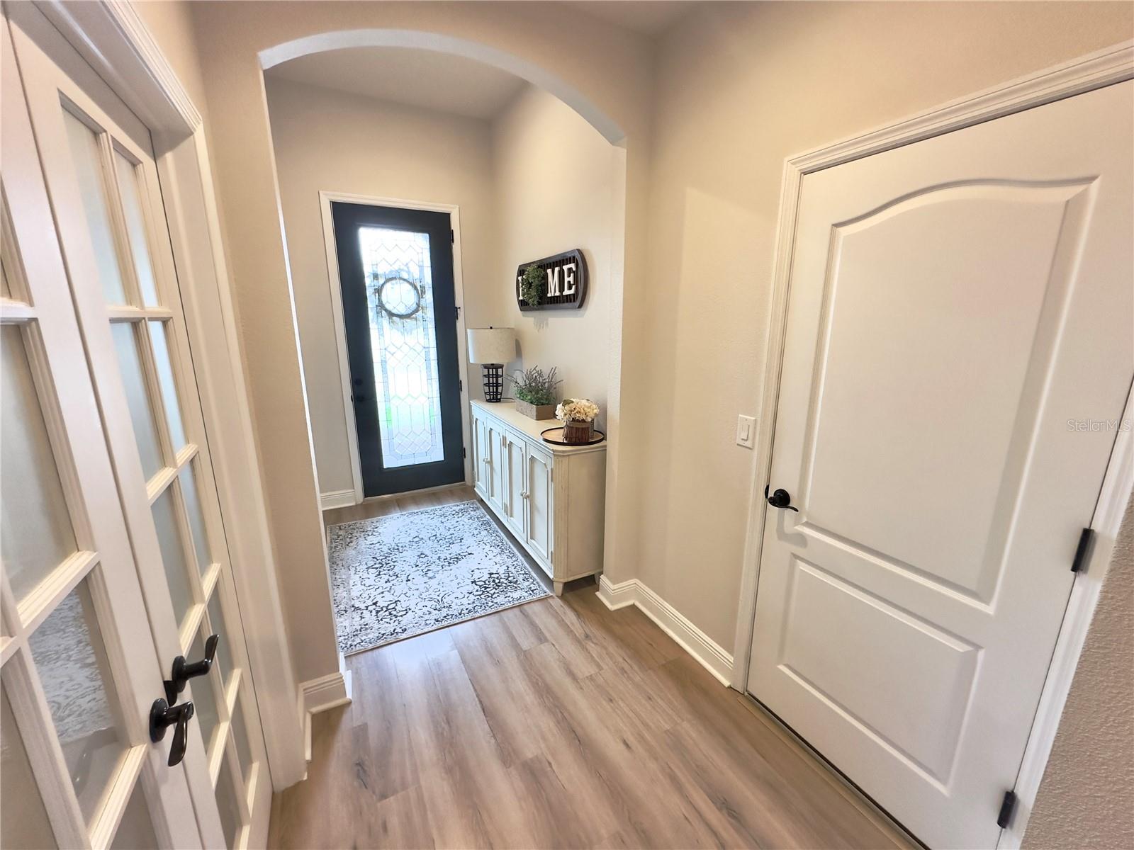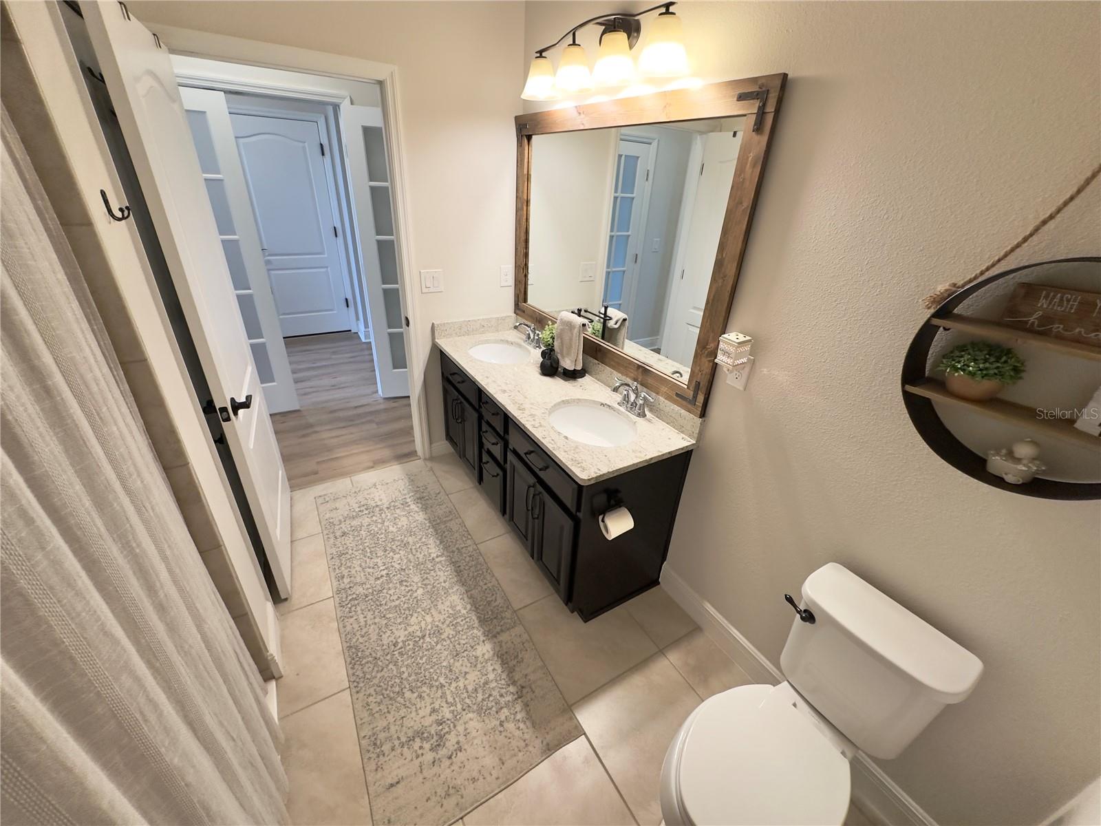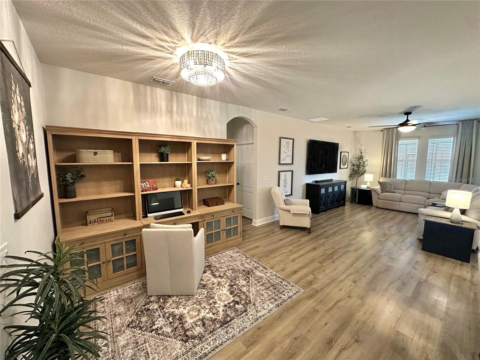 Welcome to this beautifully upgraded 4-bedroom, 3-bathroom home, offering a spacious open floor plan designed for modern living. This move-in-ready property features a range of impressive upgrades that combine style and functionality. Enjoy the energy efficiency of a water softener and solar panels, which help lower utility costs while enhancing comfort. The extended lanai is perfect for outdoor relaxation or entertaining, and the home boasts two walk-in showers and a tub-shower combo in the bathrooms for added convenience. With 9-foot ceilings throughout, the home feels open and airy, and the durable LVP flooring ensures easy maintenance. Upgraded tile in key areas adds a touch of elegance, and the fully equipped kitchen comes with essential appliances, including a fridge, washer, and dryer. Additional storage space is available in the garage with overhead racks, while the sleek epoxy garage floor ensures a clean and easy-to-maintain surface. The home also features an Ecobee thermostat, offering smart home temperature control, and residents can enjoy the nearby community pool on warm Florida days. Located just 15 minutes from Disney and 30 minutes from Universal Studios, this property offers easy access to world-renowned theme parks while still providing a peaceful retreat. The community also hosts regular food truck nights, offering residents the chance to enjoy delicious meals and socialize with neighbors. The additional home in the backyard provides excellent flexibility for multi-generational living or offers a great investment opportunity (a fence will be installed for privacy between the properties). (See MLS #G5093073 for other home being sold). Don’t miss out on this exceptional property—schedule a showing today!