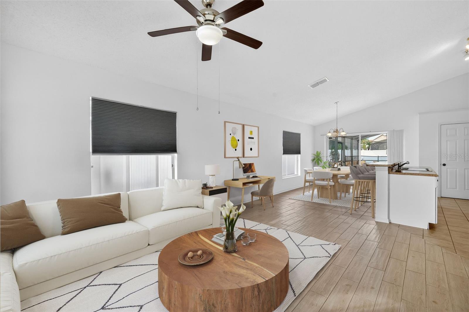 Welcome to 121 Sonja Circle, a beautifully updated 3 bedroom 2 bath pool home that perfectly captures the ease and enjoyment of Florida living. Conveniently located just off Highway 27, this home offers quick access to Disney, nearby shopping centers, and a wide variety of dining options, making everyday life and entertaining effortless. Inside, vaulted ceilings and an open layout create a bright and welcoming atmosphere, complemented by fresh interior paint and stylish vinyl flooring in the bedrooms. The kitchen flows seamlessly into the main living space, ideal for gathering with family and friends. The spacious primary suite opens directly to a screened in back porch overlooking a fenced pool and fully fenced backyard, providing a private retreat for relaxing or enjoying sunny afternoons. Recent upgrades add peace of mind and value, including a new roof (2023), a new water heater (2024) and a new pool pump (2025), making this home well maintained and move in ready. Whether you are searching for a primary residence, vacation getaway, this home delivers comfort, location, and lifestyle all in one.