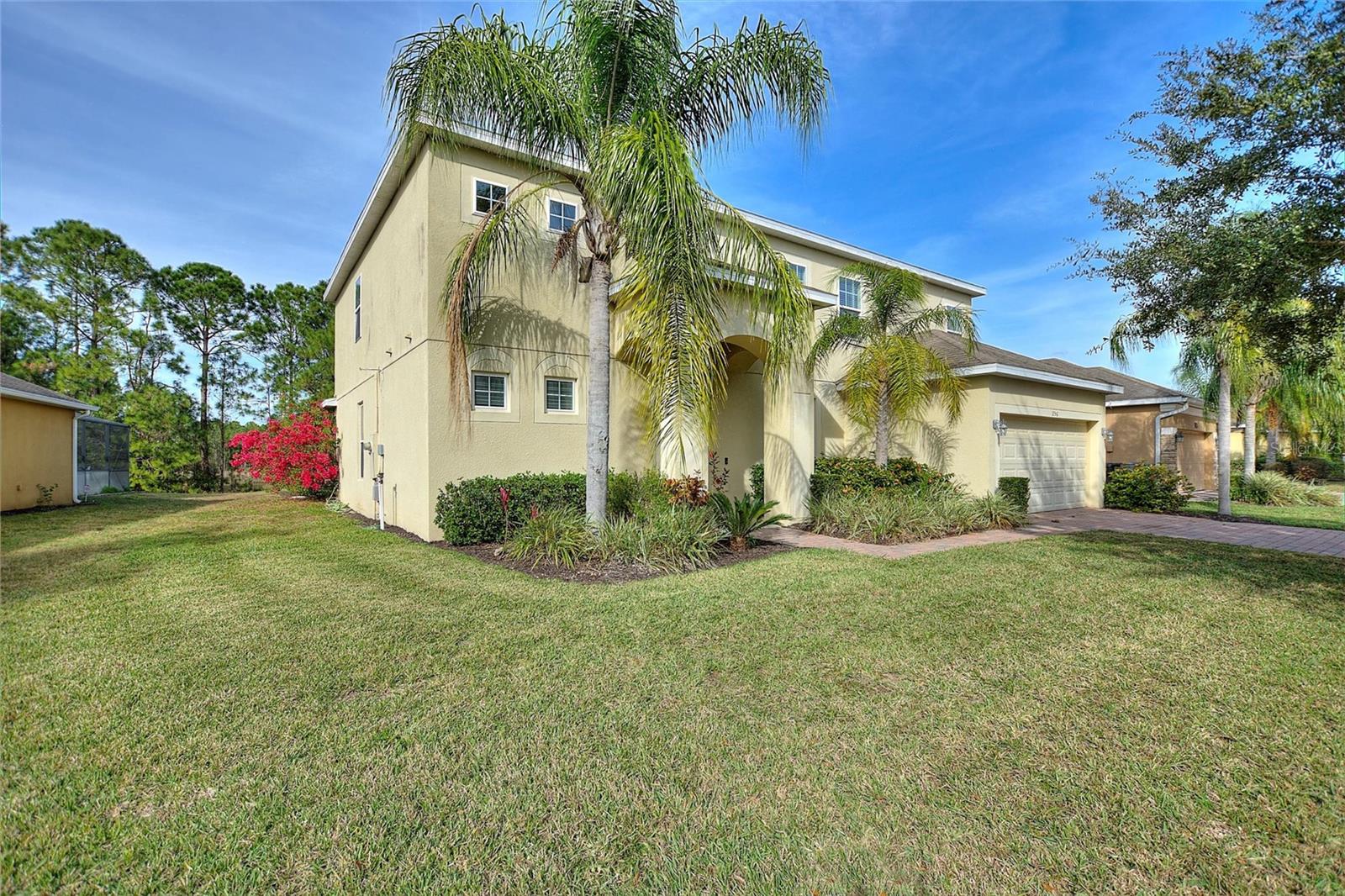 Simply stunning, this 5-bedroom, 4.5-bathroom pool home sits on a premium lot with no rear neighbors, offering exceptional privacy and tranquil views of lush greenery. Perfect as a full-time residence, vacation escape, or income-generating short-term rental, this spacious, beautifully appointed home has it all. Inside, a bright and inviting layout features a formal sitting and dining area ideal for card games or quiet moments. The open-concept main living space boasts a large family room, stylish furnishings, and a generous kitchen with stone countertops, a dining table, breakfast bar, and convenient butler’s pantry—making entertaining easy. Sunlight streams through expansive windows and two direct exits to the screened-in pool and lanai. With two primary suites—one upstairs and one downstairs—plus an additional en-suite, there’s plenty of room for larger groups, enhancing both living comfort and rental potential. Upstairs, a cozy loft sitting area adds charm, while the Star Wars-themed game room is a hit with guests of all ages. Outside, relax on the extended deck by the heated pool and spa, or enjoy starlit evenings with uninterrupted tree-lined views under the covered lanai. Located in the gated, resort-style Watersong community, residents and guests enjoy a 6,700 sq. ft. clubhouse, resort pool and spa, fitness center, sports courts, playground, picnic areas, walking trails, and more. Lawn care, fertilization, and tree trimming are included, along with 24-hour CCTV security. Conveniently close to Disney, Universal, SeaWorld, Margaritaville, top golf courses, and shopping at Posner Park and ChampionsGate.