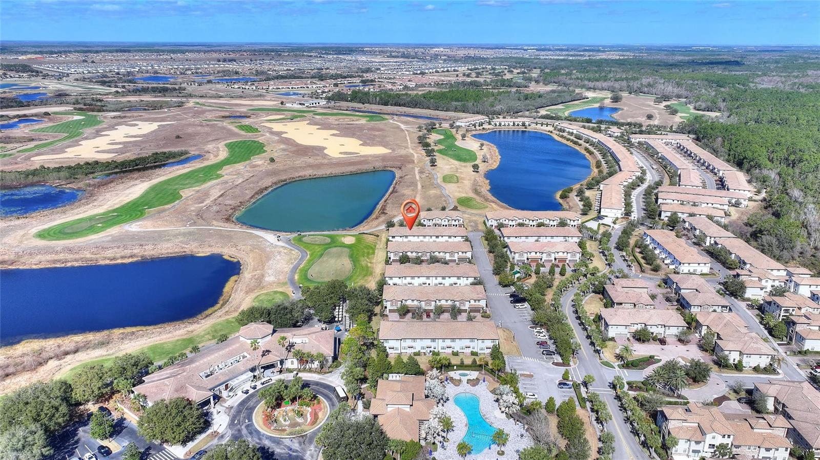 Live Like a Champion at The Vistas at ChampionsGate! Beautiful 3-bedroom, 2.5-bath, 1,912 sq. ft. two-story townhouse with 2-car garage and peaceful pond/golf course views. The first floor features a spacious open kitchen, dining, and living area, plus a powder room and beautiful paver patio, perfect for enjoying the outdoors. Upstairs includes all bedrooms, a laundry closet, and a primary suite with tray ceiling, walk-in closet, double vanities, soaking tub, and separate shower. Enjoy maintenance-free living and world-class amenities: The Oasis Club with lazy river, water slide, pools, spa, restaurant/bar, fitness center, movie theater, volleyball, and tennis. The nearby Vistas Clubhouse offers a heated pool, spa, saunas, golf simulator, game room, and fitness room. Located minutes from Disney, I-4, shopping, dining, and two Greg Norman–designed 18-hole golf courses.