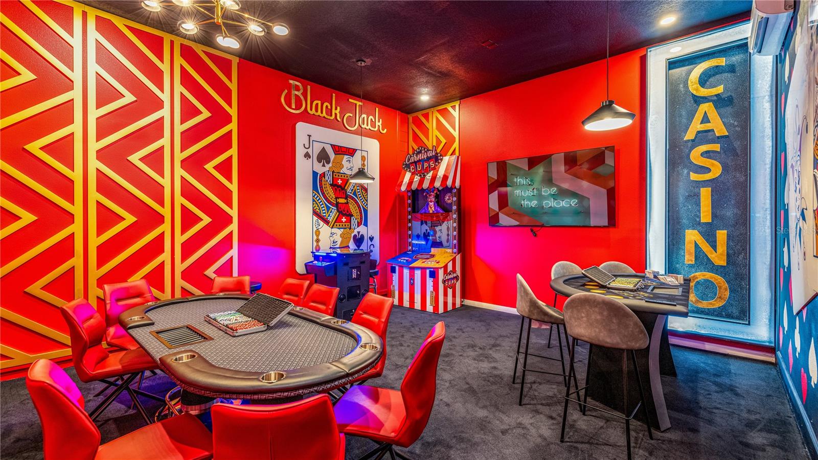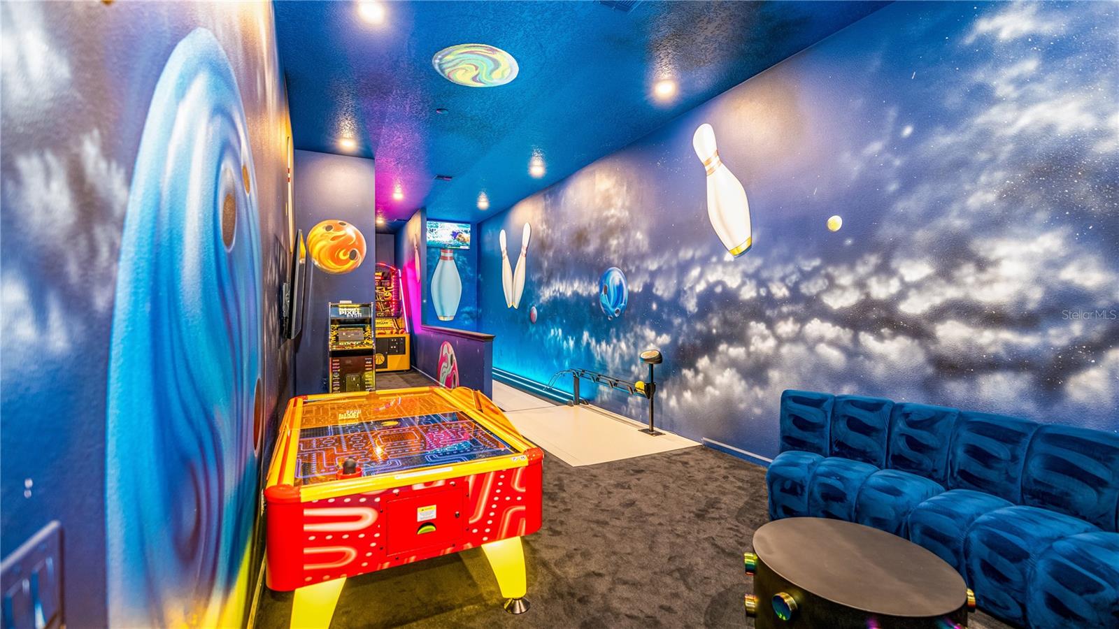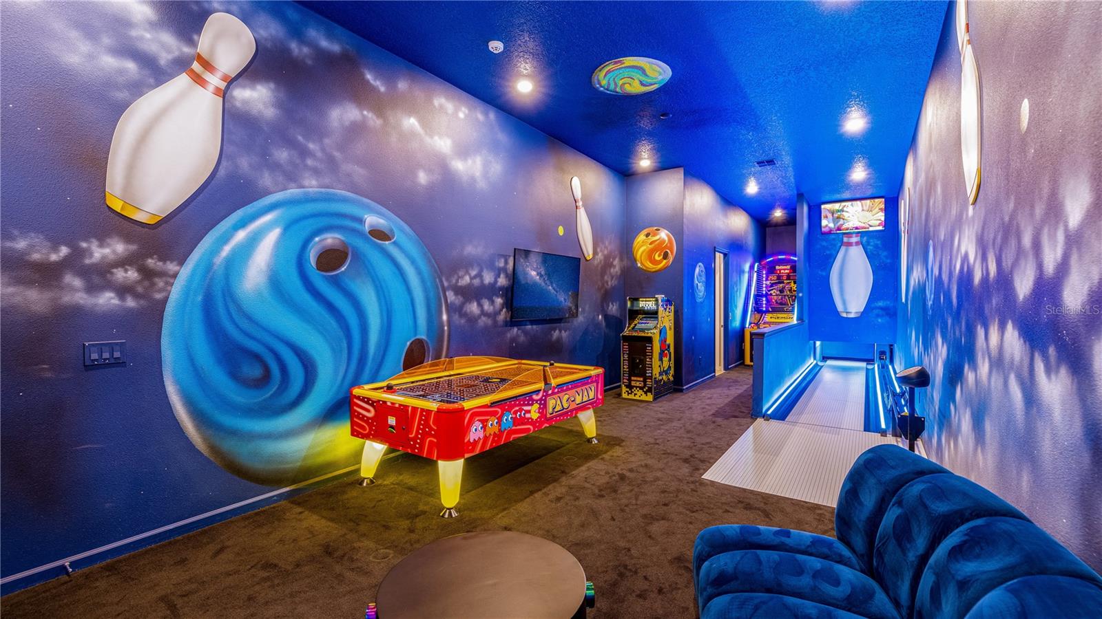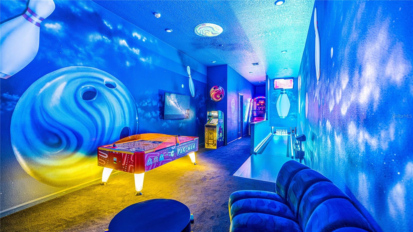 PRICE IMPROVEMENT!! MOTIVATED SELLER!! Do not miss this incredible opportunity to purchase a TURNKEY, 11 Bedroom BOWLING ALLEY Vacation Property in Villatel Village!!! Loaded with everything an investor or homeowner could possibly want, and Fully Furnished and Professionally Decorated at the highest level, this spectacular luxury home has cash flowed extremely well and has bookings in place that can potentially convey. Purpose built and designed for fun and excitement, there is something for everyone no matter how young or old. And the bowling alley is a standout feature that will surely command attention and separate it from the ordinary! An amazing setting for an unforgettable vacation adventure....Main Floor Highlights include an owner's suite, two auxiliary bedrooms, an open concept gathering area with an oversized fully stocked gourmet kitchen, a sprawling dinning table for sixteen and a living area big enough to comfortably accommodate a large number of guests. Double pocketing sliders bring it all out to the inviting outdoor living area which is Florida Living at it's best; with framed rear conservation views and a deluxe privacy screen enclosure, you will feel like your in your own secluded vacation paradise. The pool is forty feat long and has a spa and sun shelf, bubbler, kiddie slide and resin lounge chairs. To enhance the outdoor experience there is a summer grill, ample dinning spaces, leisure seating, pool side chaise chairs, and games for all to enjoy. You will never want to leave. Also downstairs is the VIVID neon blue arcade room with the BOWLING ALLEY, arcade games and basketball shooting game, and, a separate CASINO ROOM with authentic gaming tables and stunning décor. On the Second Floor is the expansive fully equipped game room, exercise room, theater and eight additional bedrooms including two, over-the-top, THEMED BEDROOMS. For convenience and practicality there are upstairs and downstairs laundry areas and a pool bath with outside access. Other upgrades include designer lighting, quartz countertops, window treatments, wall treatments, black out shades and ceiling fans, two refrigerators and two dishwashers... The rental platform is unique and hands free and exclusively managed by Villatel Village who will take care of everything start to finish including the marketing, bookings, property operation and maintenance.... Villatel Village is a purpose-built vacation home concept community encompassing 40 acres and features 71 designer homes, a soon to be completed 15,000 square foot Event & Conference Center, available for an assortment of uses including corporate mastermind retreats, weddings, birthday parties, reunions and more. Villatel Village is located within popular Solterra Resort which has a impressive compliment of family-friendly amenities such as a clubhouse, resort style pool, lazy river, spas, tennis courts, fitness center and more...All within easy access to the best Central Florida can offer including theme parks, beaches, world class dinning and shopping and everything that makes this a global destination of choice. Come see for yourself why this is a special place and a prime opportunity. For additional perspective check out the VIDEO - https://sites.listpix.com/vd/131287736 and 3D MATTERPORT TOUR - https://my.matterport.com/show/?m=7ZrRkheJJ87 Land, Site, and Tax Information