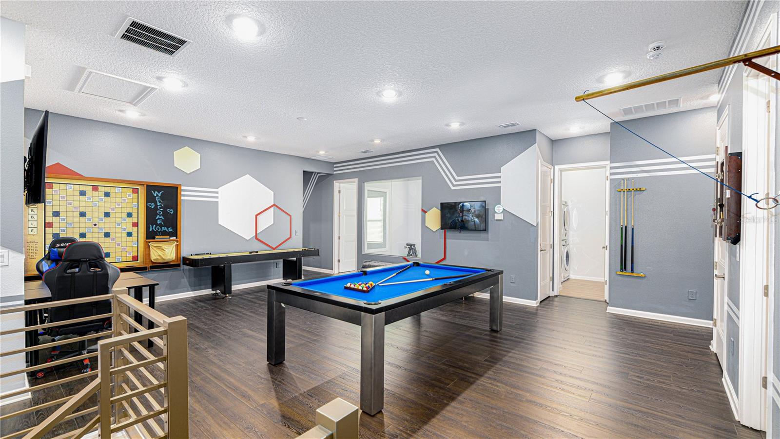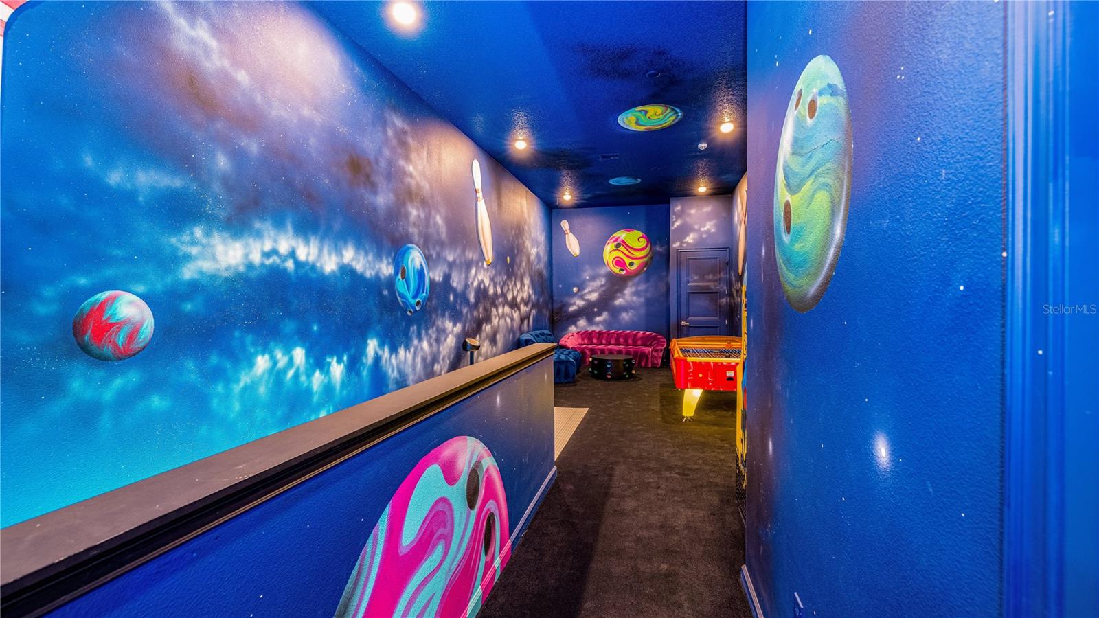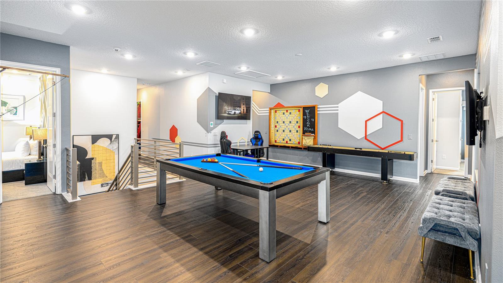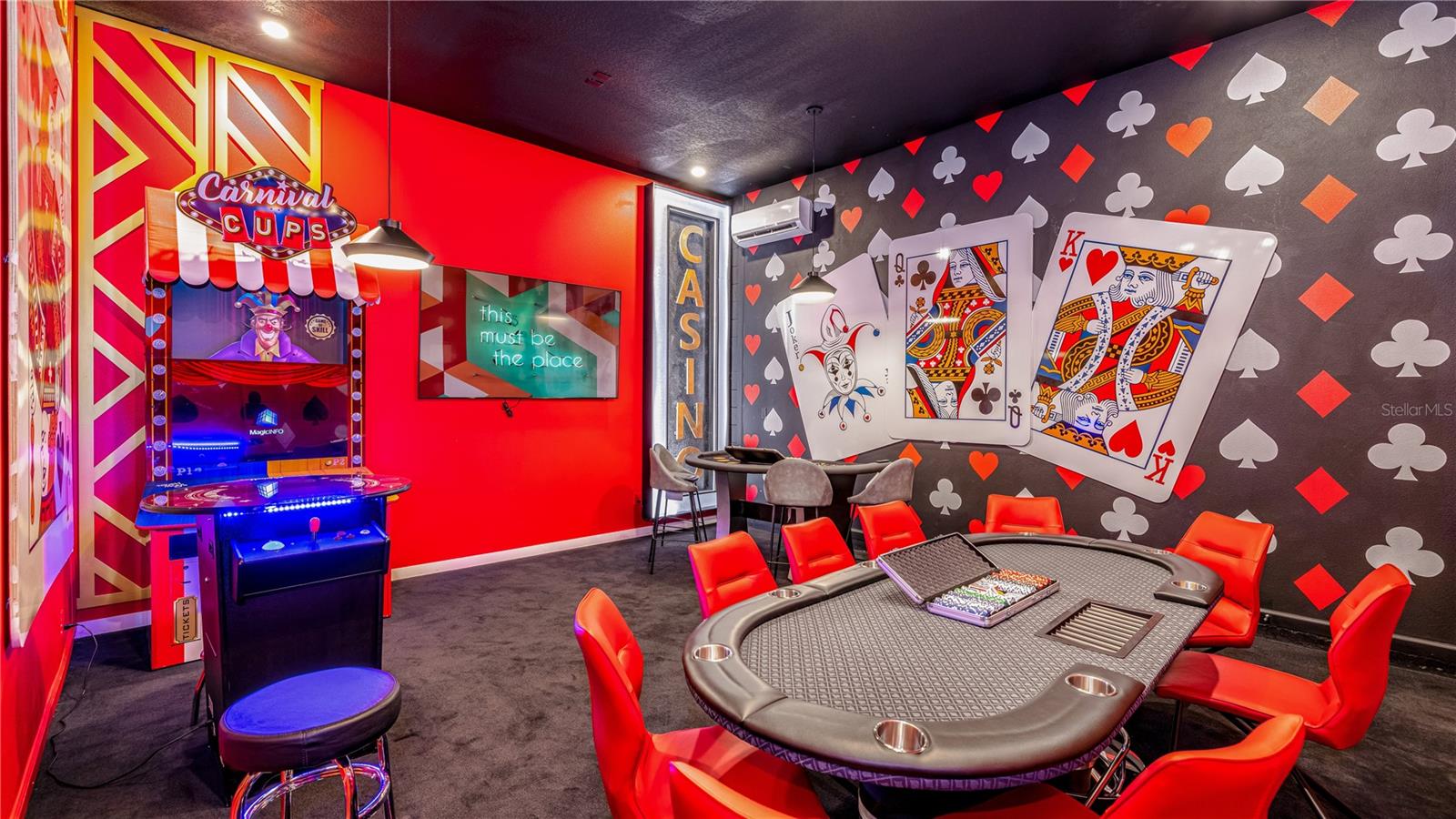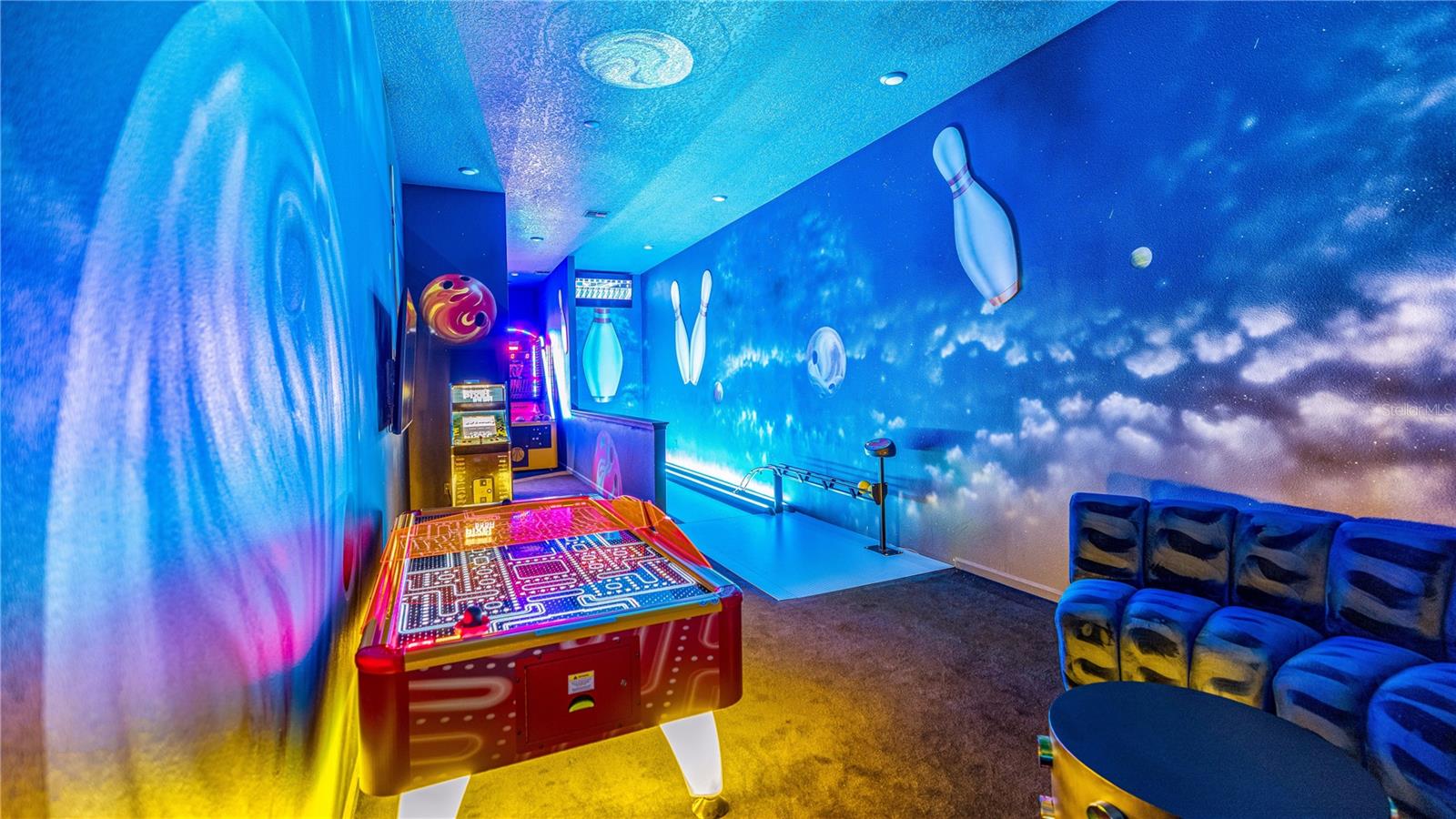 PRICE IMPROVEMENT!! MOTIVATED SELLER!! Do not miss this incredible opportunity to purchase a TURNKEY, 11 Bedroom BOWLING ALLEY Vacation Property in Villatel Village!!! Loaded with everything an investor or homeowner could possibly want, and Fully Furnished and Professionally Decorated at the highest level, this spectacular luxury home has cash flowed extremely well and has bookings in place that can potentially convey. Purpose built and designed for fun and excitement, there is something for everyone no matter how young or old. And the bowling alley is a standout feature that will surely command attention and separate it from the ordinary! An amazing setting for an unforgettable vacation adventure....Main Floor Highlights include an owner's suite, two auxiliary bedrooms, an open concept gathering area with an oversized fully stocked gourmet kitchen, a sprawling dinning table for sixteen and a living area big enough to comfortably accommodate a large number of guests. Double pocketing sliders bring it all out to the inviting outdoor living area which is Florida Living at it's best; with framed rear conservation views and a deluxe privacy screen enclosure, you will feel like your in your own secluded vacation paradise. The pool is forty feat long and has a spa and sun shelf, bubbler, kiddie slide and resin lounge chairs. To enhance the outdoor experience there is a summer grill, ample dinning spaces, leisure seating, pool side chaise chairs, and games for all to enjoy. You will never want to leave. Also downstairs is the VIVID neon blue arcade room with the BOWLING ALLEY, arcade games and basketball shooting game, and, a separate CASINO ROOM with authentic gaming tables and stunning décor. On the Second Floor is the expansive fully equipped game room, exercise room, theater and eight additional bedrooms including two, over-the-top, THEMED BEDROOMS. For convenience and practicality there are upstairs and downstairs laundry areas and a pool bath with outside access. Other upgrades include designer lighting, quartz countertops, window treatments, wall treatments, black out shades and ceiling fans, two refrigerators and two dishwashers... The rental platform is unique and hands free and exclusively managed by Villatel Village who will take care of everything start to finish including the marketing, bookings, property operation and maintenance.... Villatel Village is a purpose-built vacation home concept community encompassing 40 acres and features 71 designer homes, a soon to be completed 15,000 square foot Event & Conference Center, available for an assortment of uses including corporate mastermind retreats, weddings, birthday parties, reunions and more. Villatel Village is located within popular Solterra Resort which has a impressive compliment of family-friendly amenities such as a clubhouse, resort style pool, lazy river, spas, tennis courts, fitness center and more...All within easy access to the best Central Florida can offer including theme parks, beaches, world class dinning and shopping and everything that makes this a global destination of choice. Come see for yourself why this is a special place and a prime opportunity. For additional perspective check out the VIDEO - https://sites.listpix.com/vd/131287736 and 3D MATTERPORT TOUR - https://my.matterport.com/show/?m=7ZrRkheJJ87 Land, Site, and Tax Information