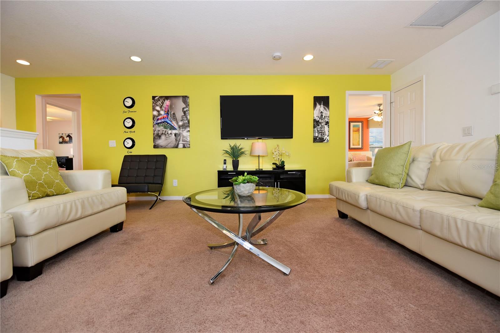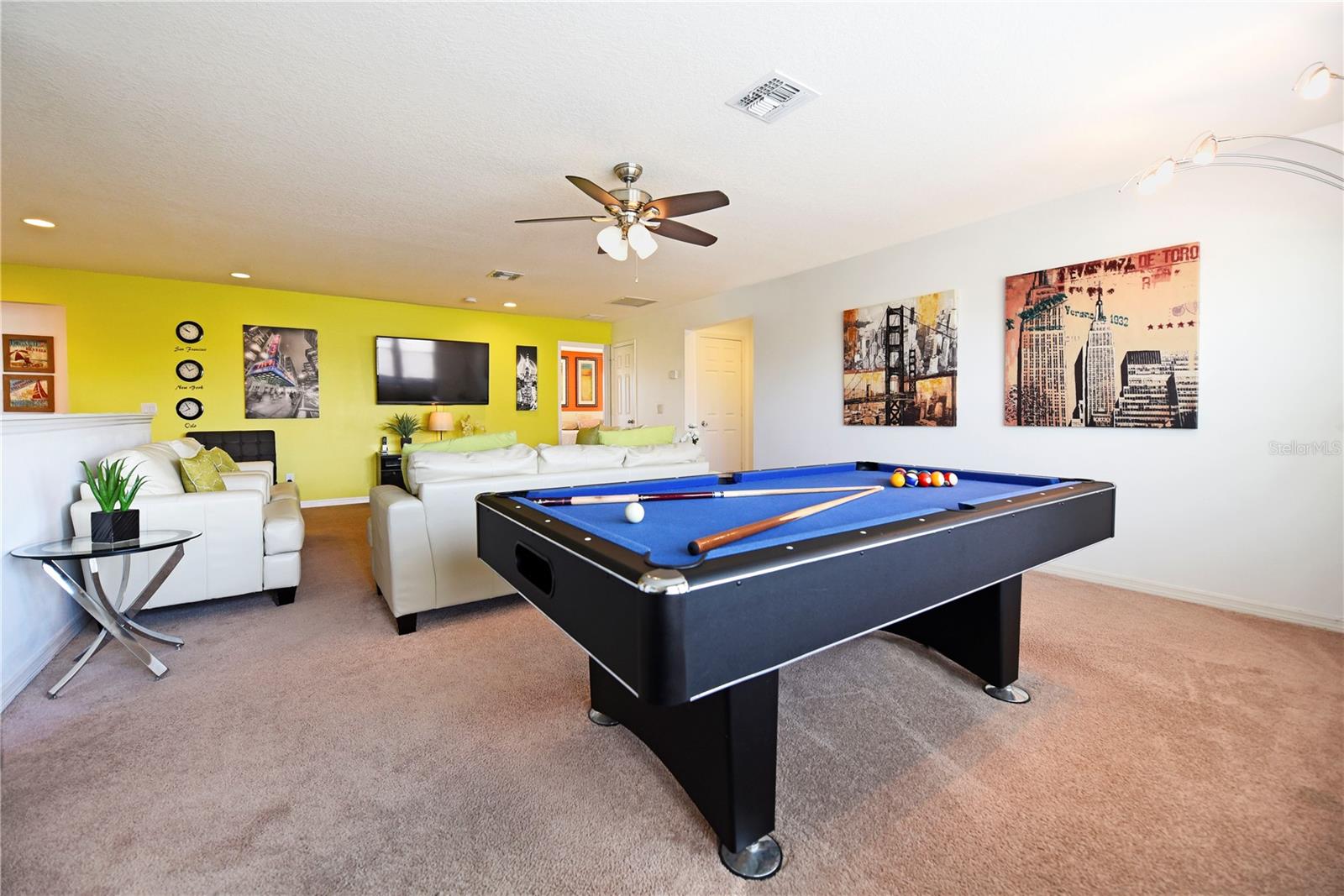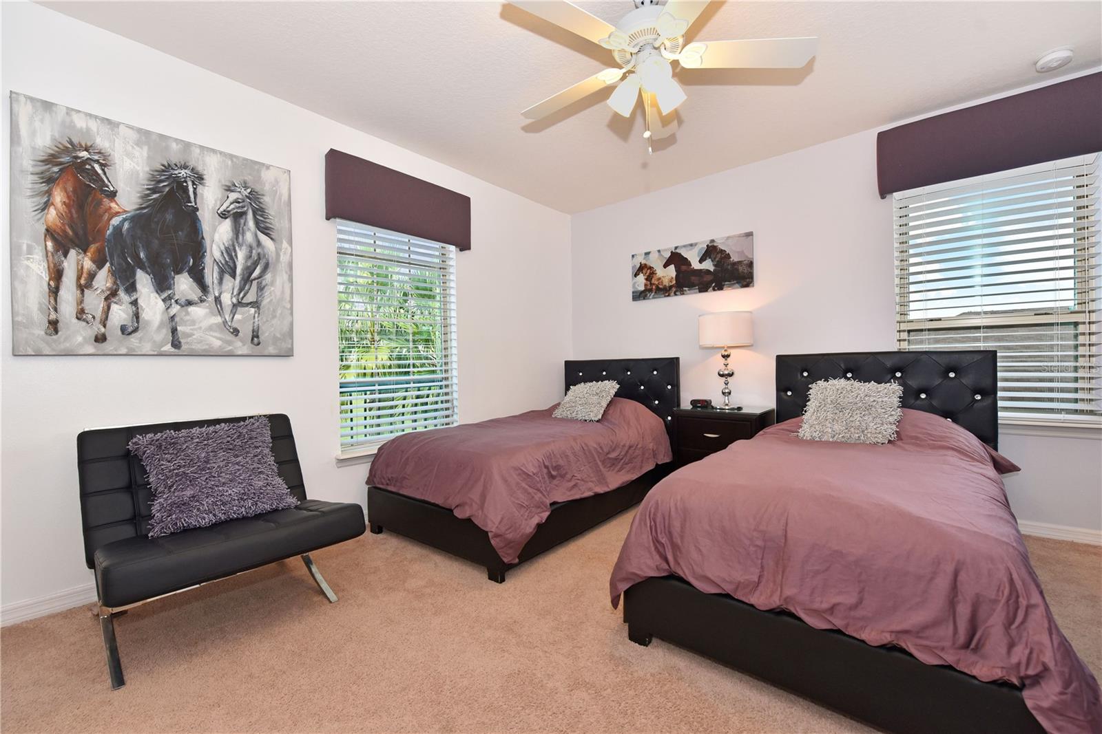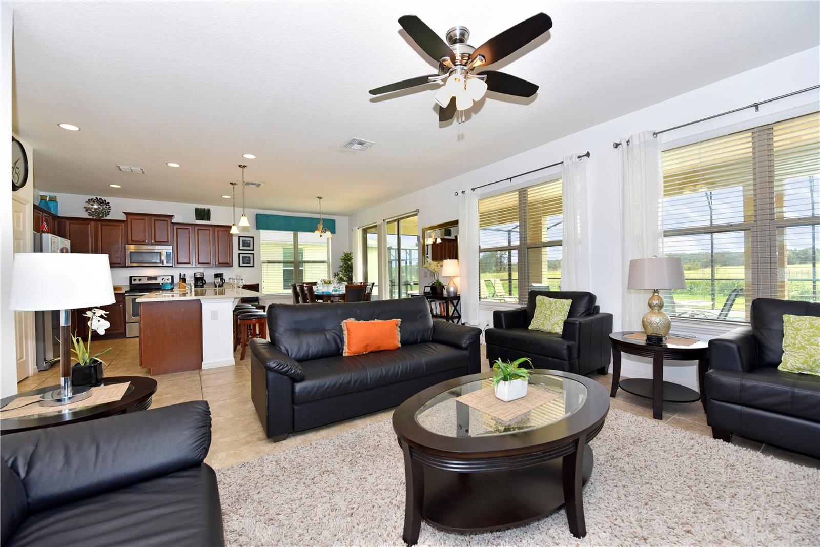 Fully furnished 7-bedroom villa in The Dales at West Haven. This luxury home is situated on one of the most sought-after lots in the community, featuring a south-facing pool and hot tub. Relax and enjoy the late afternoon sun and beautiful Florida sunsets from your oversized 14x28-foot pool! The large pool deck and spacious kitchen are perfect for entertaining your family, friends, and/or rental guests. With a total of 7 bedrooms and 6 full bathrooms, and over 3,500 square feet, this home can accommodate a large group of guests in comfort and style. This popular Beazer Homes-built Samoa model includes a brick paver driveway and pool area, as well as a tile roof. The Dales at West Haven is one of West Haven's newest subdivisions and is zoned for short-term rentals. West Haven has a fantastic location, close to Disney parks, Champions Gate, shopping centers, and world-class restaurants. This gated luxury community includes a clubhouse with a pool, fitness center, tennis courts, and sand volleyball. The home is currently in a rental program, and future reservations can be passed on to the buyer. Don't wait on this one!