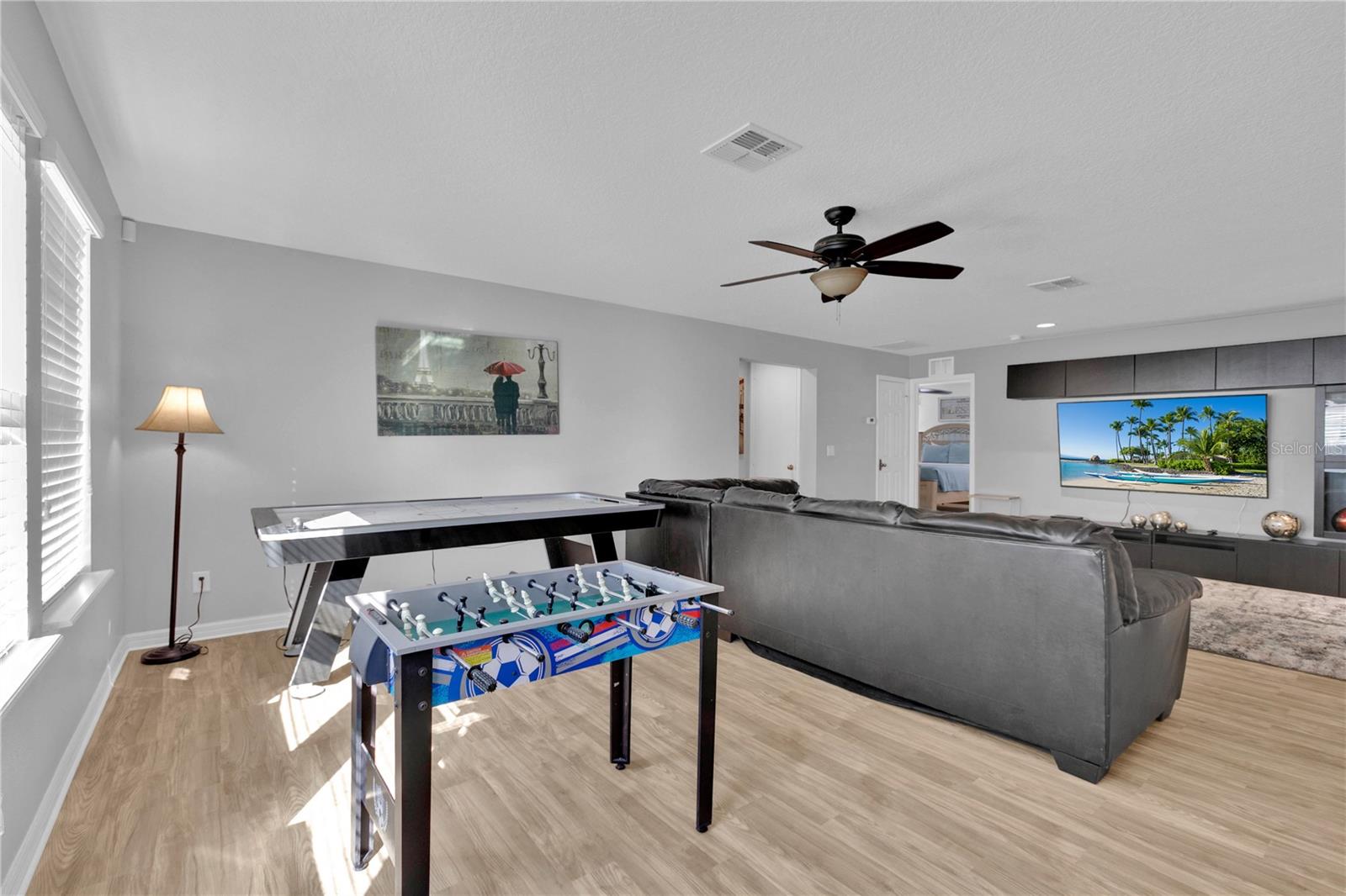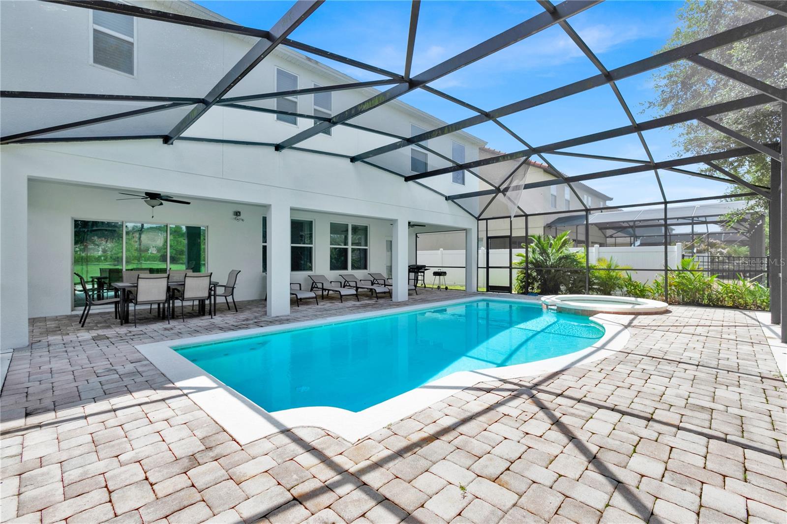 DO NOT MISS OUT ON THIS 2-STOREY VACATION HOME OR FOR PRIMARY RESIDENCE!!!!! TURNKEY FURNISHED!! Freshly painted exterior. NEW STAINLESS-STEEL KITCHEN APPLIANCES – Refrigerator, range, microwave. NEW FLOORING - Luxury vinyl plank flooring on stairway, loft area and primary bedroom. NEW OUTDOOR PATIO FURNITURE AND LOUNGES. NEW SOFAS. FRESH EXTERIOR AND INTERIOR PAINT. This beautifully decorated 7-bedroom, 6 baths pool home awaits your ownership!!!!! It is situated in a quiet upscale gated community known as Shire at West Haven in Davenport which is 20 minutes West of Walt Disney World near US 27 and Exit 58 off I-4. This house can comfortably accommodate your entertaining needs. No neighbors in the backyard!! There is another family room upstairs and a loft area suitable for a Game area. Enjoy your favorite cocktail on the patio overlooking the well-maintained lawn and gorgeous pool! The newly renovated clubhouse offers a swimming pool, basketball, and tennis courts as well as a volleyball area - all these amenities are a short walk away. Close to I-4, restaurants, shopping, Disney World, Sea World, Legoland and many other theme parks.