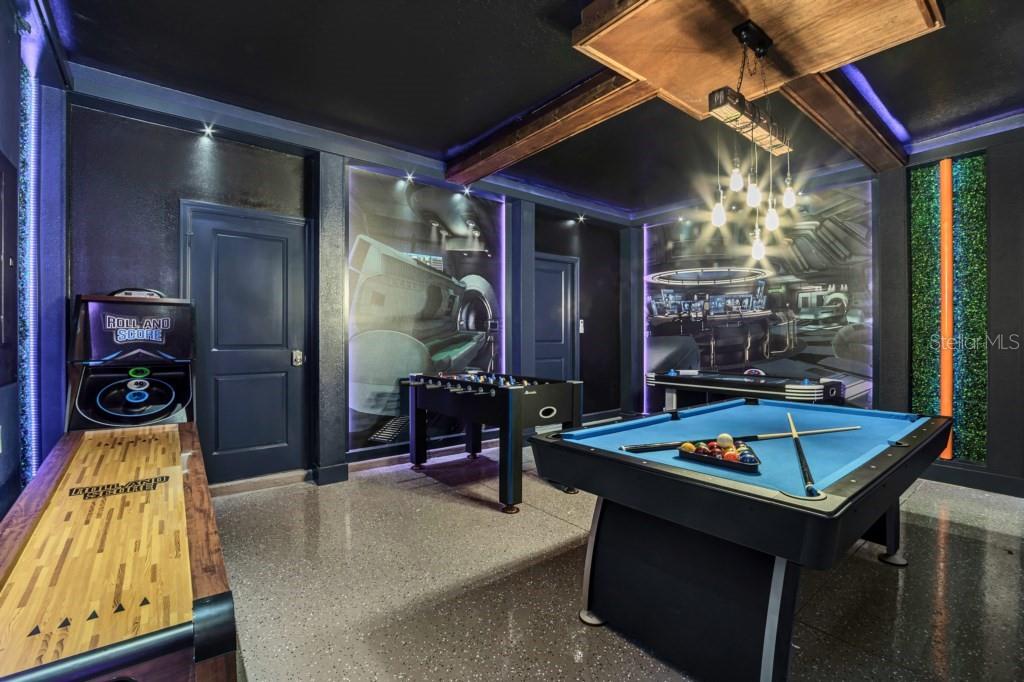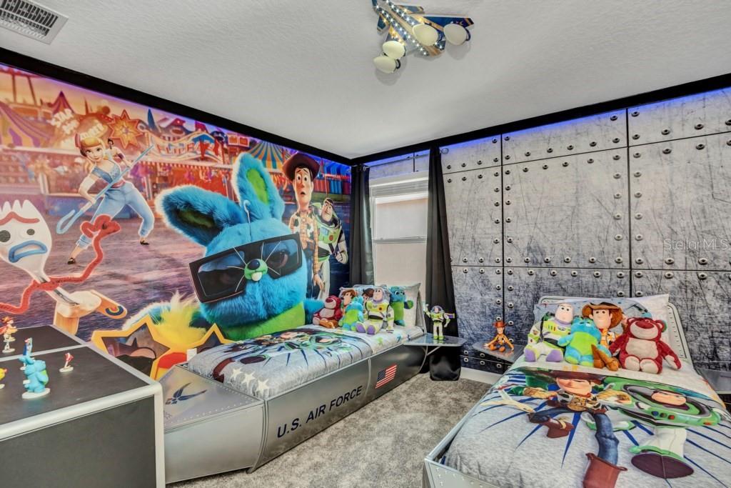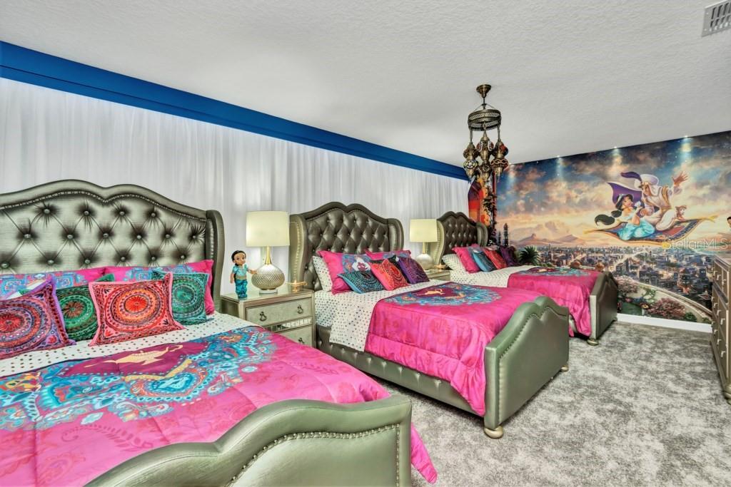 BEAUTIFUL FULLY FURNISHED 9 Bedrooms (medium room was converted into a bedroom with 3 full beds) and 5 Full Bathrooms!!! This property was beautifully decorated by famous designer Juliana Fernandes (JujuDiCasa). The impressive, high-end furnishings throughout the house, designer textured walls, and multiple themed bedrooms (Nemo, Aladdin, toy story, Lilo&Stitch) and the Avatar themed loft with billiards & game room make this property the perfect place for an unforgettable stay, making it the perfect place to enjoy when you are ready for some time away from the crowds. This property is located in the amazing Resort of Champions Gate Features-an 18-hole Golf Course, Inter-community Transportation, Gated Main Entrance, 7 Tennis Courts, Lazy River, Splash Park, Fitness Center, Business Center, Movie Theater, Tiki Bar, Indoor and Outdoor Dining, Volleyball Courts and Private Air-Conditioned Cabanas with Private Services. Enjoy the convenience of one of the best locations in Central Florida, located within minutes to major highways, quick access to all Disney Parks and attractions, the I-4, Highway 27, 429 and 417 offering access to shopping, restaurants, and much more!. Showings of this property are quite limited, due to the fact this property is always booked.