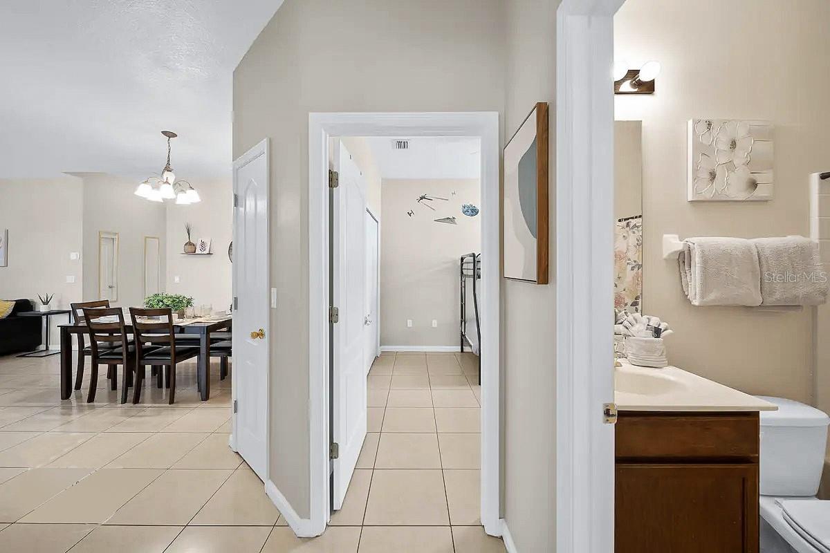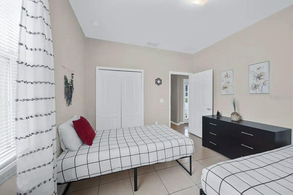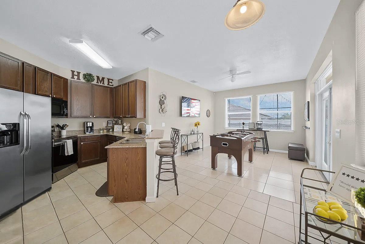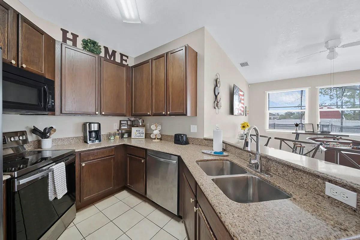 PERFECT FOR SHORT-TERM RENTAL! NEW ROOF! NEW TRANSFERABLE SOLAR PANELS! Welcome to your dream home in the highly sought-after Crows Nest gated community! Boasting a refreshing pool, this home offers the perfect oasis for relaxation and entertaining. Step inside and be greeted by a spacious and bright living area, adorned with tasteful finishes and elegant touches throughout. The open floor plan seamlessly connects the living room, dining area, and kitchen, creating a perfect space for both intimate family gatherings and large social events. The kitchen is well-appointed featuring modern appliances, ample counter space, and a convenient breakfast bar. Prepare culinary delights while still being part of the conversation with guests or family members. The master suite is a true retreat, offering privacy and tranquility. It boasts a generous layout, complete with a walk-in closet and a luxurious en-suite bathroom. Unwind after a long day in the spa-like soaking tub or enjoy a refreshing shower in the separate stall. The three additional bedrooms are spacious and bright, accommodating family members or guests comfortably. The three bathrooms throughout the home offer convenience and functionality, ensuring everyone has their own space and privacy. Step outside into your own private paradise. Enjoy the comfort of the heated pool, while the surrounding patio area is perfect for lounging and soaking up the Florida sun. Create lasting memories with family and friends while enjoying the outdoor space. Location is key, and this home has it all. you'll enjoy easy access to highly rated schools, Advent Health medical facilities, major highways, and the magical world of Disney parks. The community has low homeowner association fees and NO CDD fees, making it an even more attractive option. Rental generates $3,000 to $3,500 per month. Sale includes Airbnb account and all reviews. Don't miss this incredible opportunity to own a stunning 4 bedroom, 3 bathroom home in Crows Nest. Experience the perfect blend of luxury, convenience, and community in this sought-after gated neighborhood. Schedule your private showing today and make this dream home your reality.