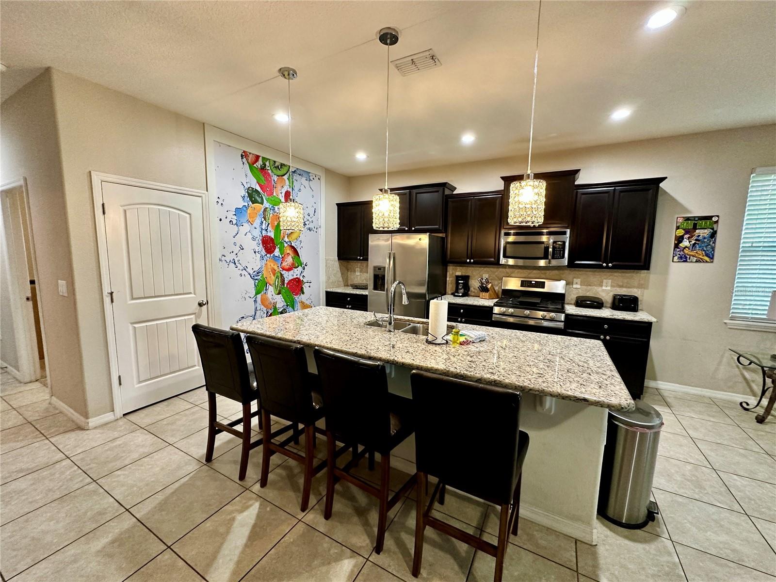 Welcome to your dream home away from home! Nestled within a captivating resort-style community, this beautiful townhome promises an enchanting escape from the everyday. Prepare to be captivated by its professionally decorated interiors, where themed rooms transport you to a world of comfort and luxury. Discover culinary delight in the well-appointed kitchen featuring granite countertops and GE stainless steel appliances. Whether you're whipping up a quick breakfast or hosting a gourmet dinner, this kitchen is a chef's haven. Step outside to your private oasis, complete with a heated pool. Whether it's a refreshing morning dip or a relaxing evening soak, this space offers the perfect respite. This community offers an unparalleled lifestyle with a 14,000 sq ft clubhouse where you can socialize, work out, and unwind. Challenge your friends to a friendly game of tennis on the courts or simply bask in the Florida sun by the pool. Only minutes away from the enchantment of Disney World, you'll have the magic of the theme parks practically at your doorstep. And when it's time for shopping, dining, or a round of golf, you're spoiled for choice with numerous options in the vicinity. For those looking to invest, short-term rentals are allowed, offering you the chance to generate income from this stunning property when you're not enjoying it yourself.