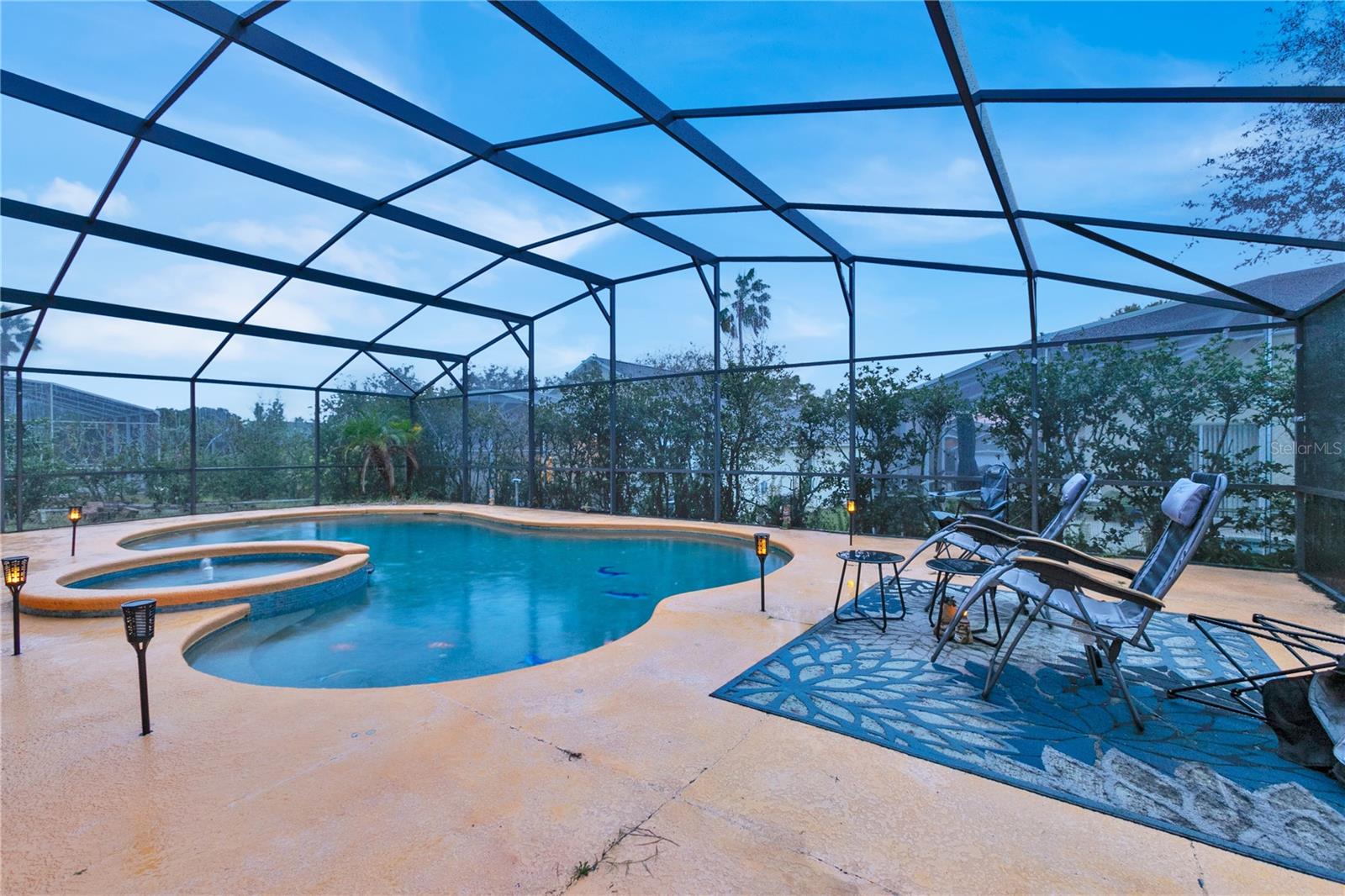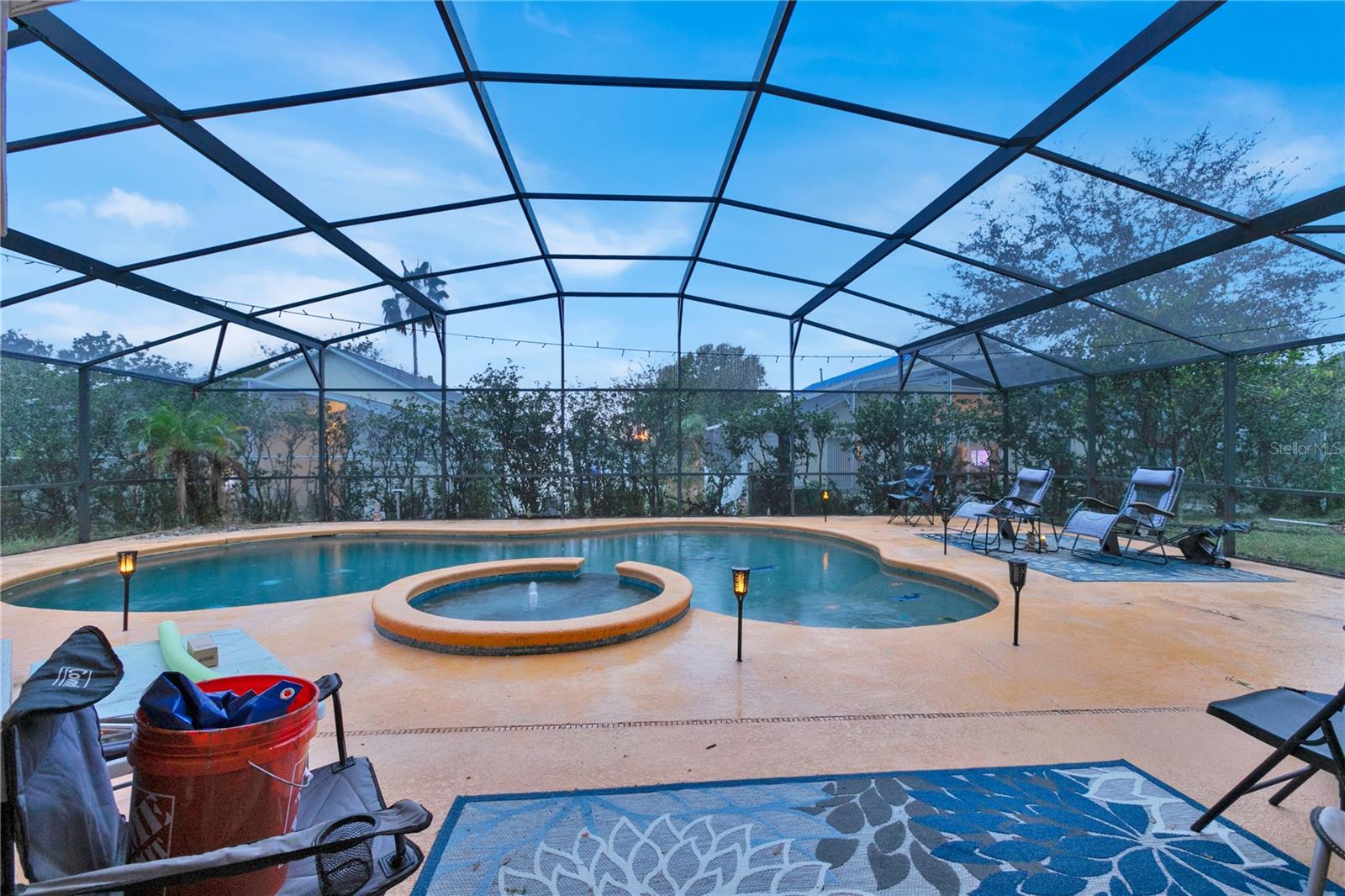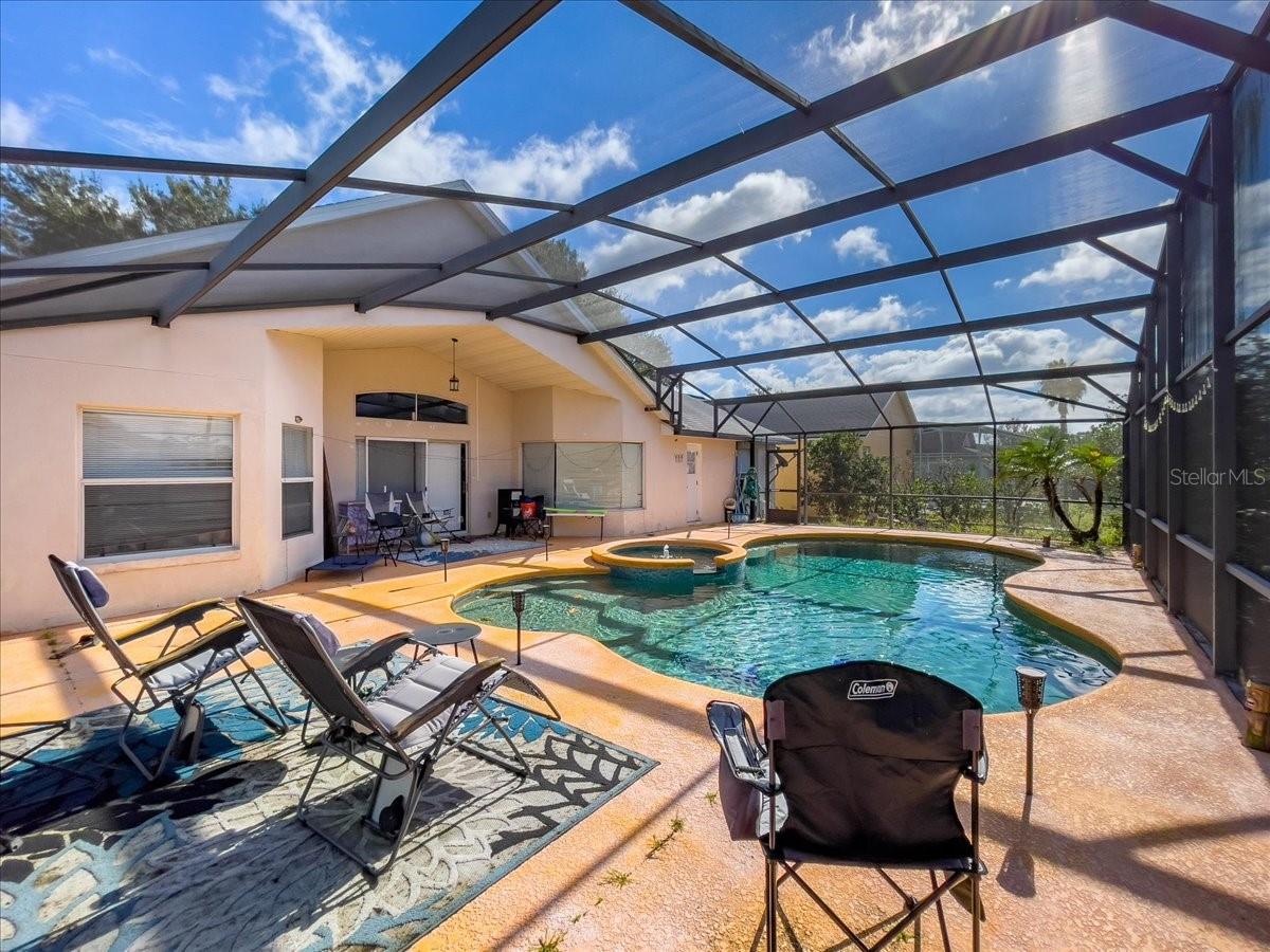 PRICE REDUCED! Great 3 bedrooms, 2 baths, home in a corner lot with ample lawn space. The house also has a den that can be used as an office or a 4th bedroom. Amazing salt water pool and spa with bathroom access to the pool area. The pool has extra jets on the left side of the pool; when you turn it on, you can swim against the current, and the intensity can be controlled. It is perfect for exercising in the comfort of your home. Perfect home to entertain with an open floor layout and split bedrooms. Separate dining room plus a separate dinette area that could be turned into an office space or reading area. No carpets anywhere! In the most desired zip code in Davenport with quick access to shops, restaurants, and more. Just 3 miles to I-4 and Hwy 192. Great location for the avid traveler. The community offers great amenities as well, such as a tennis court, Sand volleyball court, playground, Gazebo, community pool, and many more. The roof was replaced in 2016. The driveway was resurfaced a few years ago and the A/C unit was replaced as well. You must see this house today!