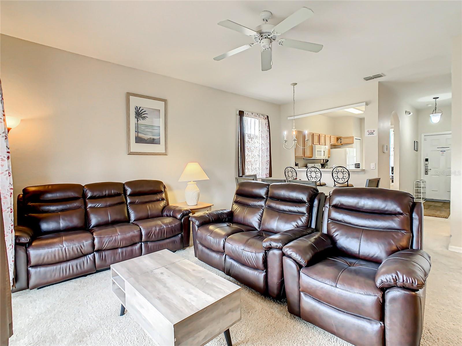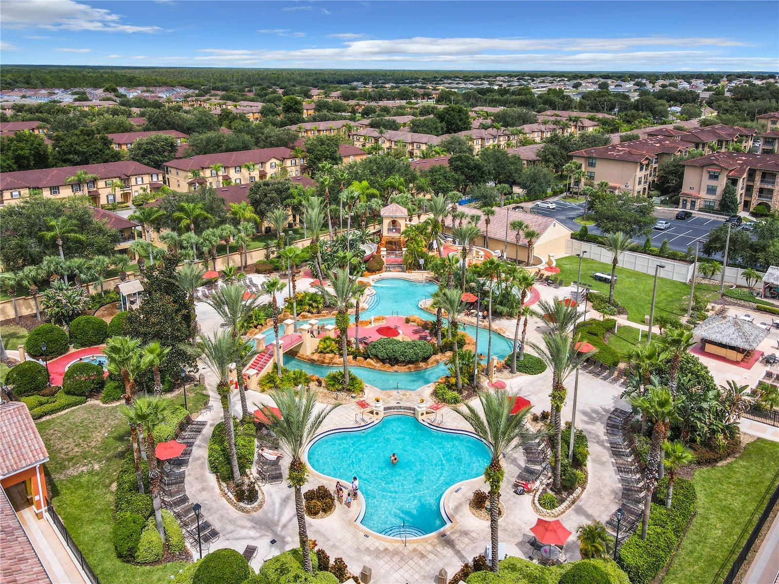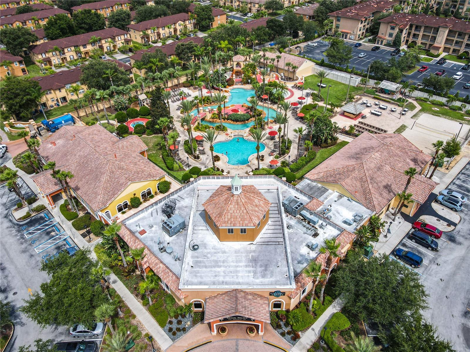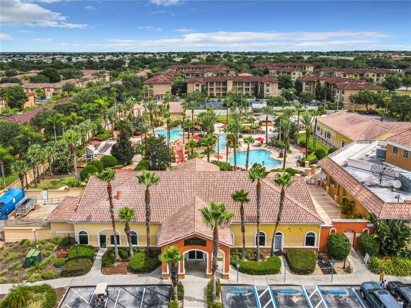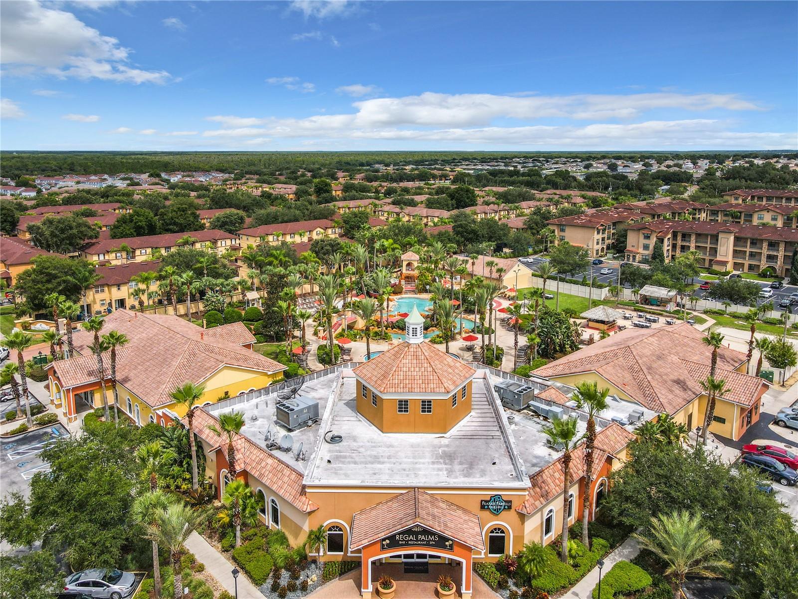 Discover luxury living in this cozy 4-bedroom, 3.5-bathroom Bermuda model end unit, nestled within the esteemed neighborhood of Regal Palms, an exclusive private and gated Resort community. Some recently updated furniture enhances the charm of this residence, all of which conveys with the sale. The property features a unique highlight—an in-law suite with a private entrance, providing additional privacy and flexibility for guests or extended family members. Regal Palms boasts a resort lifestyle with unparalleled amenities. Immerse yourself in a tropical paradise featuring a vast 2.5-acre Aquatic Pavilion with swimming pool and a lazy river. Enjoy heated pools, water slides, waterfalls, and outdoor jacuzzis for the ultimate relaxation. Bask in the sun on the terraces, entertain at the volleyball court, or unwind at the poolside 'Tiki' bar. The fitness center offers a therapeutic Jacuzzi, steam room, sauna, and top-notch elliptical training equipment. Pamper yourself at the spa with indulgent massages, manicures, and pedicures. Delight in dining at the onsite restaurant and bar, stay connected with free Wi-Fi, or handle business affairs in the well-equipped business center. Regal Palms goes beyond, offering live entertainment (seasonal), holiday celebrations, and a marketplace for convenience. Guest Services are available 24/7 for your convenience. Additionally, on-site, Frankie Farrel's and the Pirate themed arcade awaits—a 4000+ sq.ft. family-friendly haven with games, food, and fun for all ages. New AC, replaced in 2022. Zoned for short-term rental, this property is an excellent investment opportunity in the highly sought-after Regal Palms community, making it the premier choice for those seeking short-term rental townhomes in the Davenport area.