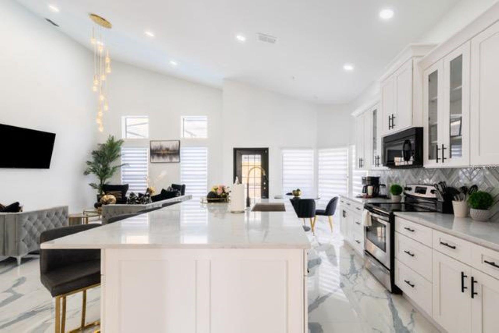 This is a 5-bedroom, 3-bathroom house located in the desirable Lake Davenport Estates Community. The home has a floorplan concept and features custom tile floors, a high ceiling, recently upgraded kitchen with a beautiful luxury quartz countertop, all 3 bathrooms were recently renovated. The master bath features a beautiful free-standing bathtub, beautiful gold shower heads, ultra-clear shower doors, and ceramic tile floors. The house is just a few minutes away from all the shopping centers, restaurants, and shopping malls, very close to Disney, has low HOA fees, short-term rental is allowed, 2-car garage, and a newly resurfaced pool with screen enclosure. This house won't last long, don't miss an opportunity to make it yours. Call today to schedule a private tour!