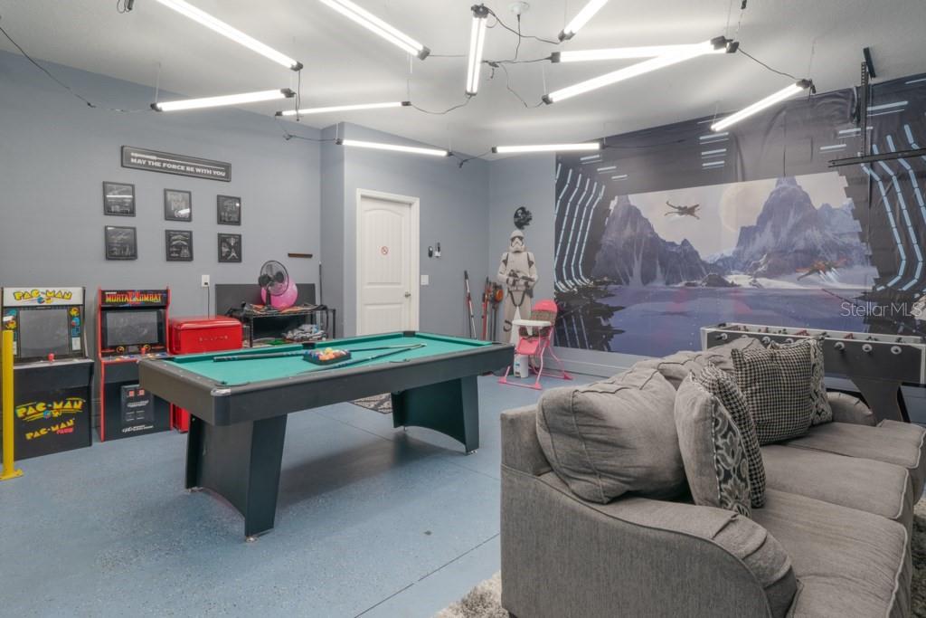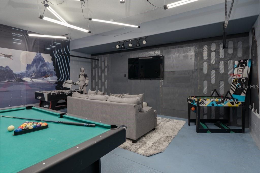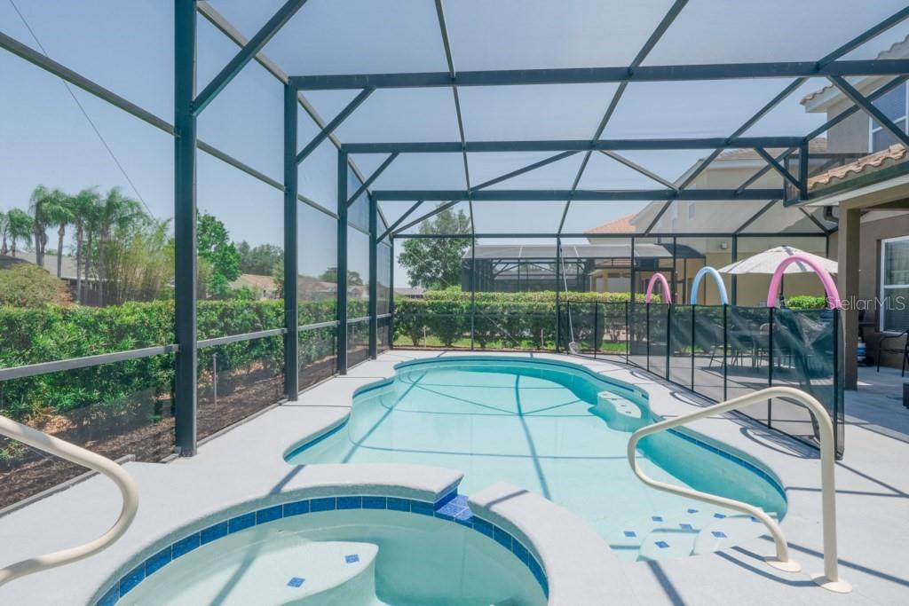 Welcome to this gorgeous home in the Solterra Resort!! Fully furnished and professionally decorated, 6 bedroom, 4.5 bathroom, this vacation home is a haven of comfort and entertainment. It has hard flooring throughout the property, easy to maintain. Enjoy endless entertainment in the amazing game room, perfect for family and friends gatherings. Relax and unwind in your private pool with a spa, nestled within a screened patio for privacy and comfort. The resort offers amenities such as lazy river, beach entry pool, water slide, gym, jacuzzi, bar&grill, tennis court, playground… it also provides with 24 hrs security and trash pick up. It’s conveniently situated 8 miles from Disney World and 3 miles from Champions Gate, providing easy access to world-class attractions and amenities. Must see!!