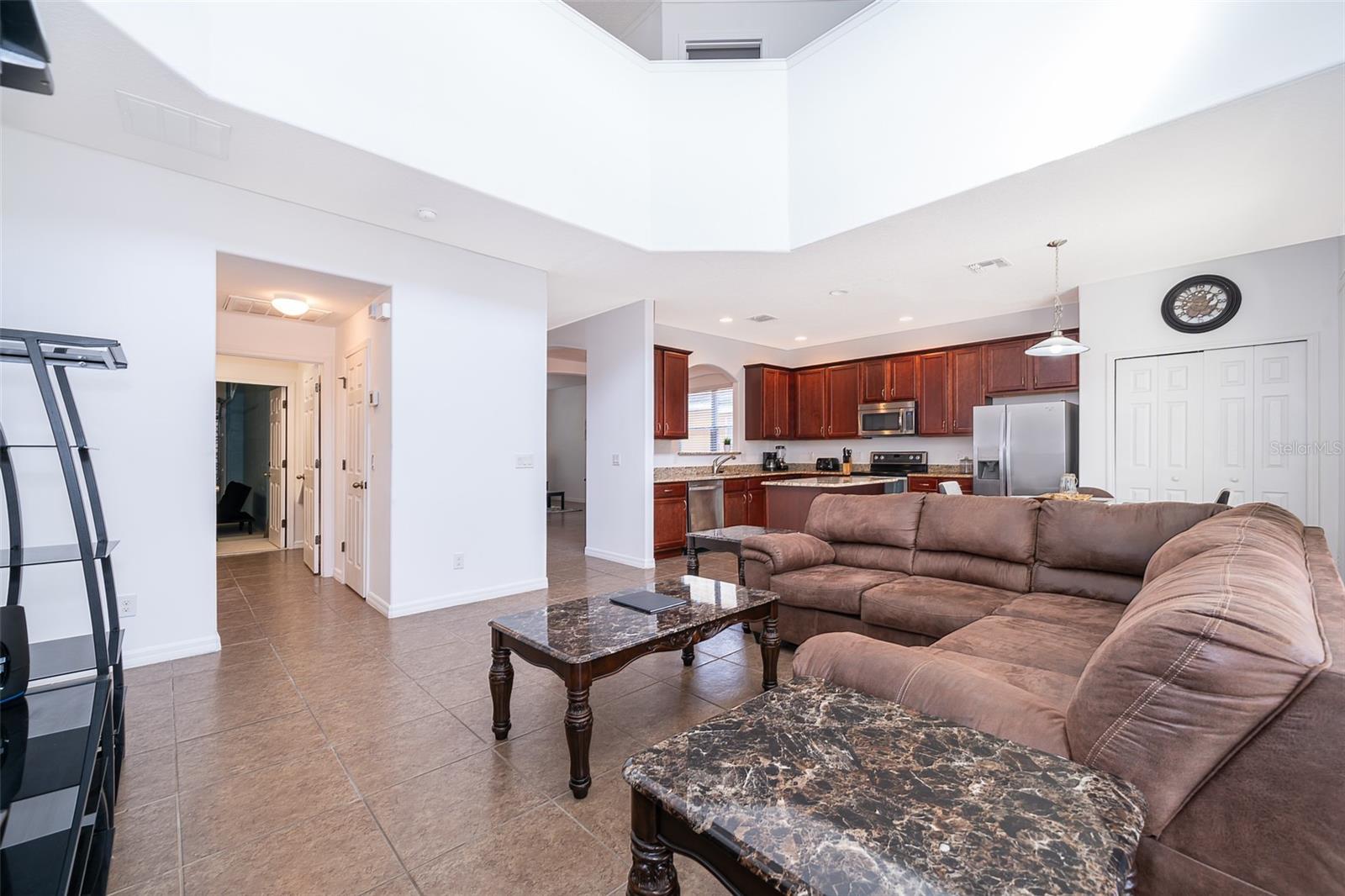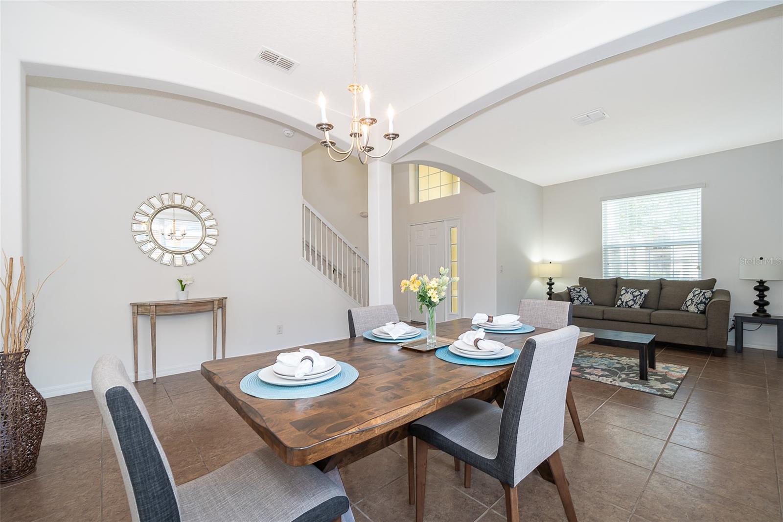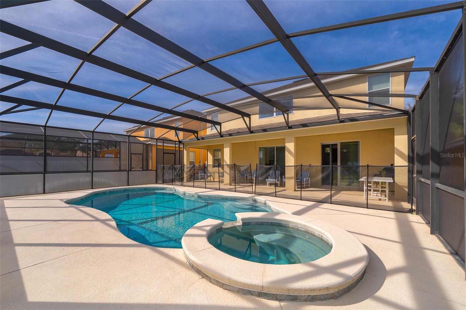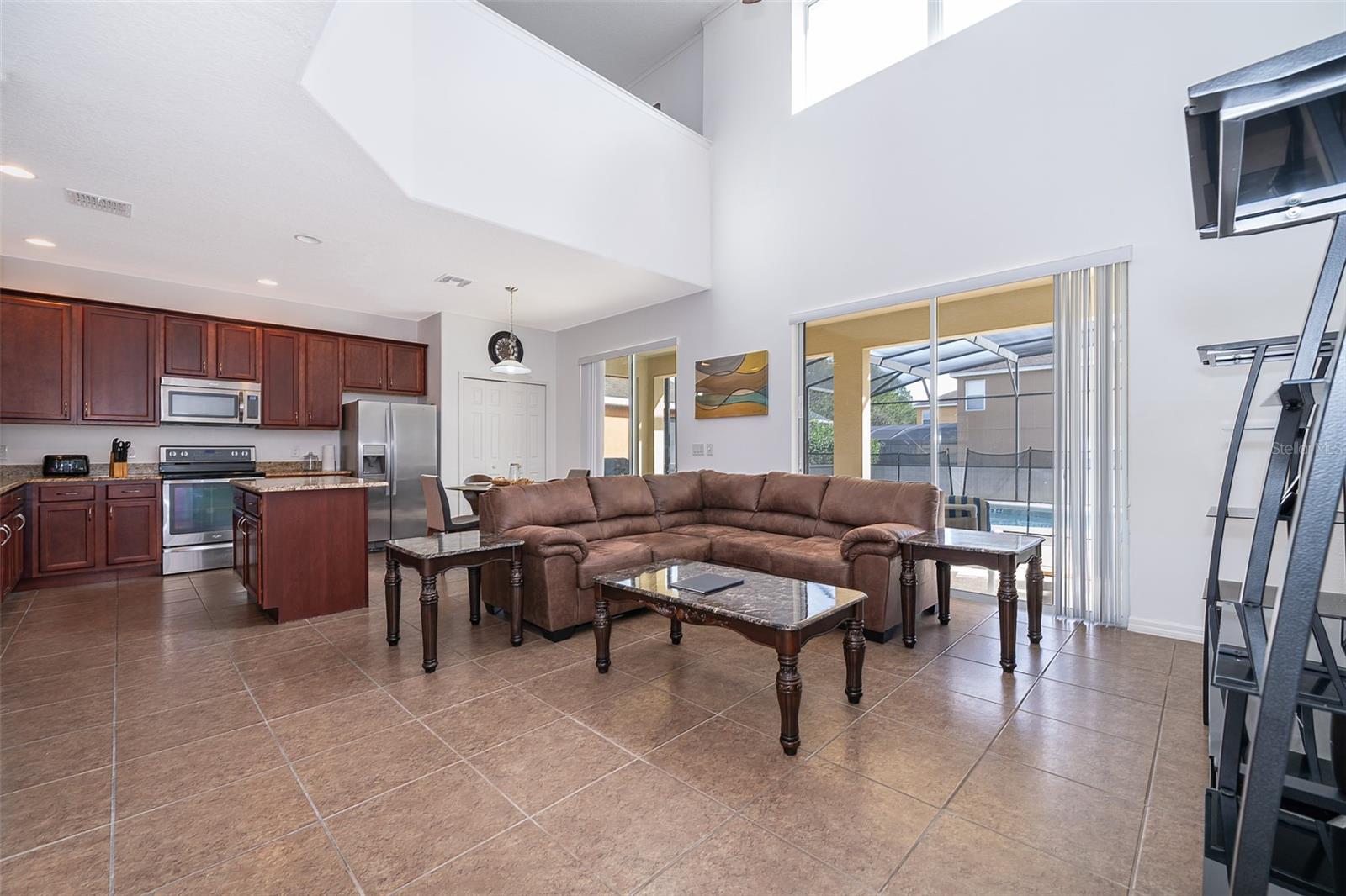Welcome home to this fully furnished 6-bedroom, 4.5-bathroom screened-in pool home in Davenport, FL, perfect for your family's primary residence or vacation getaway. Upon entering, natural light and high ceilings create an inviting open concept on the first floor. The formal living and dining areas to the left offer a warm welcome, while the kitchen and family room provide a great view of the pool outside. The spacious primary bedroom, located to the right of the family room, features a fully equipped bathroom with a soaking tub and standalone shower. But wait, there's more! The garage has been transformed into a game room, perfect for enhancing your leisure time. Upstairs, discover 5 bedrooms, 3 bathrooms, and a loft that completes the entire vibe of this 2821 square foot retreat. With amenities such as a game room, gym, and pet-friendly features, this home is ideal for short-term rentals. Don't miss out on the opportunity to make this your own—schedule a showing today!