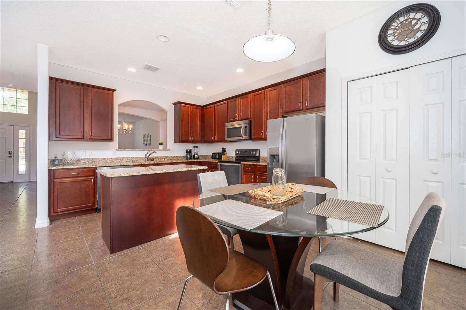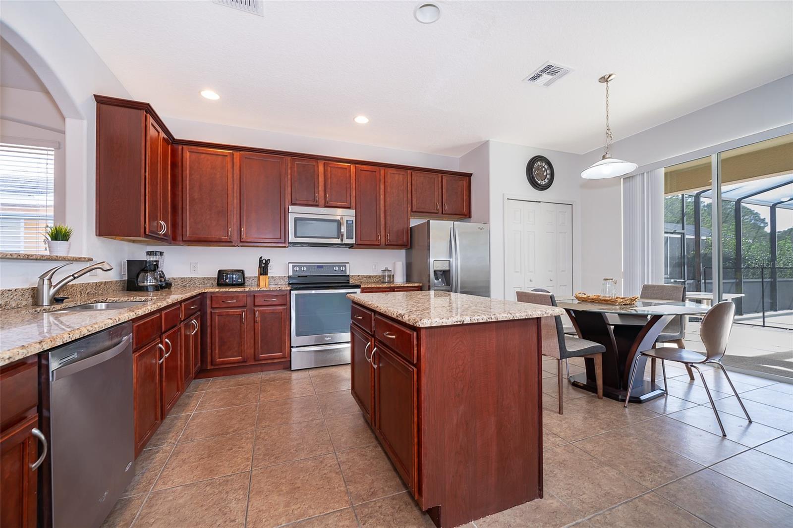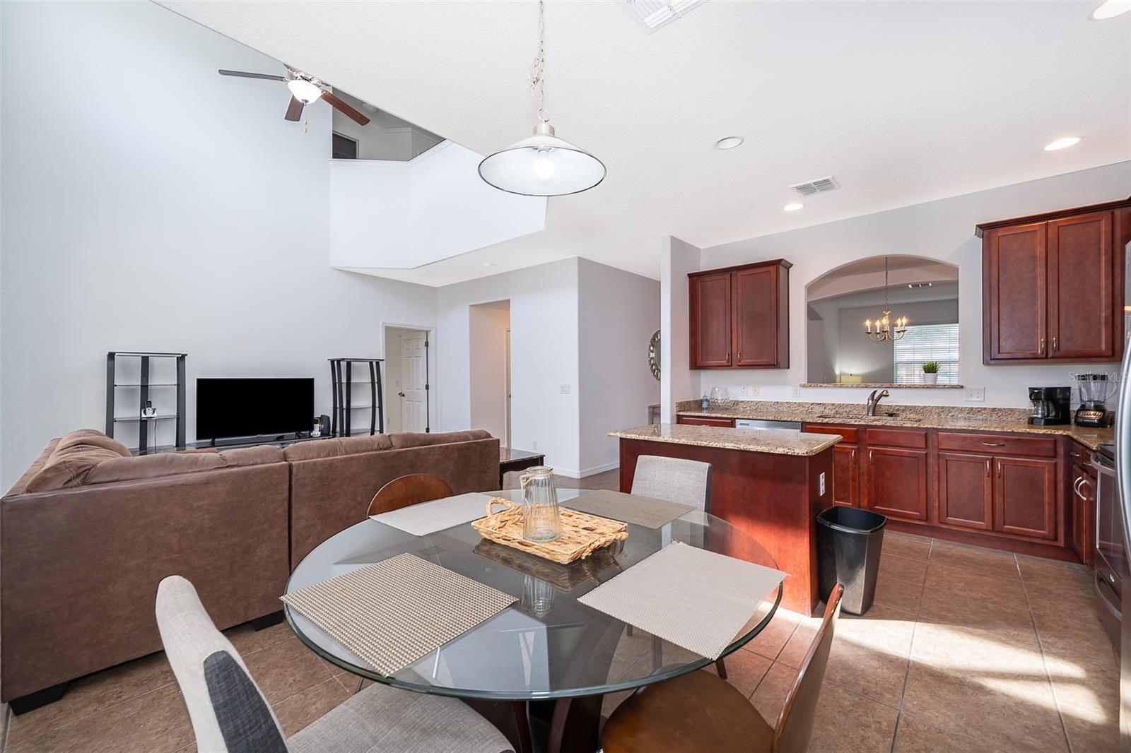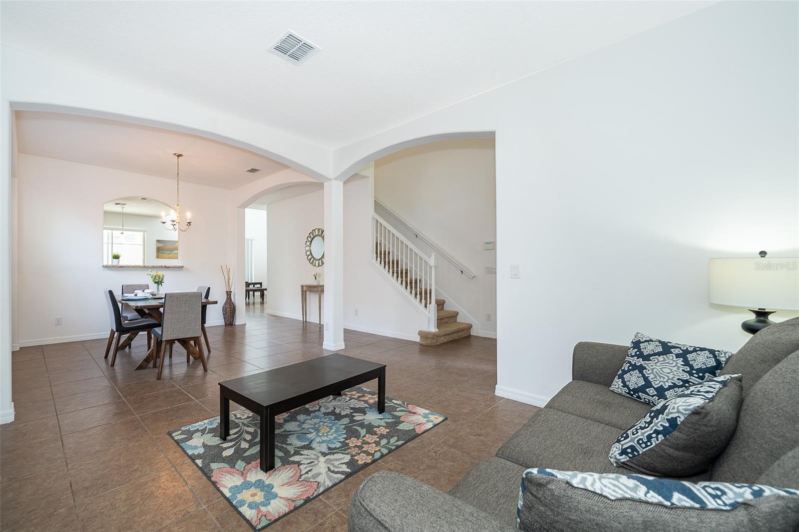 Welcome home to this fully furnished 6-bedroom, 4.5-bathroom screened-in pool home in Davenport, FL, perfect for your family's primary residence or vacation getaway. Upon entering, natural light and high ceilings create an inviting open concept on the first floor. The formal living and dining areas to the left offer a warm welcome, while the kitchen and family room provide a great view of the pool outside. The spacious primary bedroom, located to the right of the family room, features a fully equipped bathroom with a soaking tub and standalone shower. But wait, there's more! The garage has been transformed into a game room, perfect for enhancing your leisure time. Upstairs, discover 5 bedrooms, 3 bathrooms, and a loft that completes the entire vibe of this 2821 square foot retreat. With amenities such as a game room, gym, and pet-friendly features, this home is ideal for short-term rentals. Don't miss out on the opportunity to make this your own—schedule a showing today!