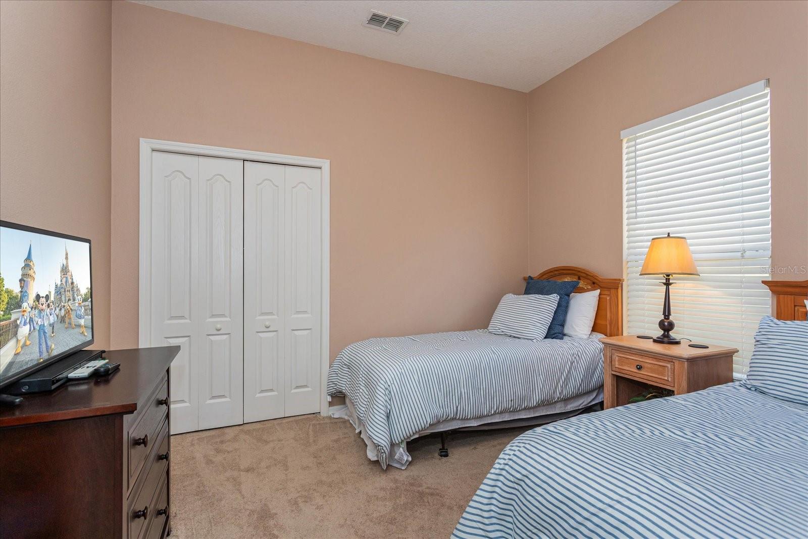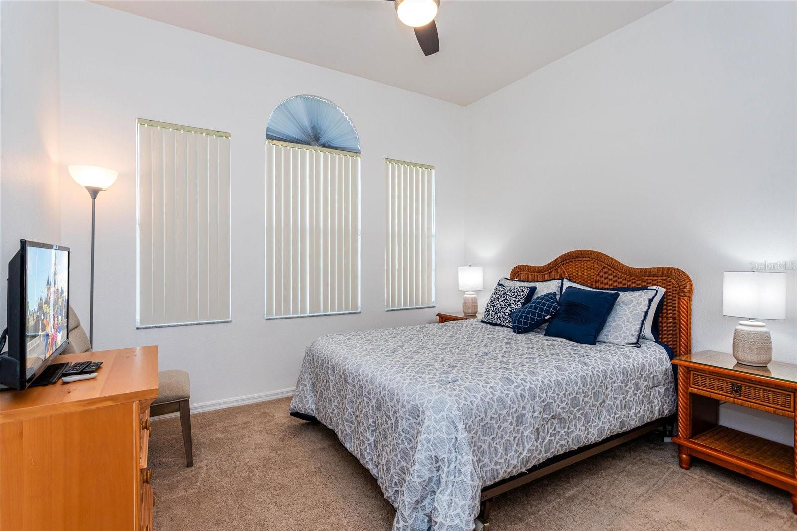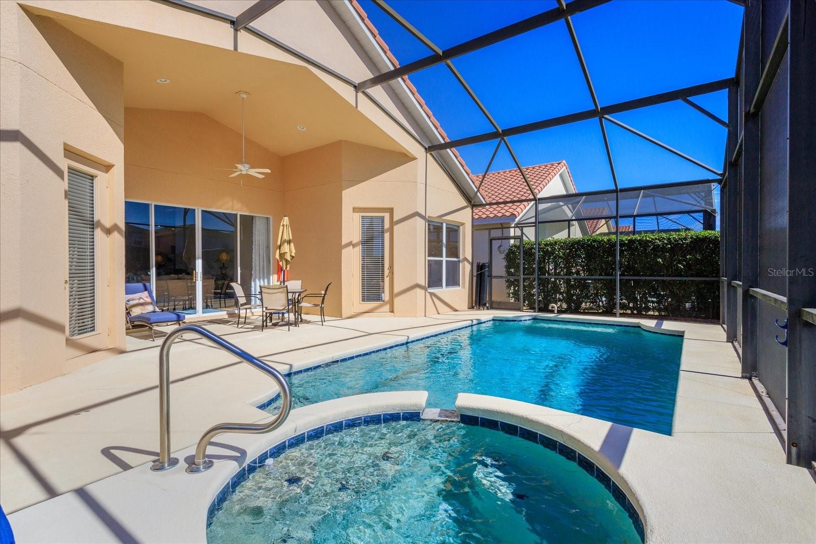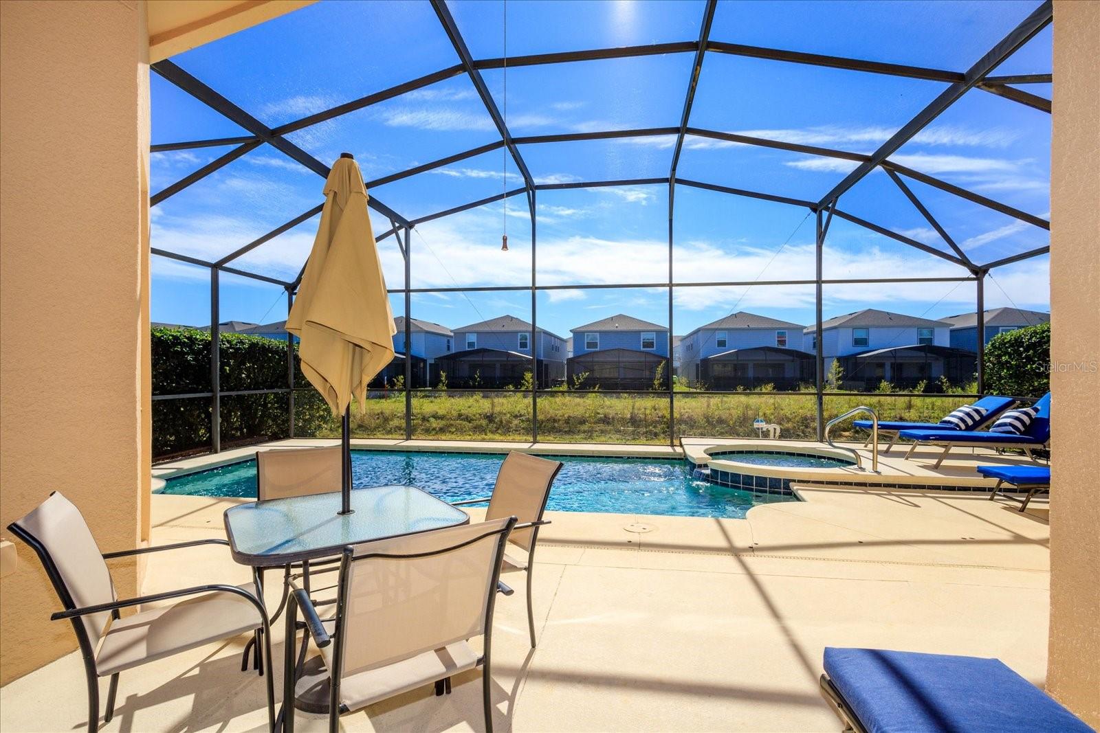 Welcome to this turnkey home. Fully furnished 5 bedrooms, 4 full baths is ready for great income right after closing. Popular gated community. Open floor plan with high ceilings and a large kitchen that includes a breakfast bar. Master bedroom with direct access to the pool and a master bath, dual sinks, garden tub, separate shower, and walk-in closet. Another bedroom also has an en suite bathroom and access to the pool. The third bedroom has an en suite bathroom, and the two additional bedrooms share a fourth full bathroom. An ideal home for entertaining with a large open living room / kitchen connecting to outdoor space via a sliding patio door. Outdoor area includes a beautiful pool with spa and shaded area with plenty of space for entertaining. The Air Conditioner, pool pump, and heater controller for the pool are new. The community includes great amenities - a clubhouse with a fitness center, sand volleyball court, tennis court, and outdoor play area. Awesome location within minutes of Disney in the 'Four Corners' area close to Highway 192 and US 27 which allow super quick access to many restaurants, retail, and grocery stores. HOA includes lawn care. This is a great investment. Can be used for an Air bnb. Excellent for short-term rental, long-term rental, a second home, or even a primary residence. This place has it all!