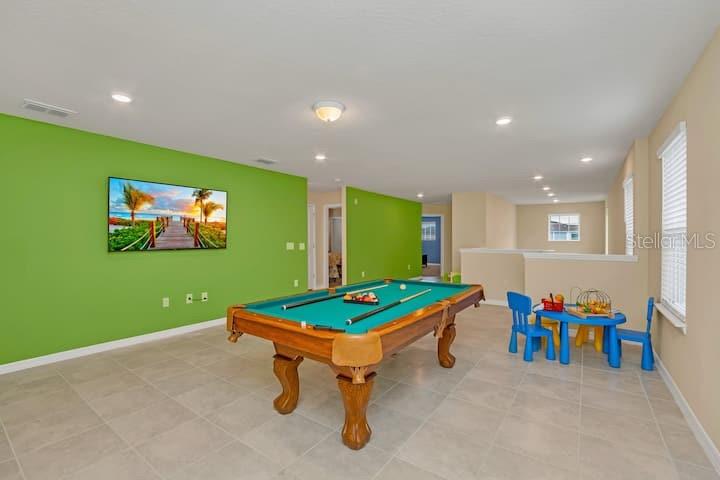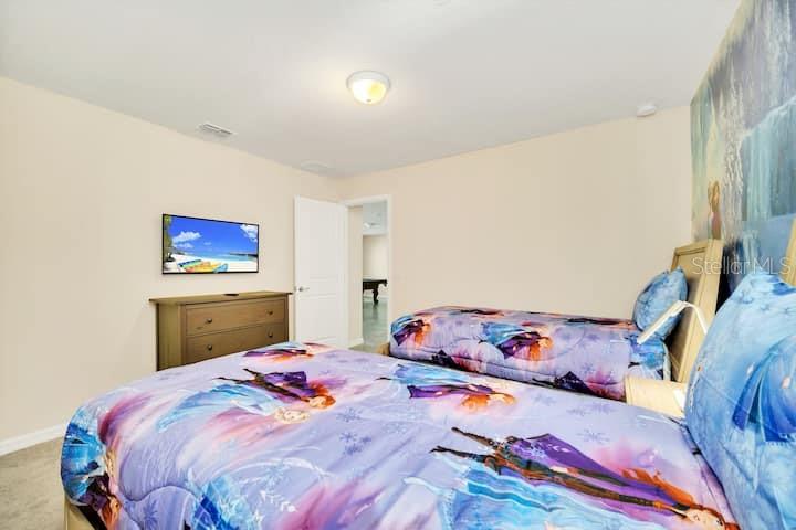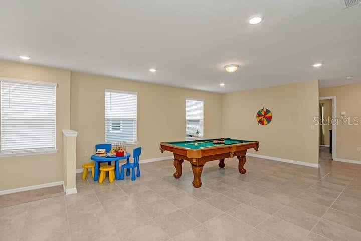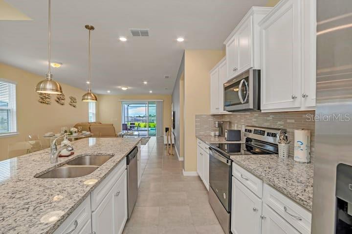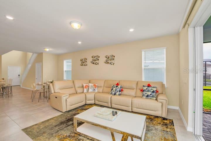 Fully furnished 6 bedrooms short-term rental vacation home with full bookings until June. You can watch Disney fire work show every night from your backyard with private heated pool and spa. Nestled within the vibrant beauty of Windsor Island Resort which offers some of the best amenities ever seen in this area including 8,000 sq ft clubhouse incorporating lounge, concierge, sundry shop, fitness center, arcade game room, Blue Marlin Grille Bar and Restaurant, playground, mini putt putt golf course, fire-pit with direct DISNEY FIREWORK VIEWS, heated beach style ‘zero entry pool’, lazy river, water slide, splash pad, pool side cabanas, sun loungers galore and more! Windsor Island Resort is sure to impress owners and guests. As you step into this magnificent home, you'll be greeted with the open-concept layout that seamlessly connects the spacious living areas, providing ample space for relaxation and entertainment. The stylishly appointed kitchen, complete with stainless steel appliances and a large center island, is a culinary haven for aspiring chefs and food enthusiasts. Enjoy the convenience of a ground level owner’s suite with bathroom, and direct access to the pool area. The five additional well-appointed bedrooms offer comfort and privacy for all your family and friends.