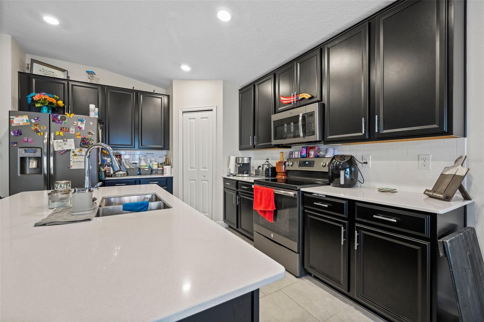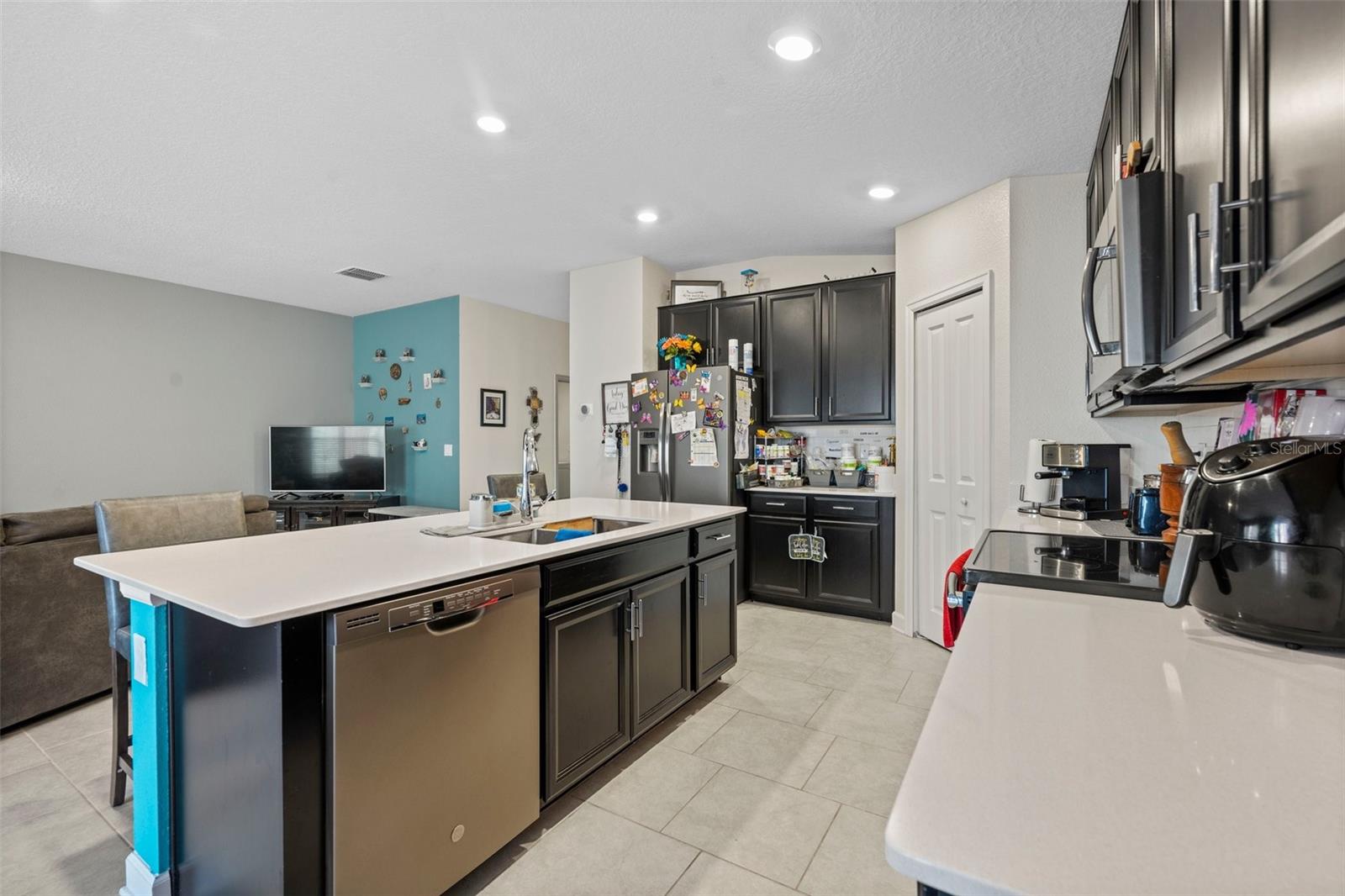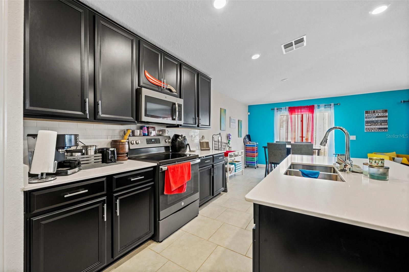 This property is Eligible for $0 Down Payment Financing Program! Welcome to this beautiful property! It consists of 4 bedrooms and 2 bathrooms, ceramic floors, with carpets in rooms. The kitchen include Stainless Steel appliances, beautiful quartz countertops and a beautiful island. Both bathrooms include quartz countertops. This property includes Solar System, convenient for electricity savings (paid in full), Fully fenced yard convenient for family activities, privacy or pets, exterior rear floor in pavers ready to build a beautiful terrace. The property offers direct access to the backyard through a private gate, 12x11 Concrete Floor in the backyard that can be used to park additional vehicles, etc. Closed garage with garage door for 2 vehicles that includes operator and wireless controls, Ring doorbell with camera located at the entrance of the property, ideal for privacy and security. Just walking distance to Commerce, Dining and Entertainment, just minutes from Posner Park Outlet Mall, including Disney World at 27 minutes, 19 miles. This property is ready to welcome you and your family as owners, or for investors looking for a good return on their investment.