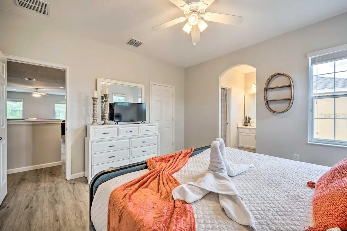 OWNER MOTIVATED! HUGE PRICE REDUCTION! HIGH OCCUPANCY as STR! Owner Financing available to deserving buyer with reasonable down payment! Discover the epitome of luxury living in this spacious 6-bed, 5-bath two-story residence nestled in the beautiful Guard-Gated community of Watersong. Located in close proximity to major highways, theme parks and shopping this home in conveniently located to be a primary residence or short term rental. Embrace the allure of modern comfort with an inviting inground heated pool and spa, surrounded by meticulously kept landscaping and NO REAR NEIGHBORS. This home boasts upgraded floors throughout to include tile and luxury vinyl planks meaning NO CARPET! Updated lighting and paint throughout also give a light and bright feel for guests. Watersong offers a fully loaded clubhouse including beach volleyball resort pool, over sized spa, internet hub and fitness center. Don't hesitate to schedule your showing today!
