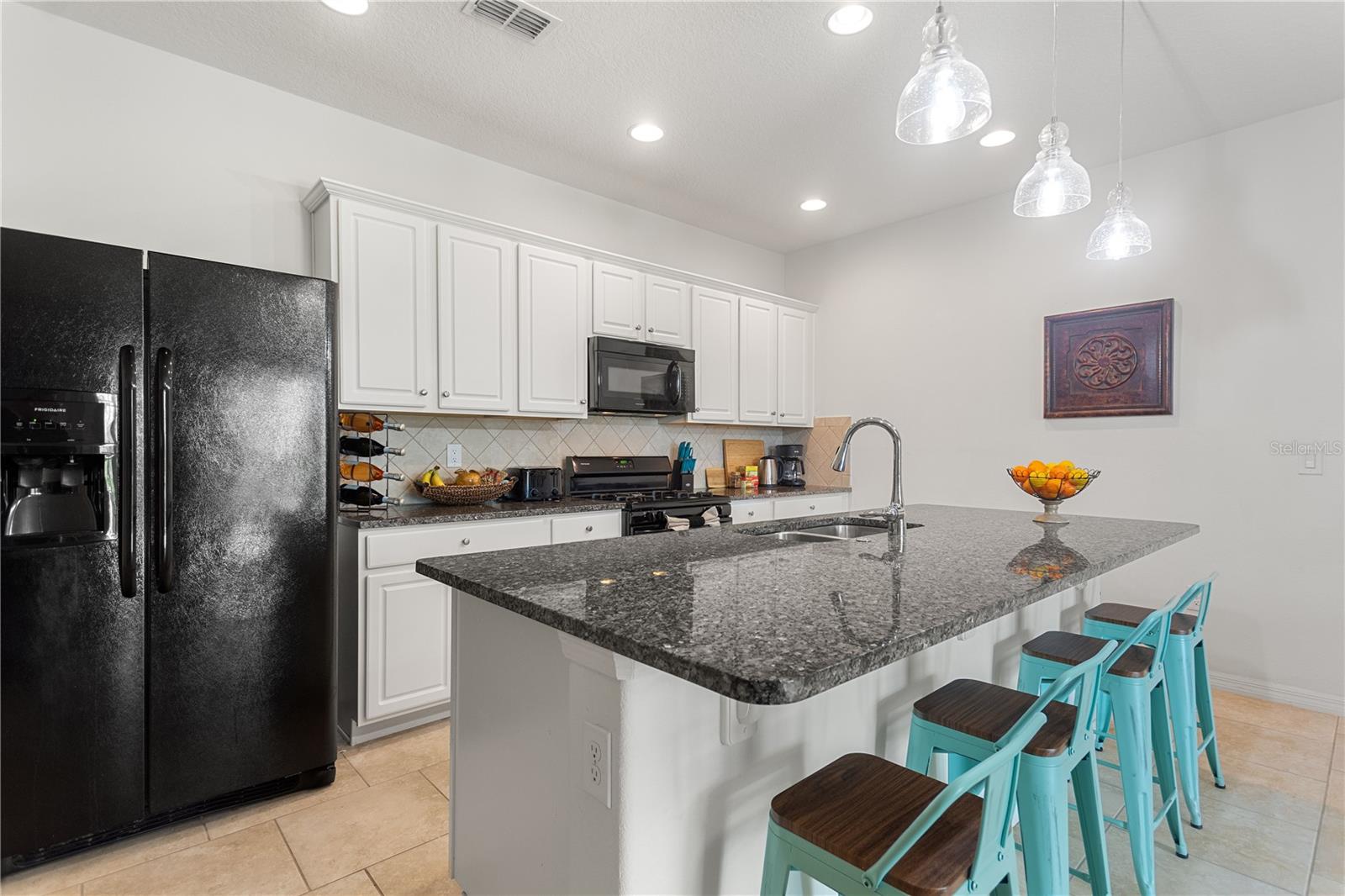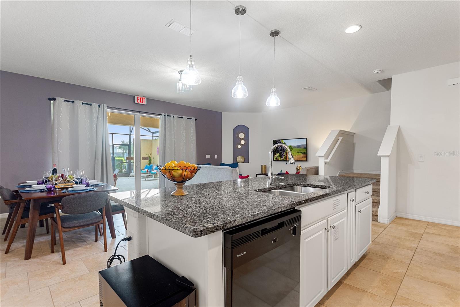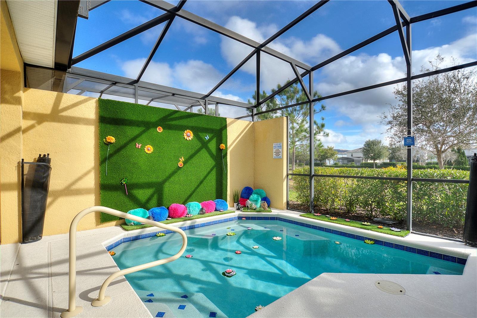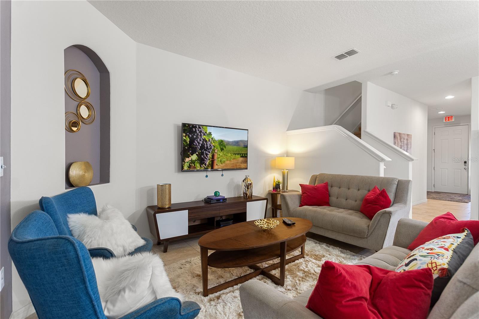 Like having a Genie in a bottle, your every wish can come true. Join Solterra’s Resort Lifestyle surrounded by nature, wildlife & green spaces alongside every path. The clubhouse provides activities & opportunities just steps away from your beautiful 4 bedroom, 3+1/2 bath fully furnished, turnkey townhome & private heated pool. With no rear neighbors, your privacy is assured. Every convenience is considered from the time you enter the large foyer with built in drop zone & storage bench. A large sunny bedroom downstairs offers convenience and its bathroom has a double vanity with step in shower. Just inside, the spacious kitchen with white cabinetry has granite countertops and a large kitchen island, easily seating 4 faces the outdoor dining and pool deck. With beautiful views, this open plan concept keeps everyone in on the action. Dining Room & Living Room, are all in the mix and is perfect for entertaining with the double opening sliders inviting the outdoors in. The East facing pool deck gives you a light & bright disposition, and shades from the late afternoon heat. Perfect all day! Whether starting your day with breakfast al fresco, a morning yoga routine, or lounging poolside, the day will start off right! Upstairs you’ll find the bright Primary Bedroom and ensuite bathroom with double vanities & granite countertops. Two secondary bedrooms have a shared bath with double vanity, granite countertops, & white cabinetry. The large laundry room on the second floor is roomy& large enough to fold & store extras. Head over to the clubhouse for crafts, a round of tennis, a ten foot pool slide, or take a spin around the lazy river, and enjoy a wonderful meal from Solterra’s private cafe. You can even order freshly made pizza for pickup on those lazy nights. Solterra frequently hosts events such as poolside movies, food trucks & homeowners potlucks, and the large fitness center is open from 5AM until 10PM nightly. 15 minutes to Disney, Shopping & Restaurants nearby, a private cafe on premises, and zoned to allow Short-Term Rental, ideal for investors, a second home with the benefit of renting out when you’re not enjoying, and many full time residents are choosing to make Solterra their full time home! Come join us! *some of the decor pictured are staged and do not convey.