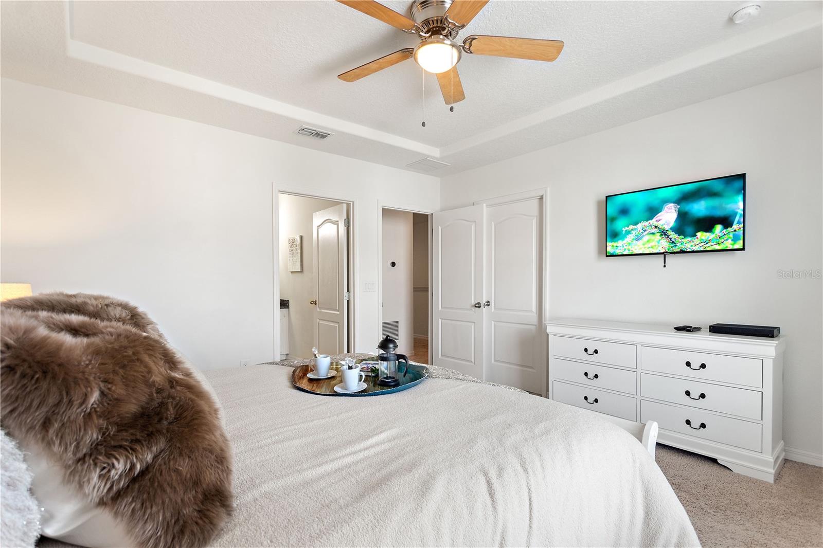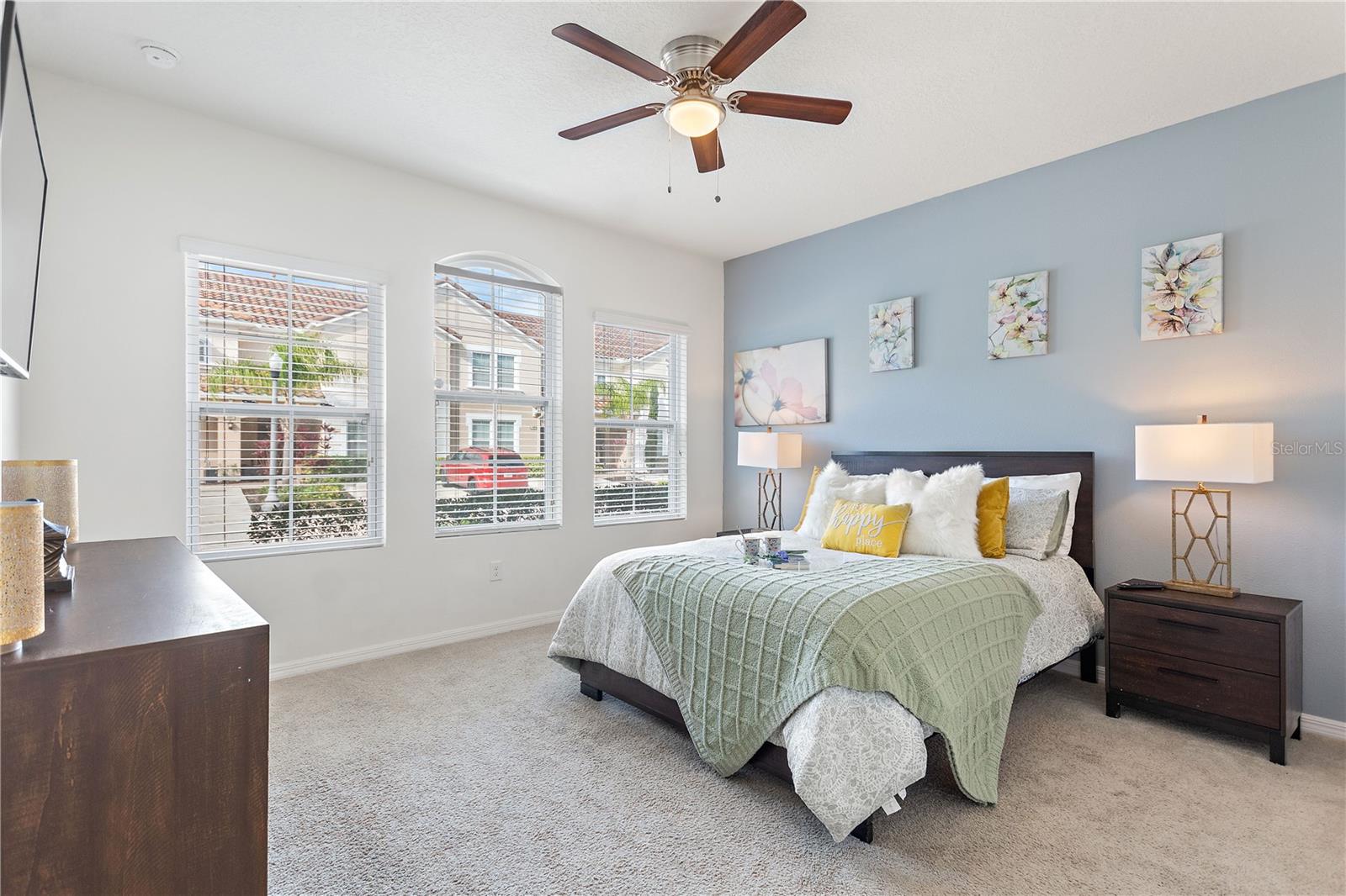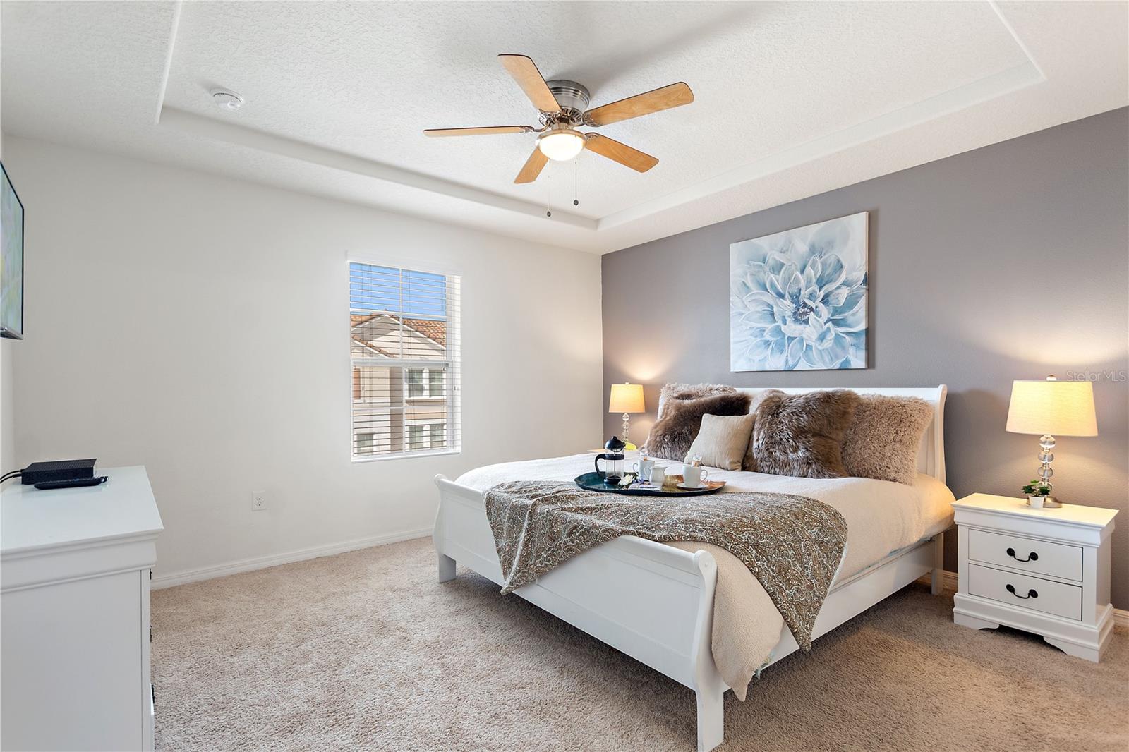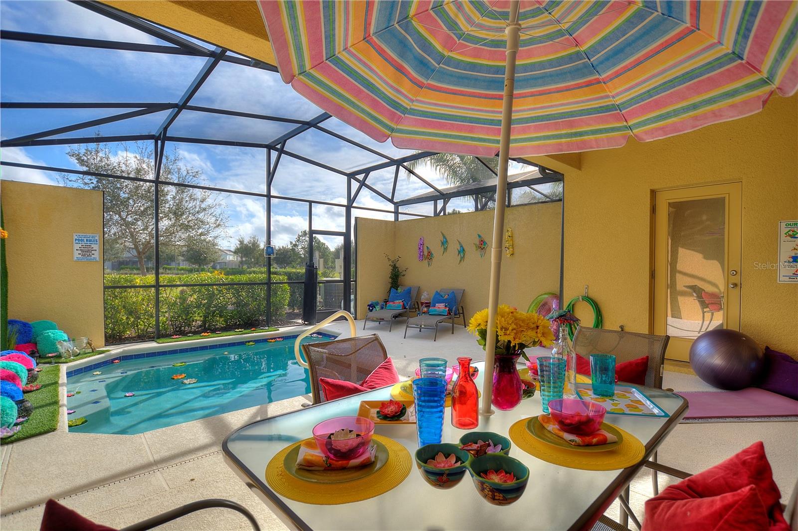 Like having a Genie in a bottle, your every wish can come true. Join Solterra’s Resort Lifestyle surrounded by nature, wildlife & green spaces alongside every path. The clubhouse provides activities & opportunities just steps away from your beautiful 4 bedroom, 3+1/2 bath fully furnished, turnkey townhome & private heated pool. With no rear neighbors, your privacy is assured. Every convenience is considered from the time you enter the large foyer with built in drop zone & storage bench. A large sunny bedroom downstairs offers convenience and its bathroom has a double vanity with step in shower. Just inside, the spacious kitchen with white cabinetry has granite countertops and a large kitchen island, easily seating 4 faces the outdoor dining and pool deck. With beautiful views, this open plan concept keeps everyone in on the action. Dining Room & Living Room, are all in the mix and is perfect for entertaining with the double opening sliders inviting the outdoors in. The East facing pool deck gives you a light & bright disposition, and shades from the late afternoon heat. Perfect all day! Whether starting your day with breakfast al fresco, a morning yoga routine, or lounging poolside, the day will start off right! Upstairs you’ll find the bright Primary Bedroom and ensuite bathroom with double vanities & granite countertops. Two secondary bedrooms have a shared bath with double vanity, granite countertops, & white cabinetry. The large laundry room on the second floor is roomy& large enough to fold & store extras. Head over to the clubhouse for crafts, a round of tennis, a ten foot pool slide, or take a spin around the lazy river, and enjoy a wonderful meal from Solterra’s private cafe. You can even order freshly made pizza for pickup on those lazy nights. Solterra frequently hosts events such as poolside movies, food trucks & homeowners potlucks, and the large fitness center is open from 5AM until 10PM nightly. 15 minutes to Disney, Shopping & Restaurants nearby, a private cafe on premises, and zoned to allow Short-Term Rental, ideal for investors, a second home with the benefit of renting out when you’re not enjoying, and many full time residents are choosing to make Solterra their full time home! Come join us! *some of the decor pictured are staged and do not convey.