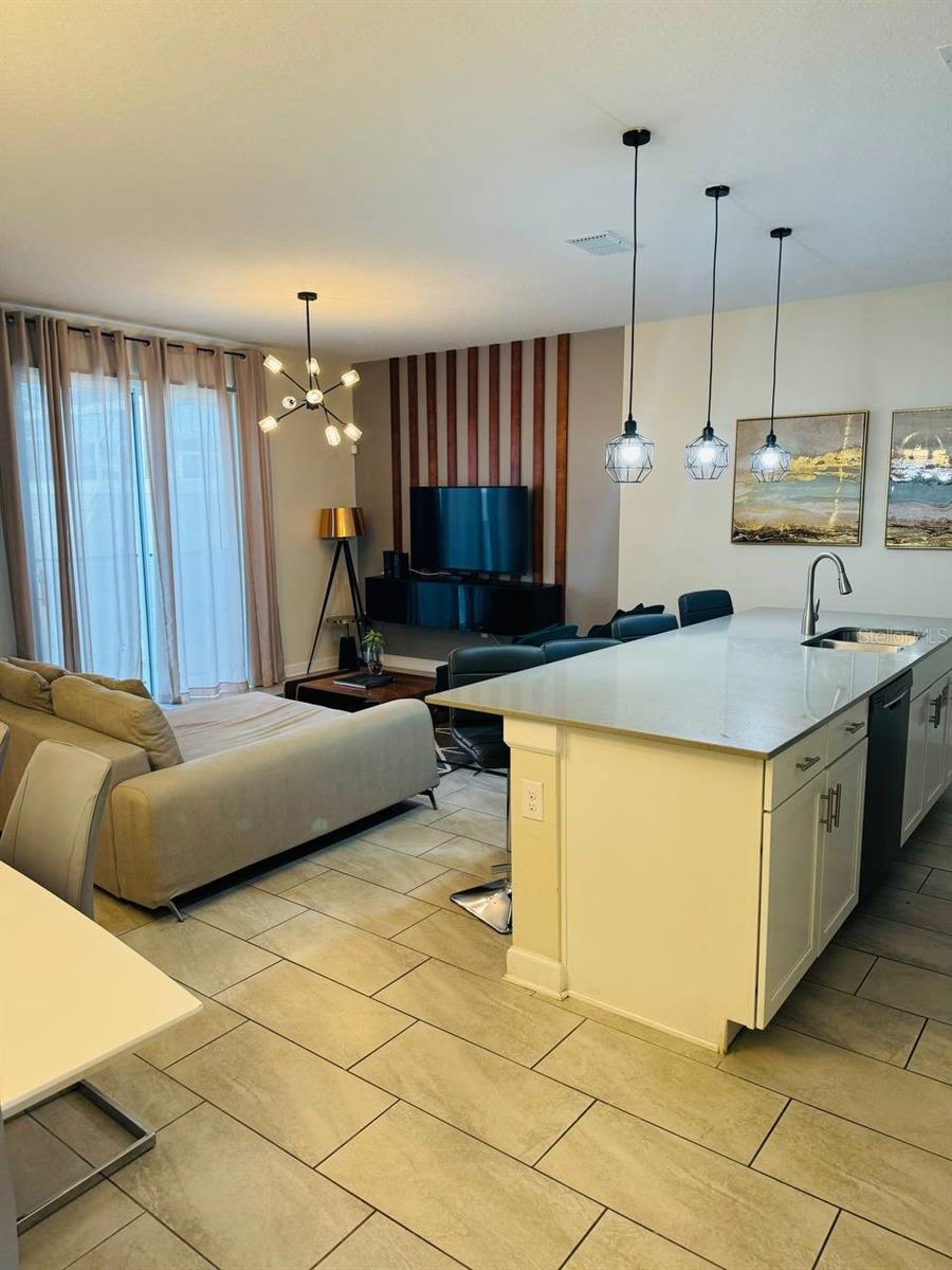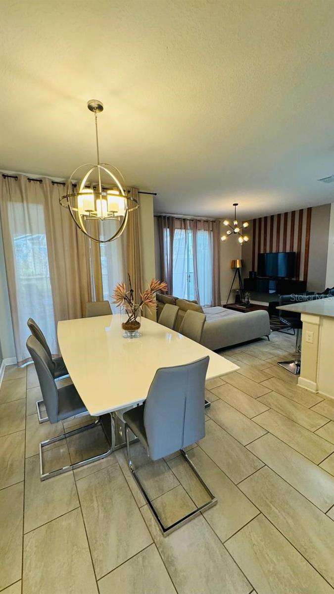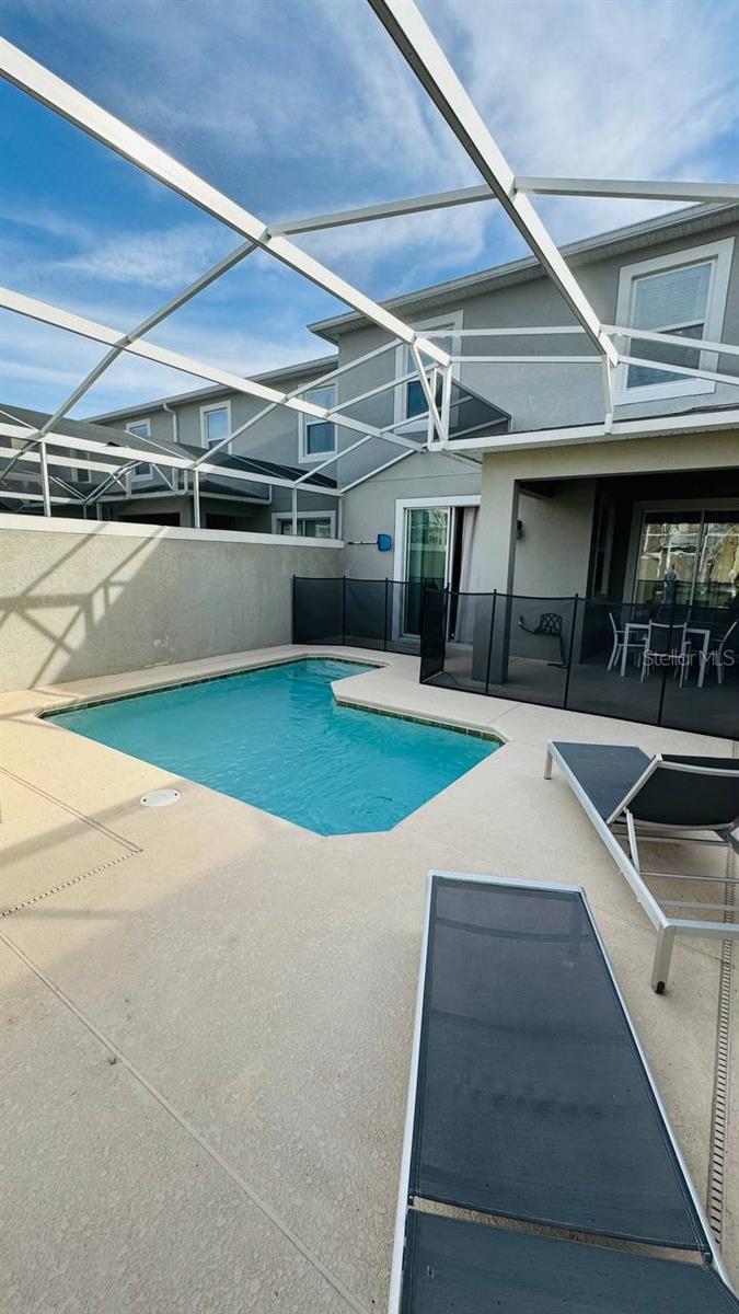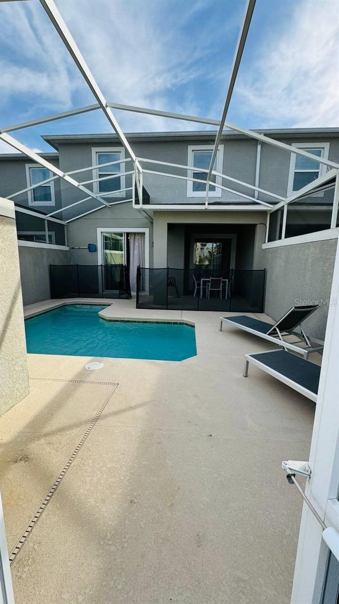 Situated in the sought-after Championsgate community, this well-loved townhouse comes fully furnished and is perfect for short term rentals. Boasting four bedrooms, three bathrooms, and a spacious living and dining area, this open plan layout is ideal for hosting gatherings. The kitchen overlooks a large covered patio with a lovely pool, providing a great space for families to relax and enjoy. One bedroom is located on the ground floor, while two more can be found upstairs. Residents can also take advantage of the resort-style pool, spa, tennis courts, basketball courts, fitness center, and more. The Champions Gate Resort Orlando Oasis Clubhouse and Water Park offer a range of amenities including a lazy river, water slides, swim-up bar, spa, and more. All these perks, along with access to seven tennis courts, are included in the HOA fees. Don't miss out on this opportunity - call to schedule a viewing today!