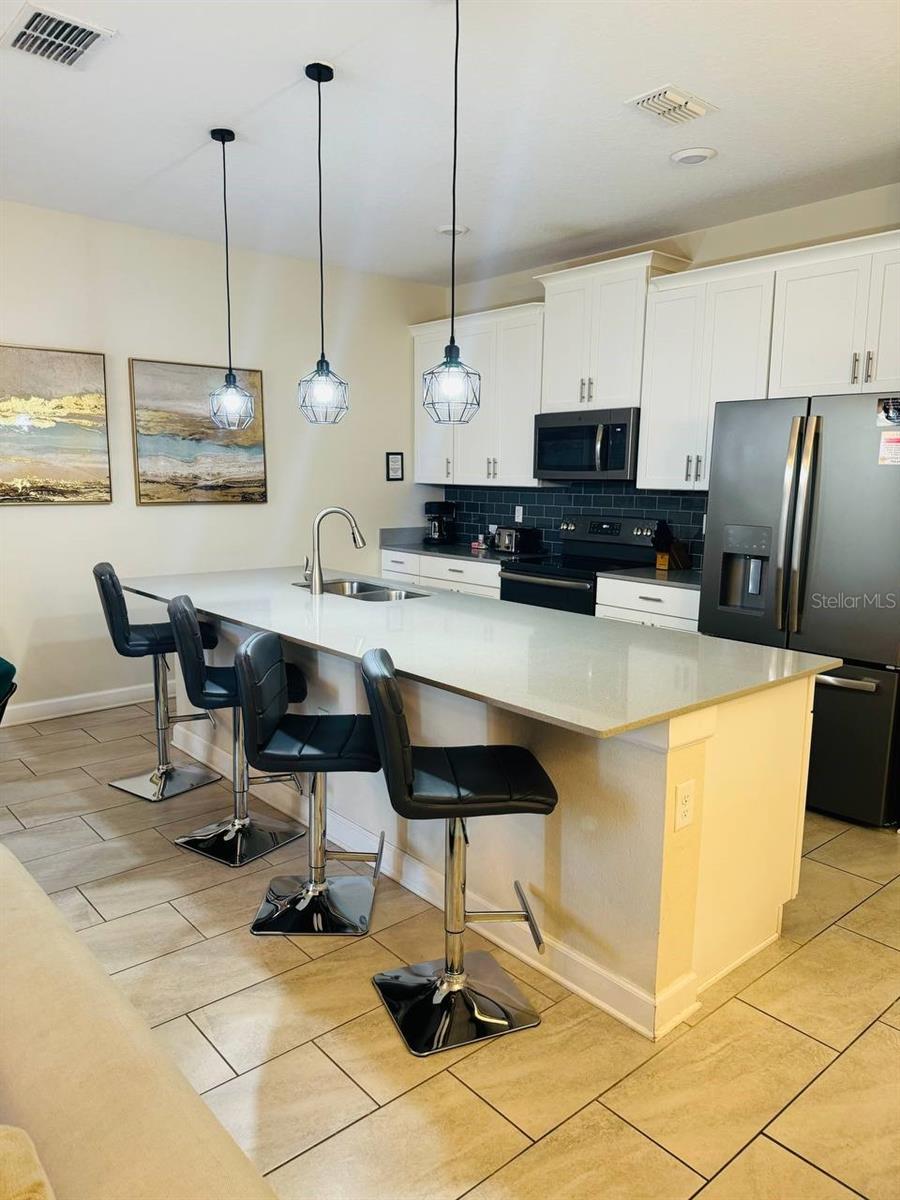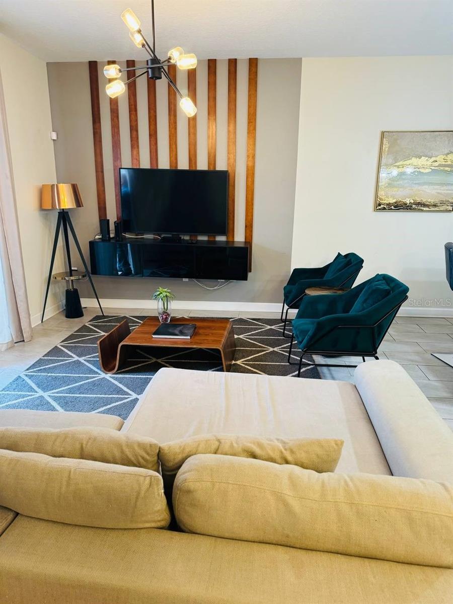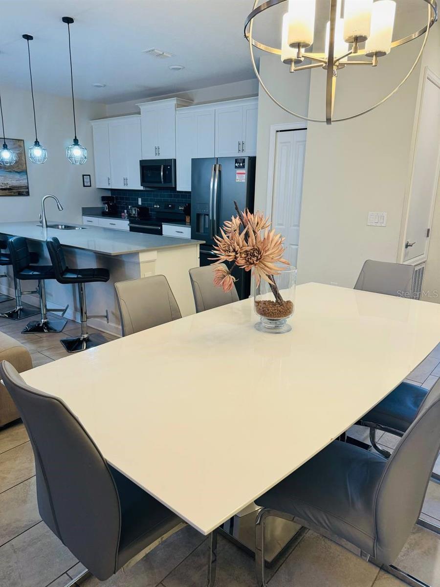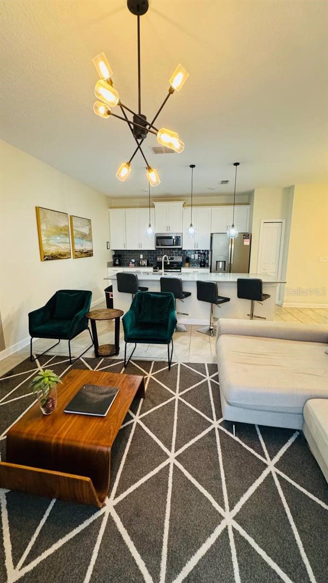 Situated in the sought-after Championsgate community, this well-loved townhouse comes fully furnished and is perfect for short term rentals. Boasting four bedrooms, three bathrooms, and a spacious living and dining area, this open plan layout is ideal for hosting gatherings. The kitchen overlooks a large covered patio with a lovely pool, providing a great space for families to relax and enjoy. One bedroom is located on the ground floor, while two more can be found upstairs. Residents can also take advantage of the resort-style pool, spa, tennis courts, basketball courts, fitness center, and more. The Champions Gate Resort Orlando Oasis Clubhouse and Water Park offer a range of amenities including a lazy river, water slides, swim-up bar, spa, and more. All these perks, along with access to seven tennis courts, are included in the HOA fees. Don't miss out on this opportunity - call to schedule a viewing today!