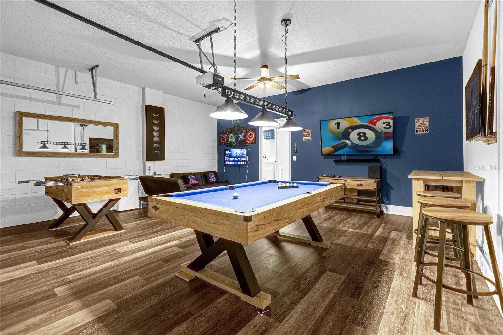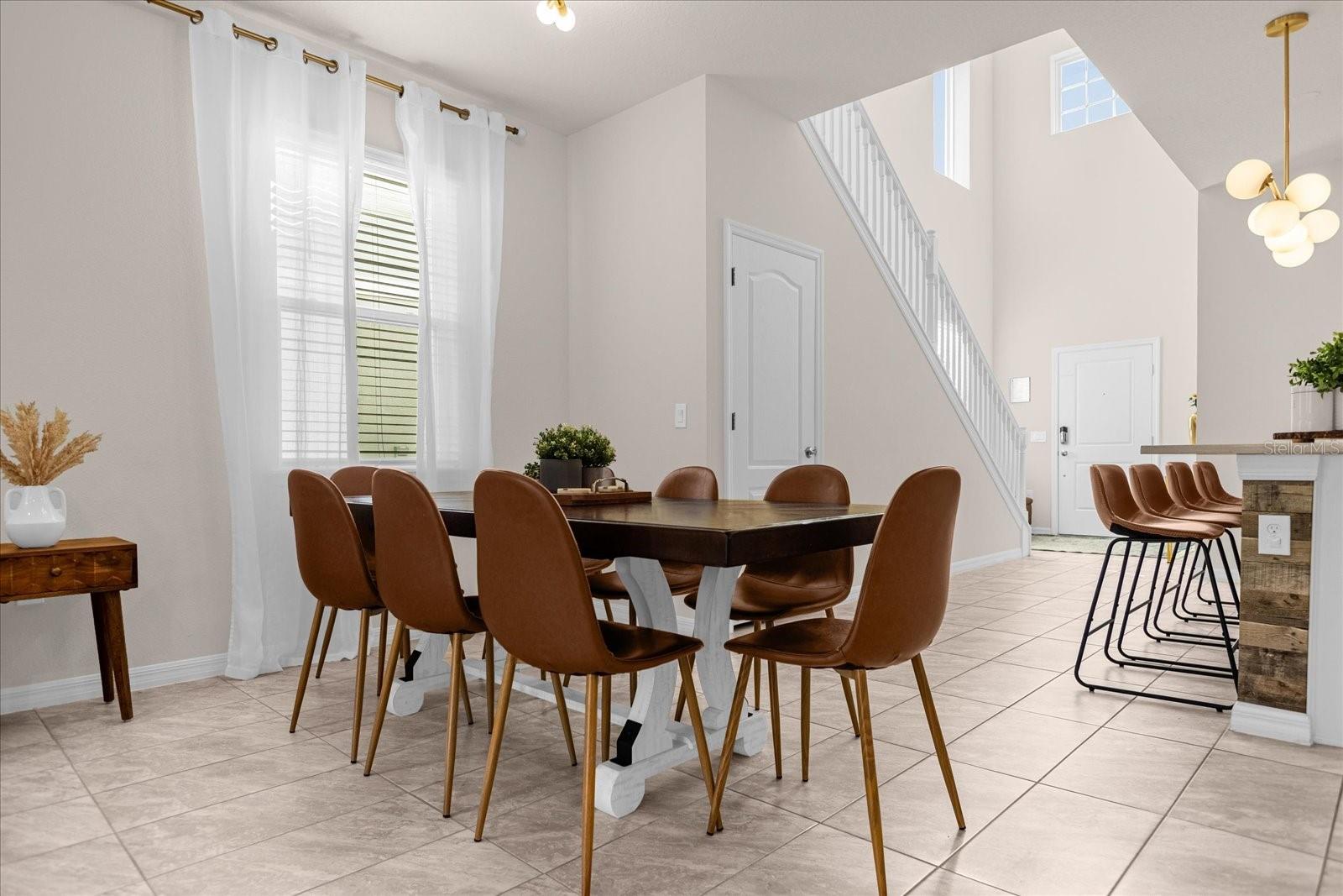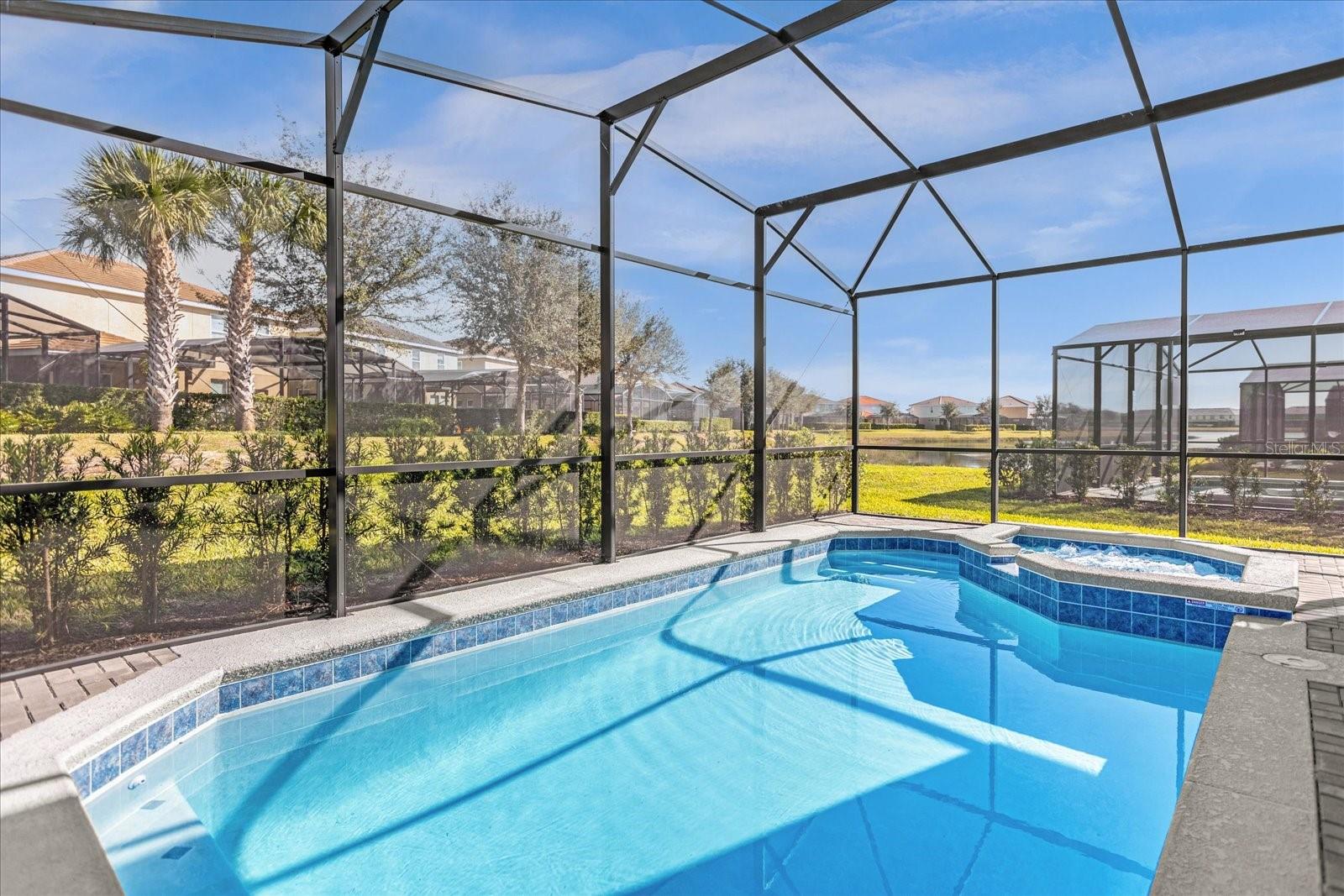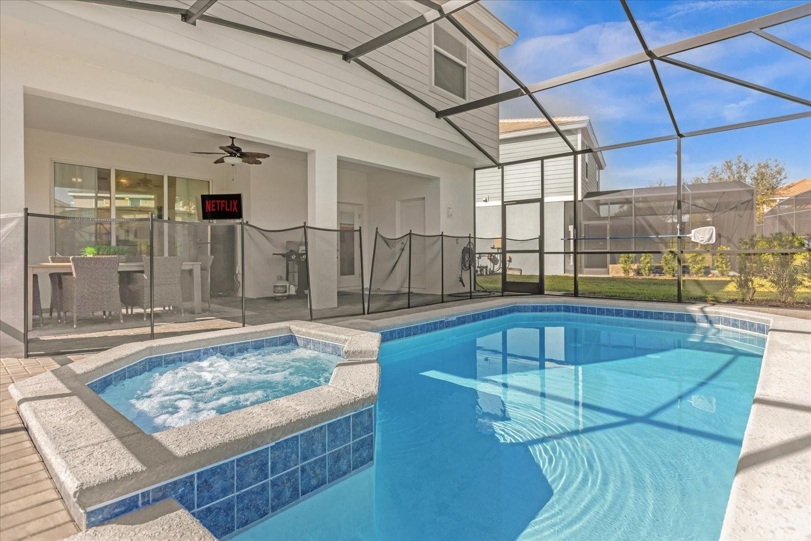 Stunning, fully-furnished, 6 bed 4.5 bath home in the gated Solterra Resort. This short term rental subdivision boasts a gated entrance with a guard. This beautiful home was built by Pulte Homes, known for their innovative floor plans, personalization, and quality, you can rest assured that every detail was well thought out. The home features 2 floors, a 2 car garage, and a private screened-in pool with a heated spa, perfect for unwinding after a long day. The inside of the home is breathtaking to say the least. The upgraded cabinets with neutral backsplash goes perfect with the design of the kitchen island, which features eating-space and a double sink all conveniently placed. The quartz countertops tie it all together for a truly elegant look. The pristine condition of the home can truly only be appreciated in-person. The lighting throughout the living room and dining room combo accentuate the living space that will be used the most by your family and friends. All the rooms are very spacious and any extra rooms make a perfect space for a home-office. Indulge in the luxurious bathrooms, outfitted with modern amenities including garden baths, separate shower stalls, and double-sink vanities, ensuring every moment spent here is one of comfort. The garage has been outfitted with vinyl flooring, AC and insulation and converted into a game room! Or whatever you decide to turn it into; including a garage, as it is very simple to convert back if you desire. Beyond the confines of this exquisite abode lies an enviable location, mere minutes from a myriad of entertainment, shopping, and dining options. Orlando's vibrant attractions are within easy reach, with Disney World a short 20-minute drive away and downtown Orlando just 45 minutes from your doorstep. Don't miss the opportunity to make this unparalleled retreat your own – schedule your appointment today and prepare to experience luxury living at its finest!