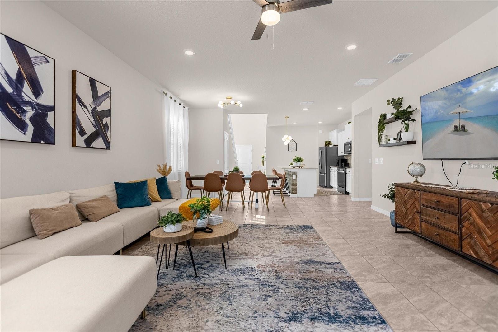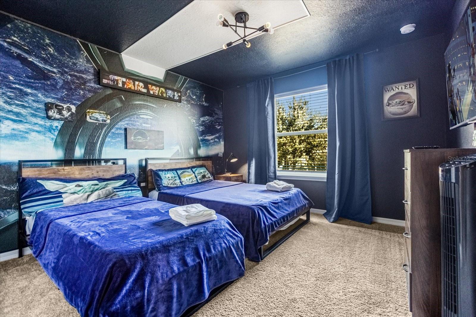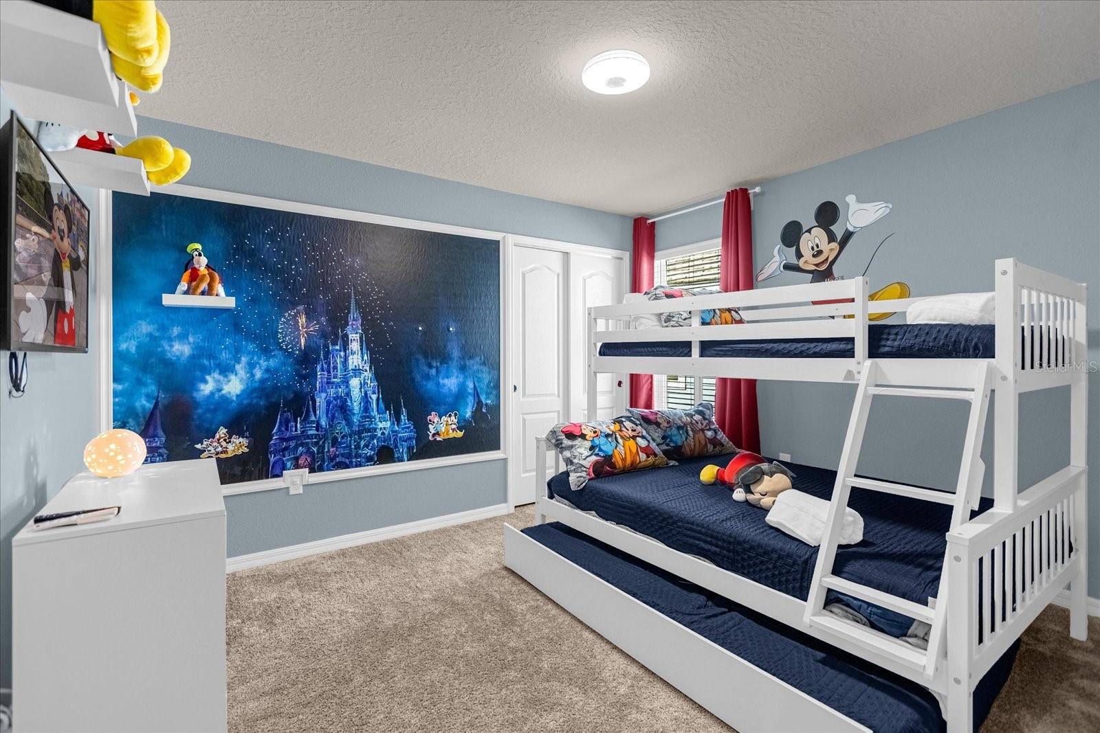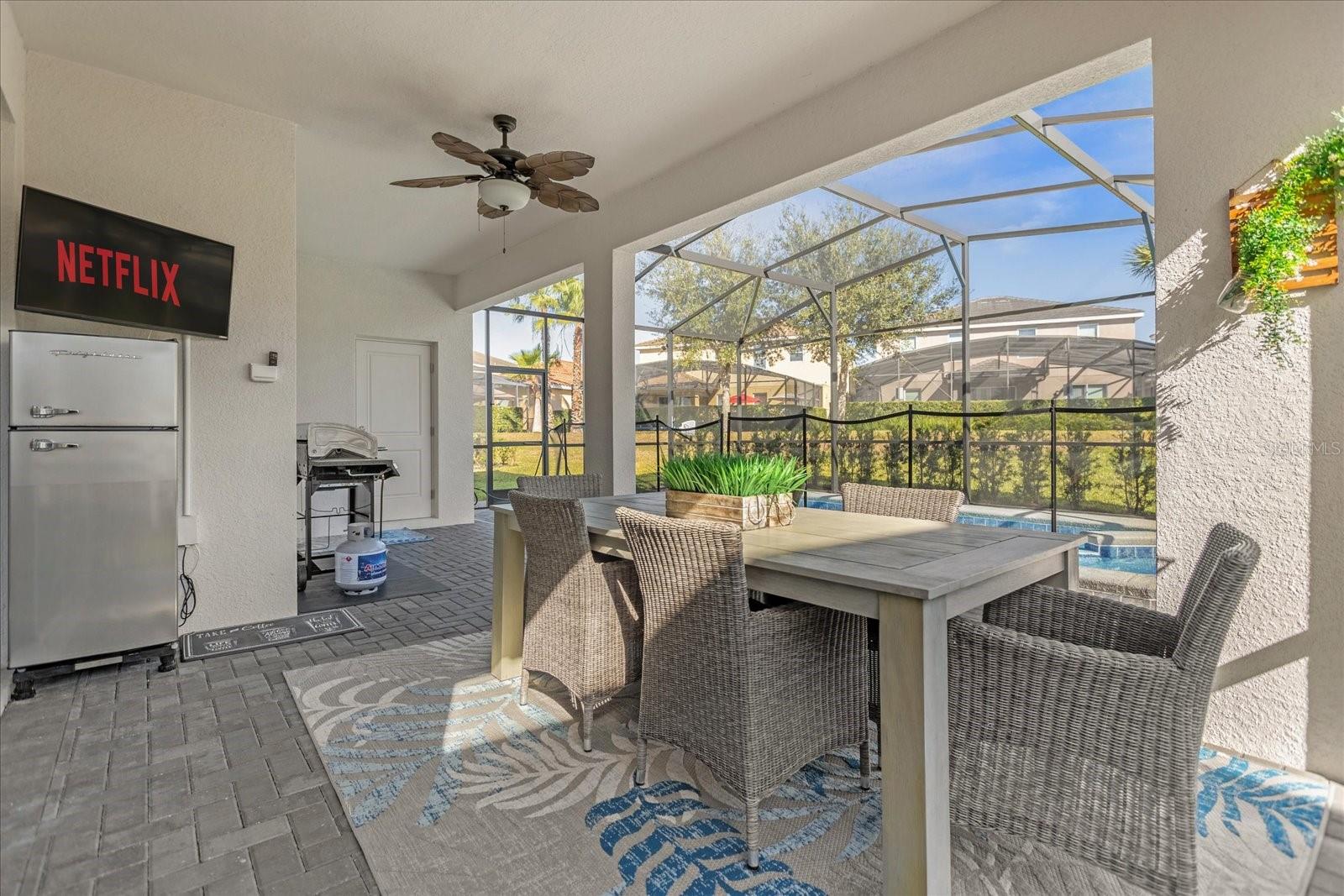 Stunning, fully-furnished, 6 bed 4.5 bath home in the gated Solterra Resort. This short term rental subdivision boasts a gated entrance with a guard. This beautiful home was built by Pulte Homes, known for their innovative floor plans, personalization, and quality, you can rest assured that every detail was well thought out. The home features 2 floors, a 2 car garage, and a private screened-in pool with a heated spa, perfect for unwinding after a long day. The inside of the home is breathtaking to say the least. The upgraded cabinets with neutral backsplash goes perfect with the design of the kitchen island, which features eating-space and a double sink all conveniently placed. The quartz countertops tie it all together for a truly elegant look. The pristine condition of the home can truly only be appreciated in-person. The lighting throughout the living room and dining room combo accentuate the living space that will be used the most by your family and friends. All the rooms are very spacious and any extra rooms make a perfect space for a home-office. Indulge in the luxurious bathrooms, outfitted with modern amenities including garden baths, separate shower stalls, and double-sink vanities, ensuring every moment spent here is one of comfort. The garage has been outfitted with vinyl flooring, AC and insulation and converted into a game room! Or whatever you decide to turn it into; including a garage, as it is very simple to convert back if you desire. Beyond the confines of this exquisite abode lies an enviable location, mere minutes from a myriad of entertainment, shopping, and dining options. Orlando's vibrant attractions are within easy reach, with Disney World a short 20-minute drive away and downtown Orlando just 45 minutes from your doorstep. Don't miss the opportunity to make this unparalleled retreat your own – schedule your appointment today and prepare to experience luxury living at its finest!
