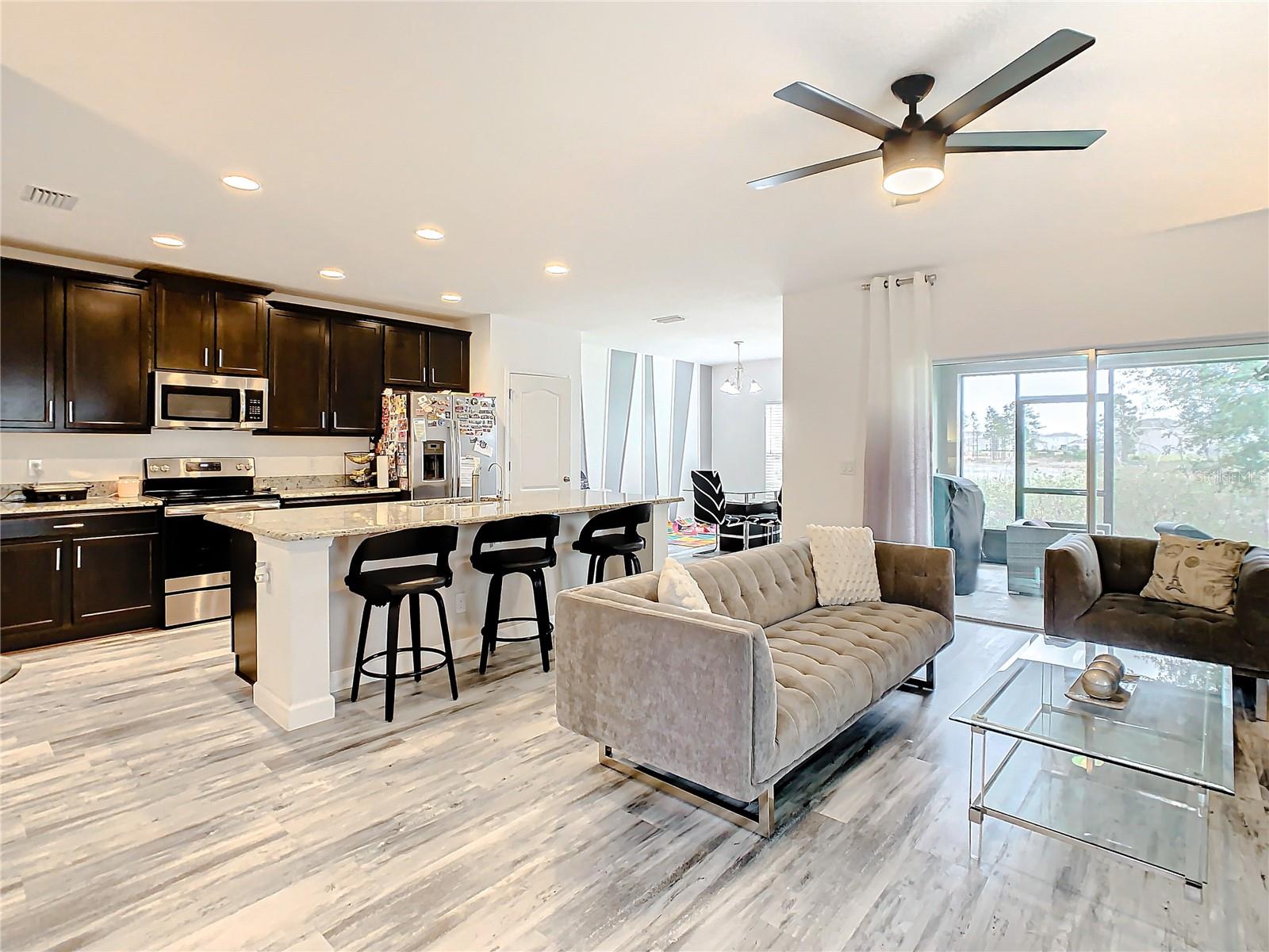 Step into luxury with this stunning corner-lot townhouse featuring 4 bedrooms and 3 full baths! The open layout boasts elegant tile floors throughout the first floor, while the kitchen shines with granite countertops, stainless steel appliances, and a convenient pantry. The master suite is a true retreat with a large rain shower and walk-in closet. Enjoy the spacious screened lanai with backyard access, perfect for relaxing or entertaining, backing onto a private conservation area. Located in a gated community with easy access to I-4, Champion Gate, and Reunion. SHORT-TERM RENTAL allowed! Don’t miss out—schedule your private showing today!