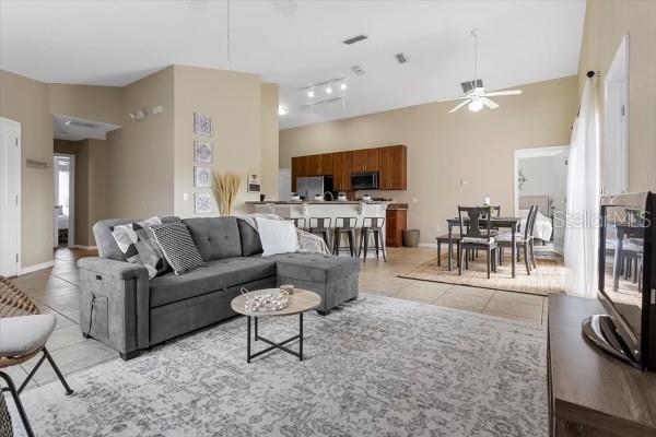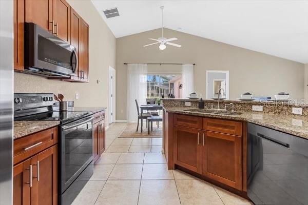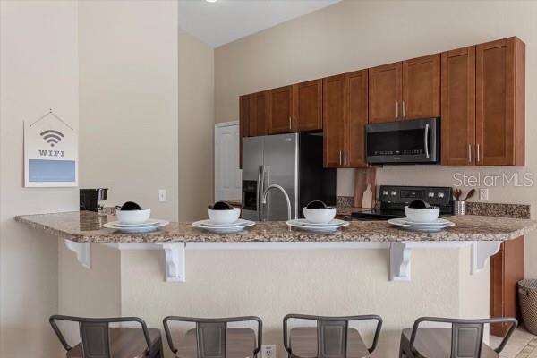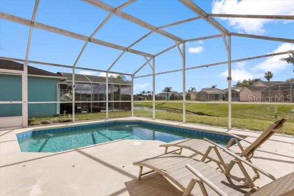 This successful short term rental is a 4 Bedroom 3 Bath pool home located in the desirable subdivision of Reserve at Town Center! This gated community is minutes away from Disney, major highways and Champions Gate with no CDD!! This home is fully furnished (2022) with an open floorplan including a heated, enclosed in-ground pool, 2 master suites, vaulted ceilings, ceramic tiles throughout the home with Luxury Vinyl plank flooring inside the bedrooms, a breakfast bar, kitchen with Samsung Appliances and upgraded wood Cabinetry with granite countertops! Samsung washer & dryer also included! The best feature of all is the HOA covers your basic cable, internet, trash, and landscaping! Perfect for Short Term Rentals, Airbnb or Vacation Home! Hurry, this home will not last long on the market! Call today for a private showing!