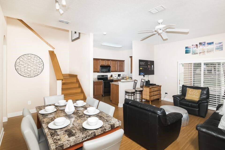 ** LOCATION AND LOCATION The best permanent or vacation home, or investment property only minutes away from Disney World. This amazing fully furnished 4-bedroom, 3-bathroom townhome is located in the gated Regal Palms Resort community. The home boasts beautiful laminate floors, stainless steel appliances, and elegant granite countertops. Regal Palms is an exclusive, private, and gated resort community just 15 minutes away from Disney World's main gate exits. The Tuscan Villa-style setting is comprised of 600 townhouse-style homes with a wide range of amenities that will cater to your every need. The centerpiece of the resort is the 2 1/2-acre tropical swimming pool and lazy river ,complete with heated pools, a water slide with waterfalls, and outdoor and indoor Jacuzzis. You can also take advantage of the sunbathing terraces, playground, and volleyball court with a poolside Restaurant with bar And More! Most of the year busy with tourists, please read the remarks…