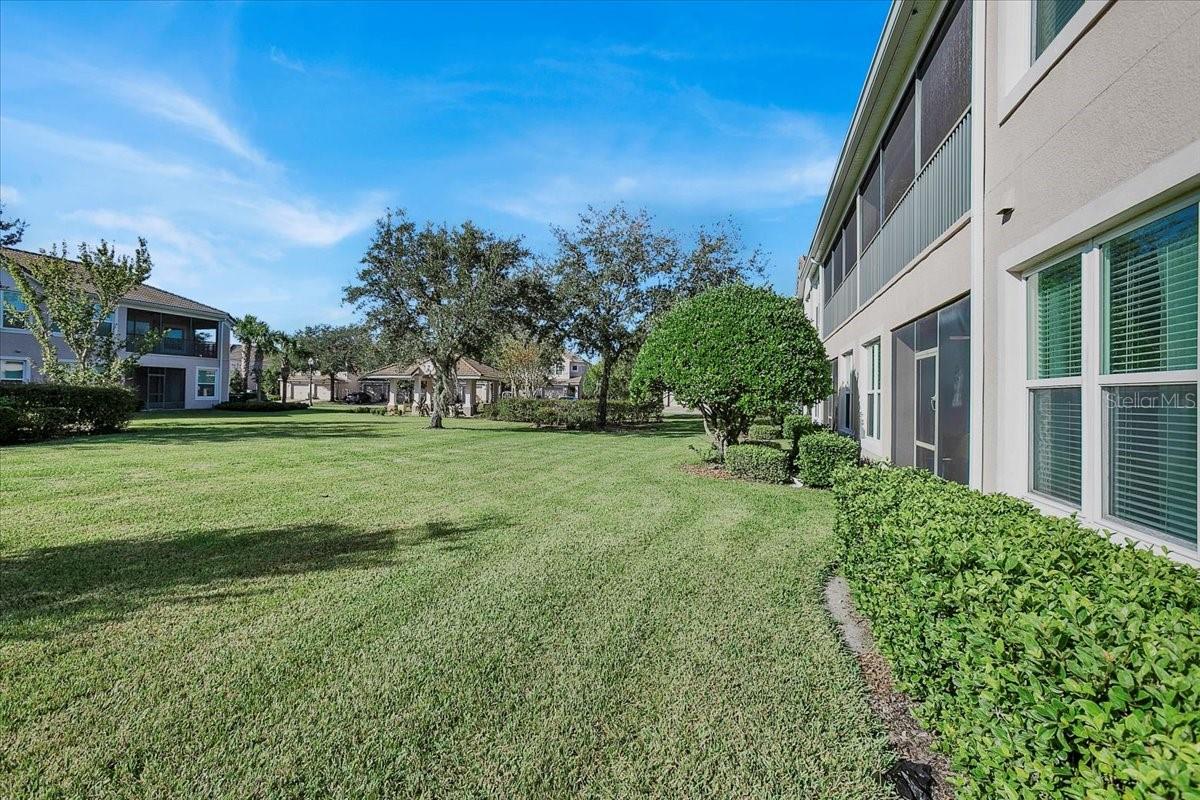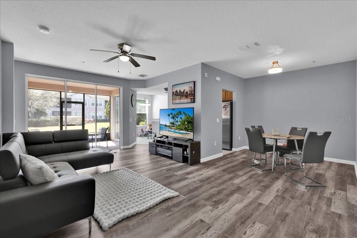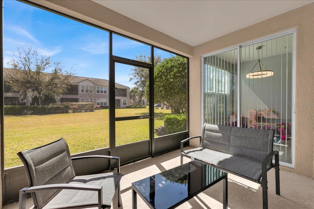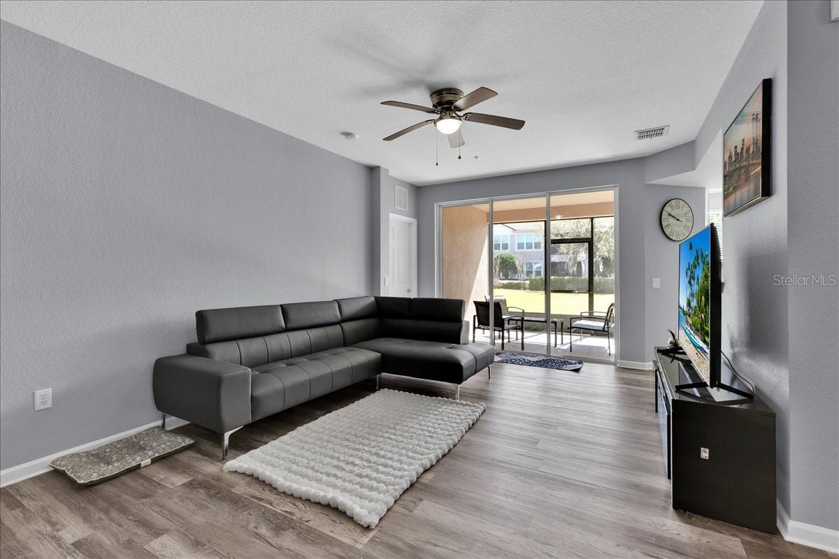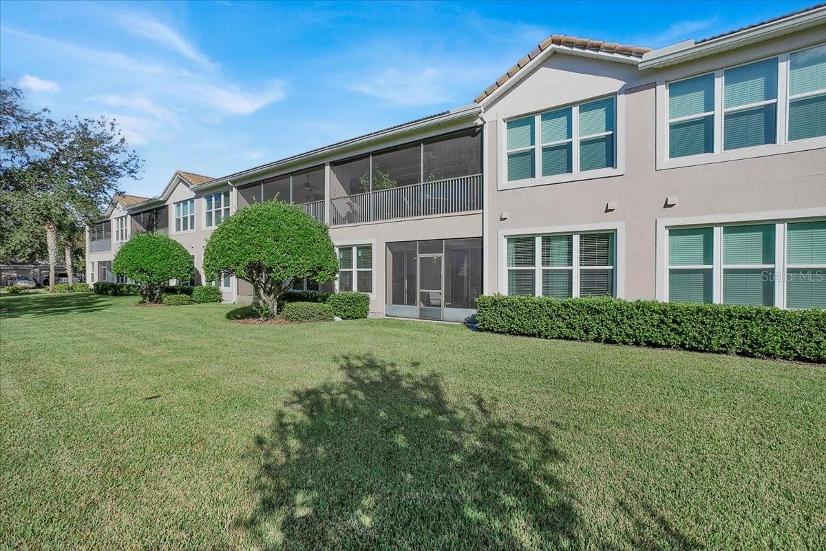 PRICE ADJUSTED! Seller Financing & closing cost contributions are available! Beautiful, first-floor condo in the stunning community of Bella Trae. This is a 2-bedroom, 2 bath, condo with a bonus room that can be used as bedroom number 3 or an office area, plus a garage for 1 vehicle. The layout offers a split floor plan with ample rooms for an open family area and dining areas. Enjoy the tranquil views of the patio areas from your screened-in lanai. The kitchen comes fully stocked with all appliances, and the laundry comes with a full-size washer & dryer. Laminate flooring was just installed in the entire property except the entrance, kitchen, and bathrooms, which are tiled, and there is carpet in the flex room. Your HOA dues include internet, cable, and pest control. The community of Bella Trae has a stunning clubhouse that includes a state-of-the-art fitness center, dance studio, zero-entry pool, media room, billiards room, bocce ball court, a putting green area, and so many social activities for all to enjoy. Conveniently located near shops, restaurants, golf courses, medical offices, the Omni Hotel, and so much more. Champions Gate is located between 2 international airports and just minutes to I-4, providing you with easy access to theme parks and surrounding cities. Resort-style living in the center of it all. Come see what a gem this property is!