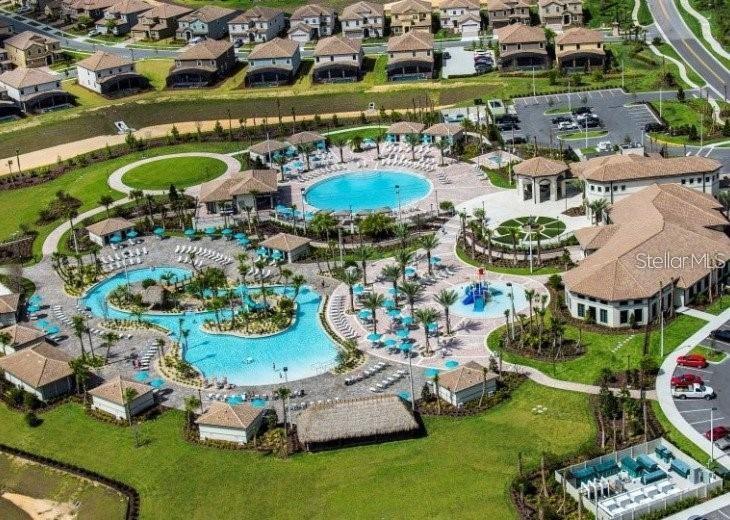INVESTORS!!!! It is a Fantastic , luxurious and fully furnished townhouse at the gated Golf Resort community of Champions Gate ,this popular townhouse Sabal floor plan, includes four bedrooms, three bathrooms, and a combination living and dinning room, perfect for entertaining. The kitchen overlooks the expansive covered patio with a beautiful in-ground pool for families to enjoy. One bedroom is downstairs and two more are located upstairs and also it is spacious owner suite on the second floor that includes an owner bathroom, completed with his and hers sinks and a bathtub/shower combination. Amenities will include: Lazy River, Water-slides, Swim-Up Bar, Water Falls, Beach Entry, Spa, Splash Pad, Grill, Bar, Fitness Area, Theater, Games Room, Tiki Bar and Cabanas. Simply relax by the pool, watch your family have the time of their life. All of these amenities plus use of seven tennis courts are INCLUDED in HOA.