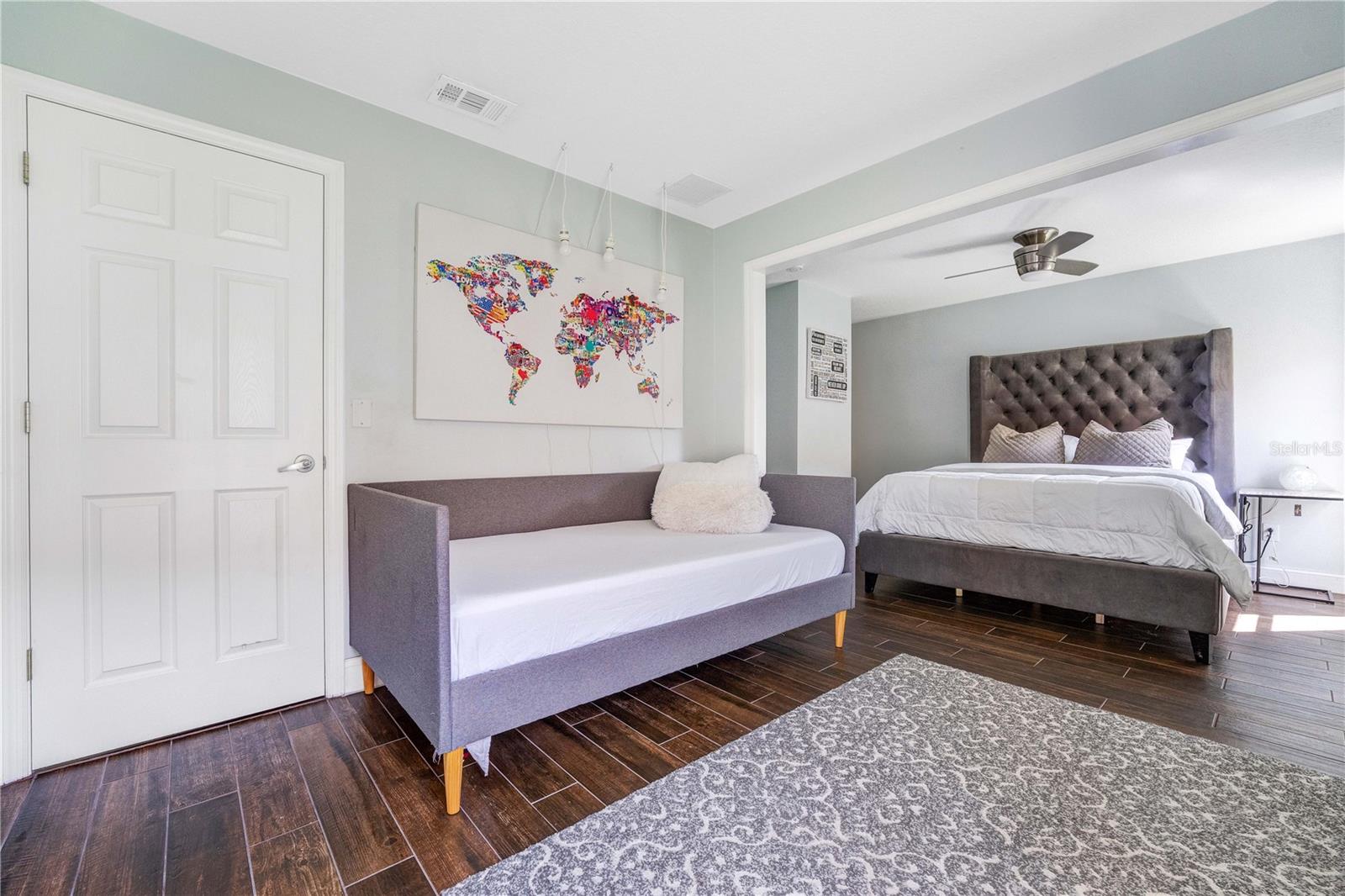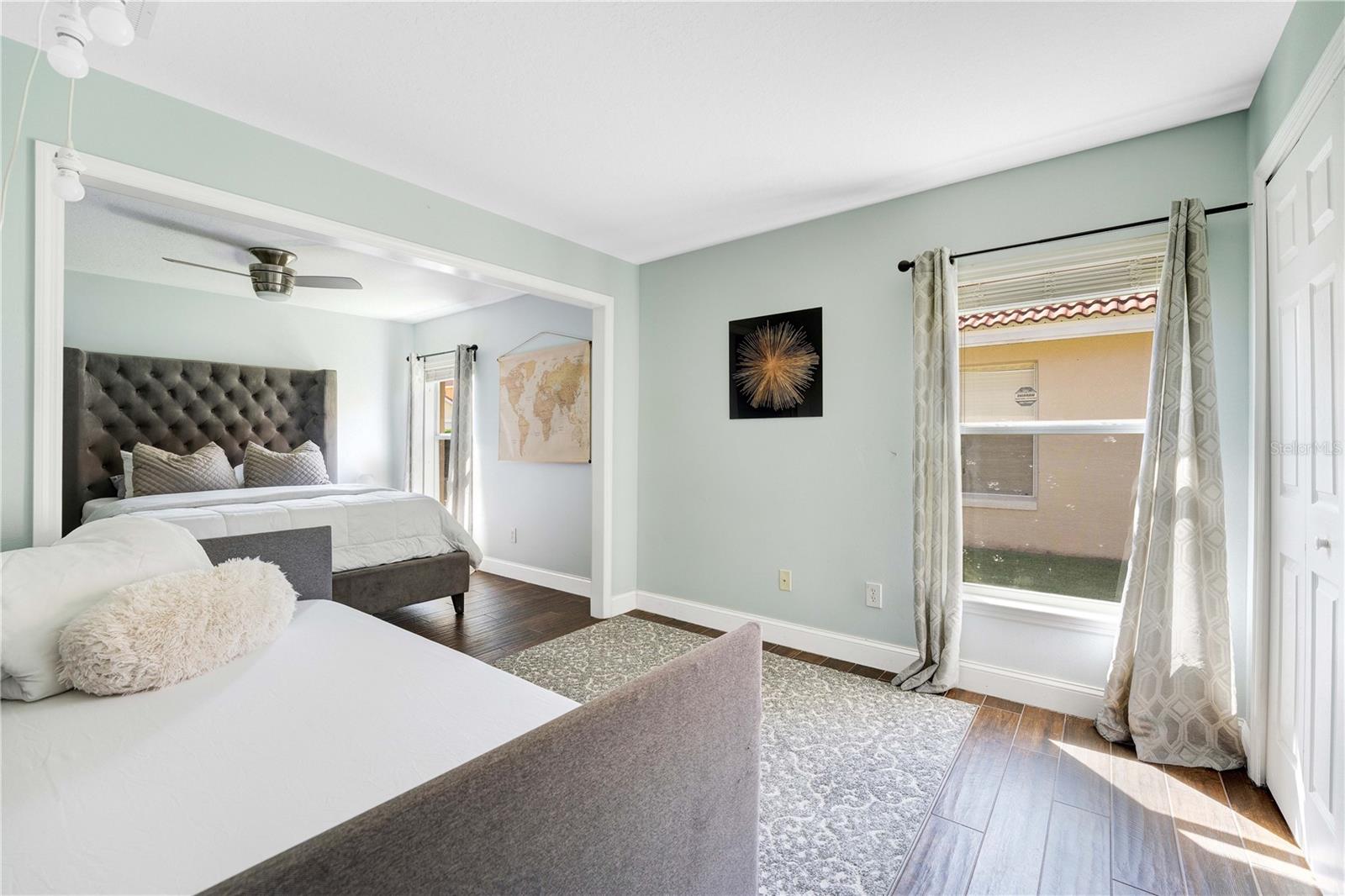 ***PRICED BELOW APPRAISAL! True four bedroom home, wall has been added to separate 3rd and 4th bedrooms***Welcome to Aviana Resort, nestled in the heart of Central Florida, with amenities, dining, shopping, and entertainment at your fingertips. Lush landscaping, a manicured lawn, and a Spanish tile roof welcome you as you pull into the driveway up to the double-car garage. Step inside to the well-dressed furnished home with a neutral palette and tile flooring found throughout. The open floor plan adds flexibility for larger families with a formal dining and living room at the front of the home, ideal for holiday gatherings. An updated kitchen features stainless steel appliances, a wine fridge, a closet pantry, a large farmhouse sink with granite counters, and a breakfast bar for quick bites. The cozy family room offers an abundance of natural light and provides access to the heated outdoor poolside screened lanai, ready for the next cannonball contest to cool off from the summer heat. Modern furniture offers plenty of seating under the oversized umbrella or sunshade. The spacious master suite features warm wood tile flooring in the bedroom with a custom-built master closet. The second bedroom is located off the family room, and a second full guest bathroom for convenient access. The third and fourth bedrooms offer a considerable amount of sleep space with one of these bedrooms featuring a private en-suite bathroom. The double car garage with a brand-new door houses the laundry facilities. It also has plenty of space to be converted into a media or game room! But what truly sets this property apart is its income-generating potential. Enjoy the flexibility of hosting visitors while earning substantial rental income. Whether you choose to make this your primary residence or continue its success as a short-term rental, this property offers endless possibilities. Enjoy year-round community amenities, including a playground area, sand volleyball, fitness center, clubhouse, heated zero-entry pool with sundeck, and a paved walking trail to walk the family dog or take a stroll during the cooler Florida evenings. The property includes a solar panel system that will drastically help lower the costs of the electric bills every month and increase the home's value!