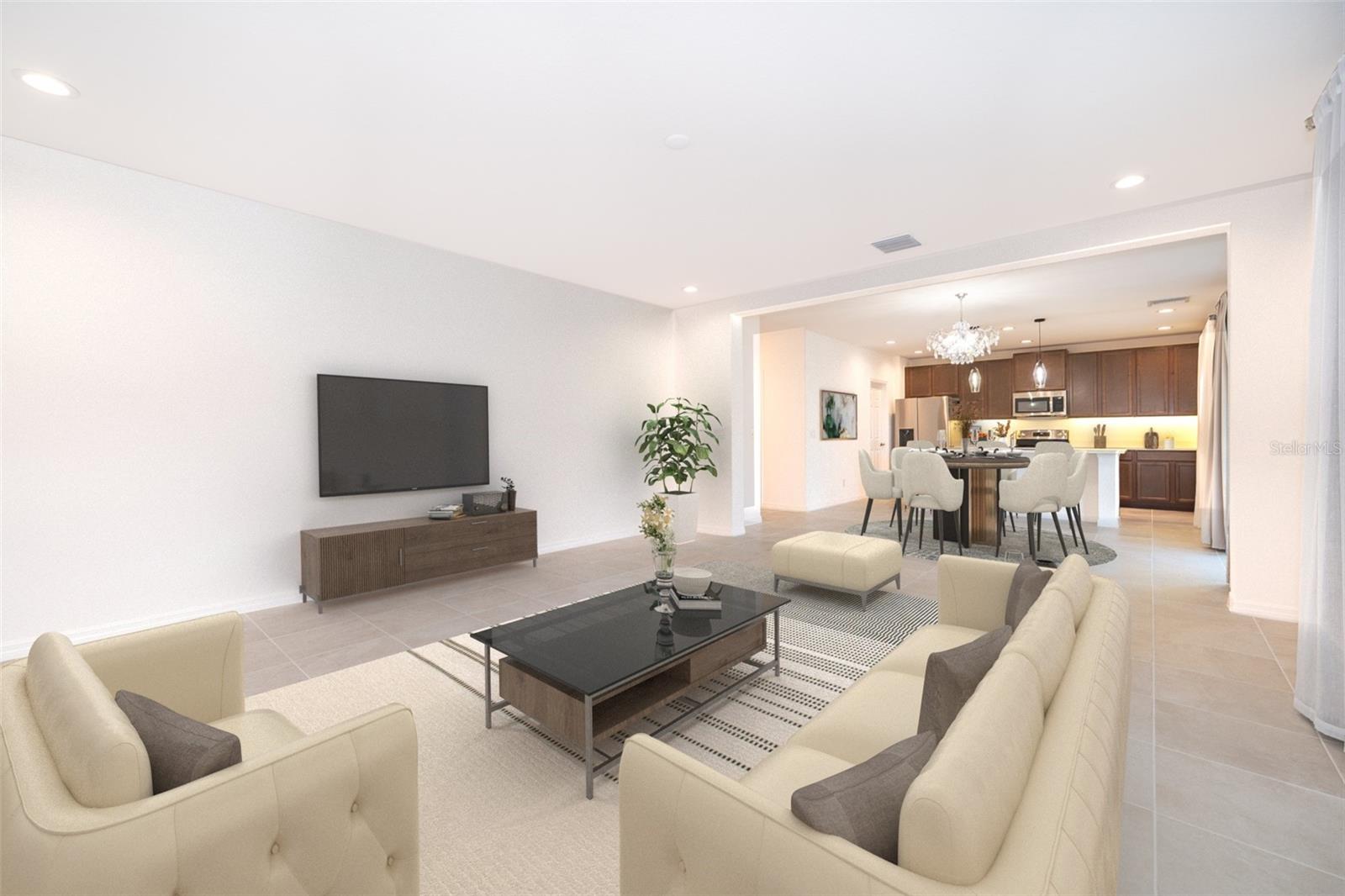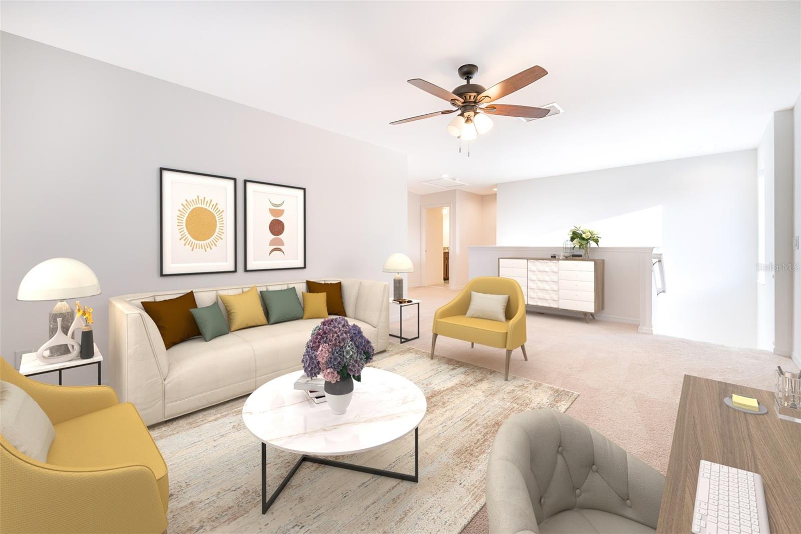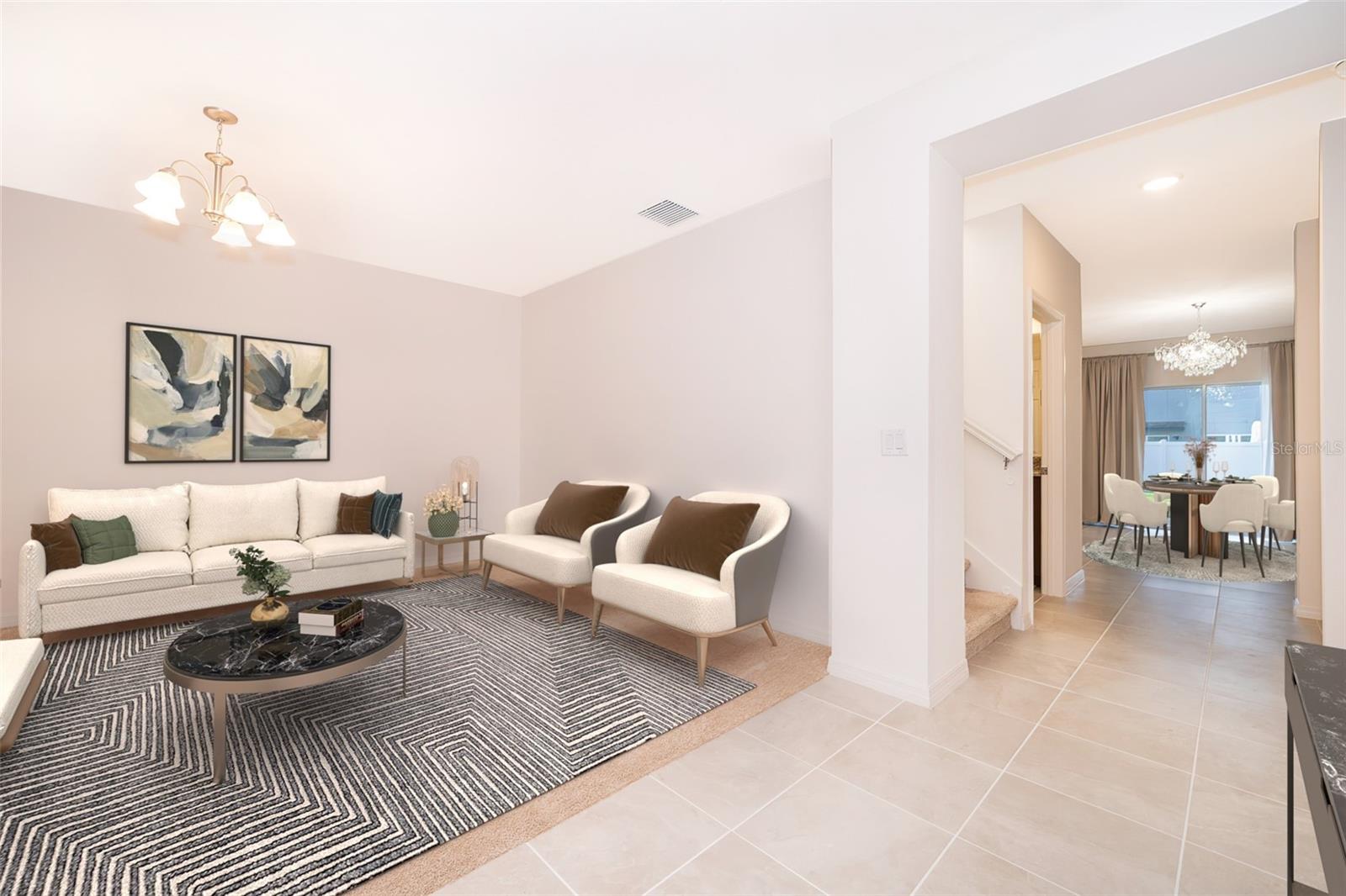 One or more photo(s) has been virtually staged. **** SELLER MOTIVATED **** Why wait to build when you can Pack your belongings and move right into this move in ready home! Discover this meticulously maintained 3-bedroom, 2.5-bathroom New Castle Floor Plan nestled in the gated community of Davenport Estates. Stepping inside, the first floor greats you with a traditional formal living area, that flows into the back of the home, where you'll find a spacious kitchen/ dining area, and family room overlooking the covered lanai. The kitchen is equipped with a huge kitchen island, quarts countertops, and stainless steel appliances. Sliding glass doors give easy access right off the kitchen for firing up the grill under the covered backyard patio. Upstairs, enjoy the luxurious primary suite with more than enough room for oversized furniture-overlooking the backyard, that leads right into the primary en suite. The sellers chose this luxury bath upgrade from the builder that boasts double sinks, walk in shower and separate soaking tub. Along with two great sized secondary bedrooms, you'll also find a roomy loft- perfect for a playroom, upstairs movie area, or game/study. Pavered Driveway, upgraded light fixtures, and ceiling fans in each room are all additional notable upgrades. With community amenities like a picnic area and playground nearby, this home offers the perfect blend of comfort and convenience. Don't miss out on this remarkable opportunity! Call/text to schedule your private tour today!