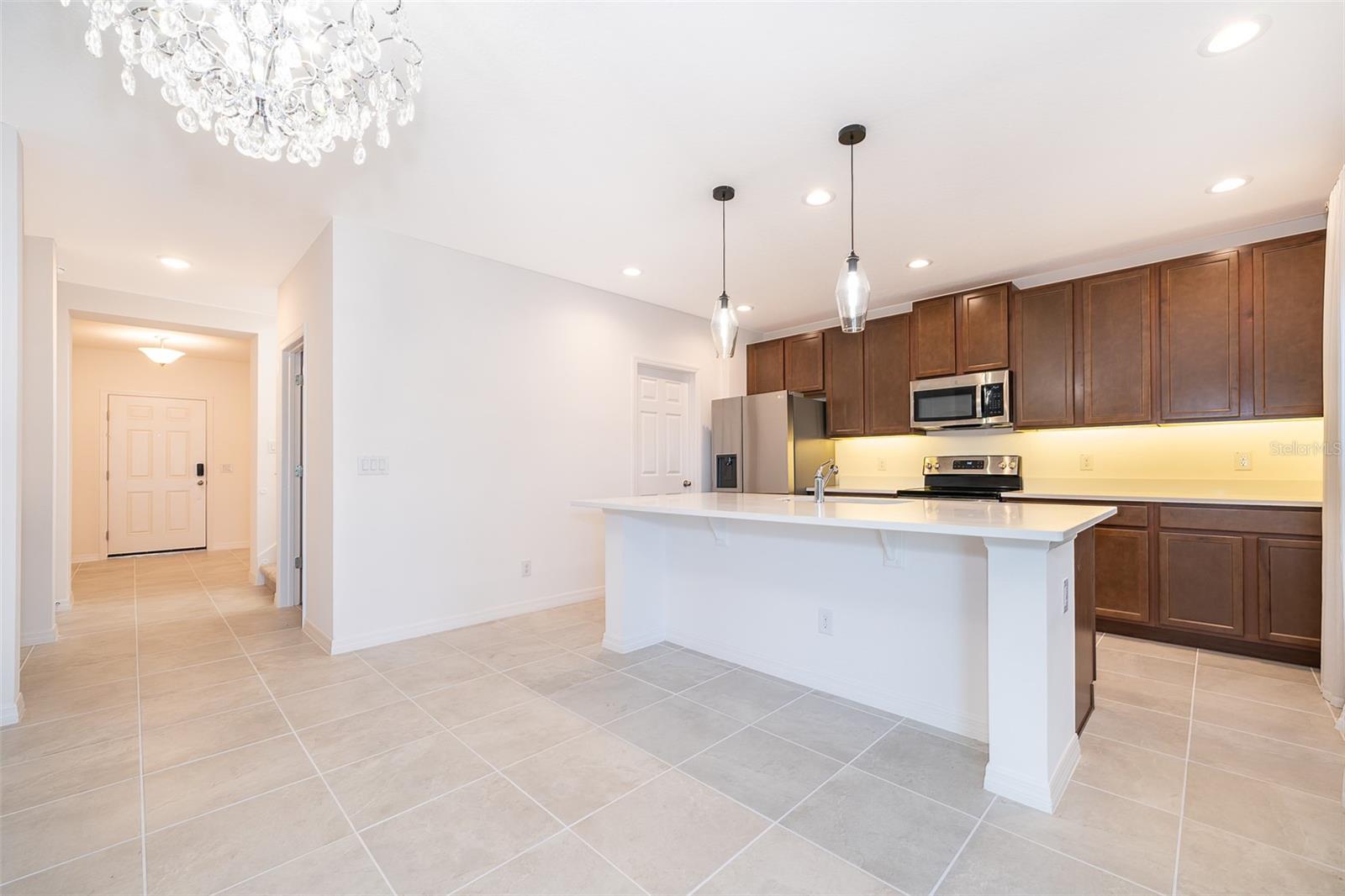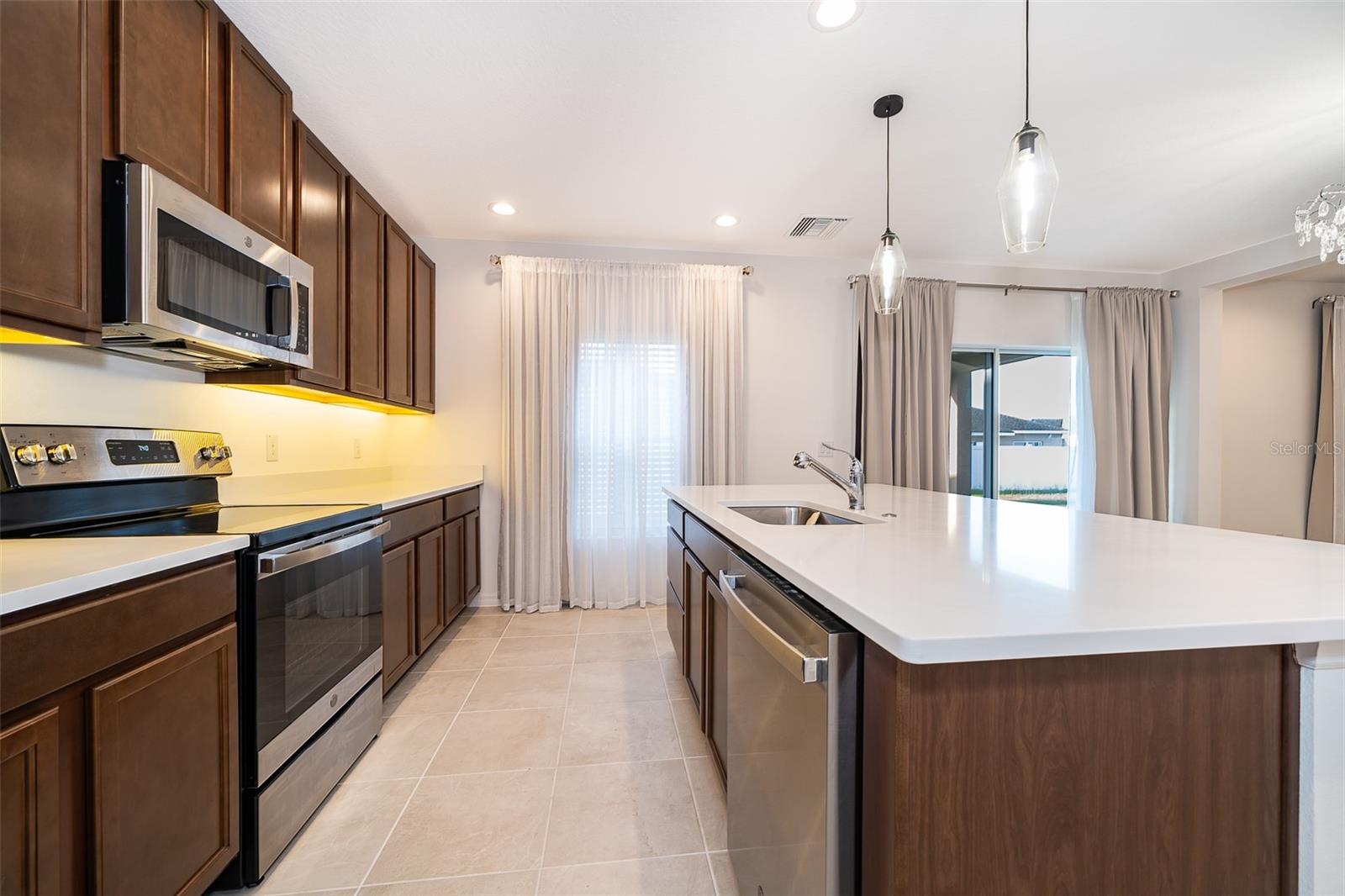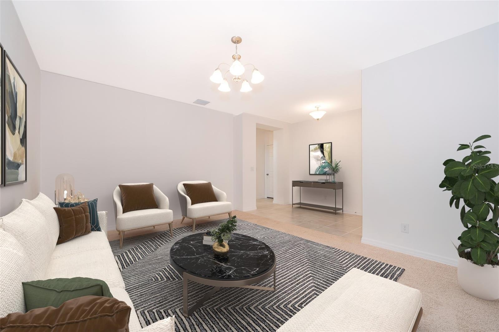 One or more photo(s) has been virtually staged. **** SELLER MOTIVATED **** Why wait to build when you can Pack your belongings and move right into this move in ready home! Discover this meticulously maintained 3-bedroom, 2.5-bathroom New Castle Floor Plan nestled in the gated community of Davenport Estates. Stepping inside, the first floor greats you with a traditional formal living area, that flows into the back of the home, where you'll find a spacious kitchen/ dining area, and family room overlooking the covered lanai. The kitchen is equipped with a huge kitchen island, quarts countertops, and stainless steel appliances. Sliding glass doors give easy access right off the kitchen for firing up the grill under the covered backyard patio. Upstairs, enjoy the luxurious primary suite with more than enough room for oversized furniture-overlooking the backyard, that leads right into the primary en suite. The sellers chose this luxury bath upgrade from the builder that boasts double sinks, walk in shower and separate soaking tub. Along with two great sized secondary bedrooms, you'll also find a roomy loft- perfect for a playroom, upstairs movie area, or game/study. Pavered Driveway, upgraded light fixtures, and ceiling fans in each room are all additional notable upgrades. With community amenities like a picnic area and playground nearby, this home offers the perfect blend of comfort and convenience. Don't miss out on this remarkable opportunity! Call/text to schedule your private tour today!