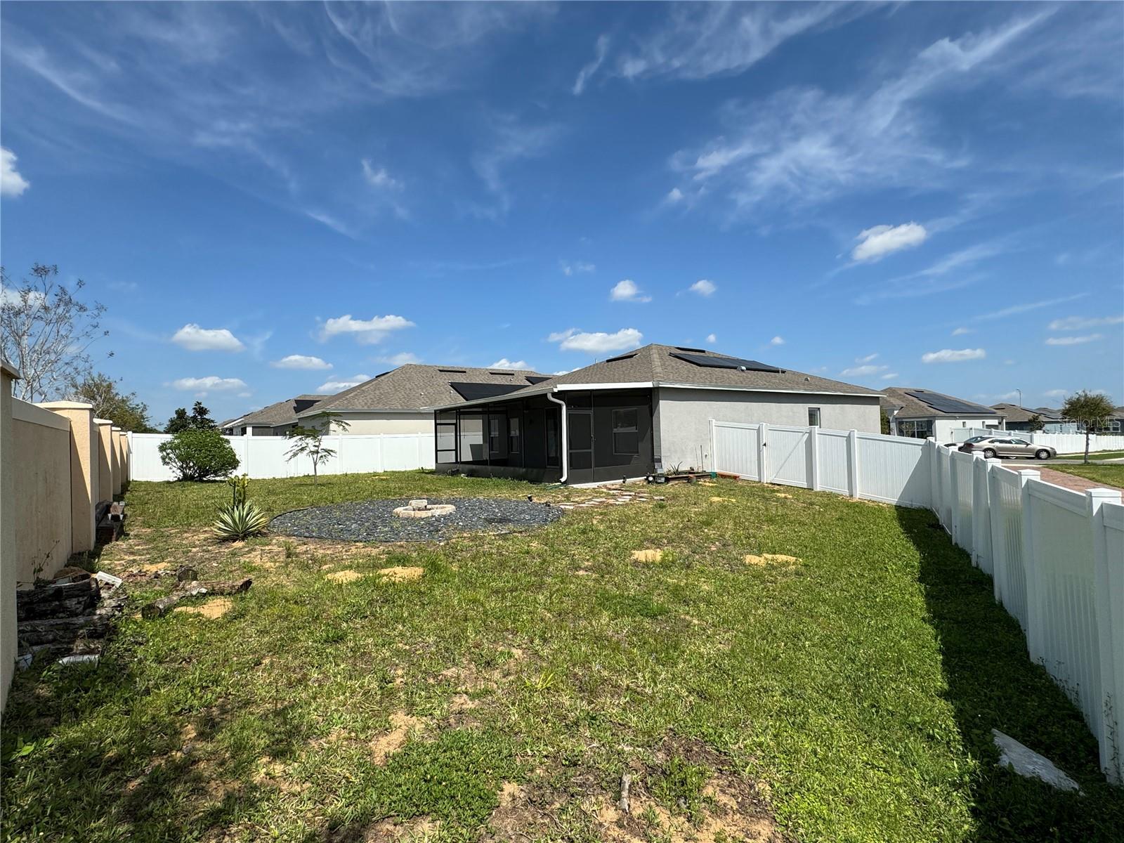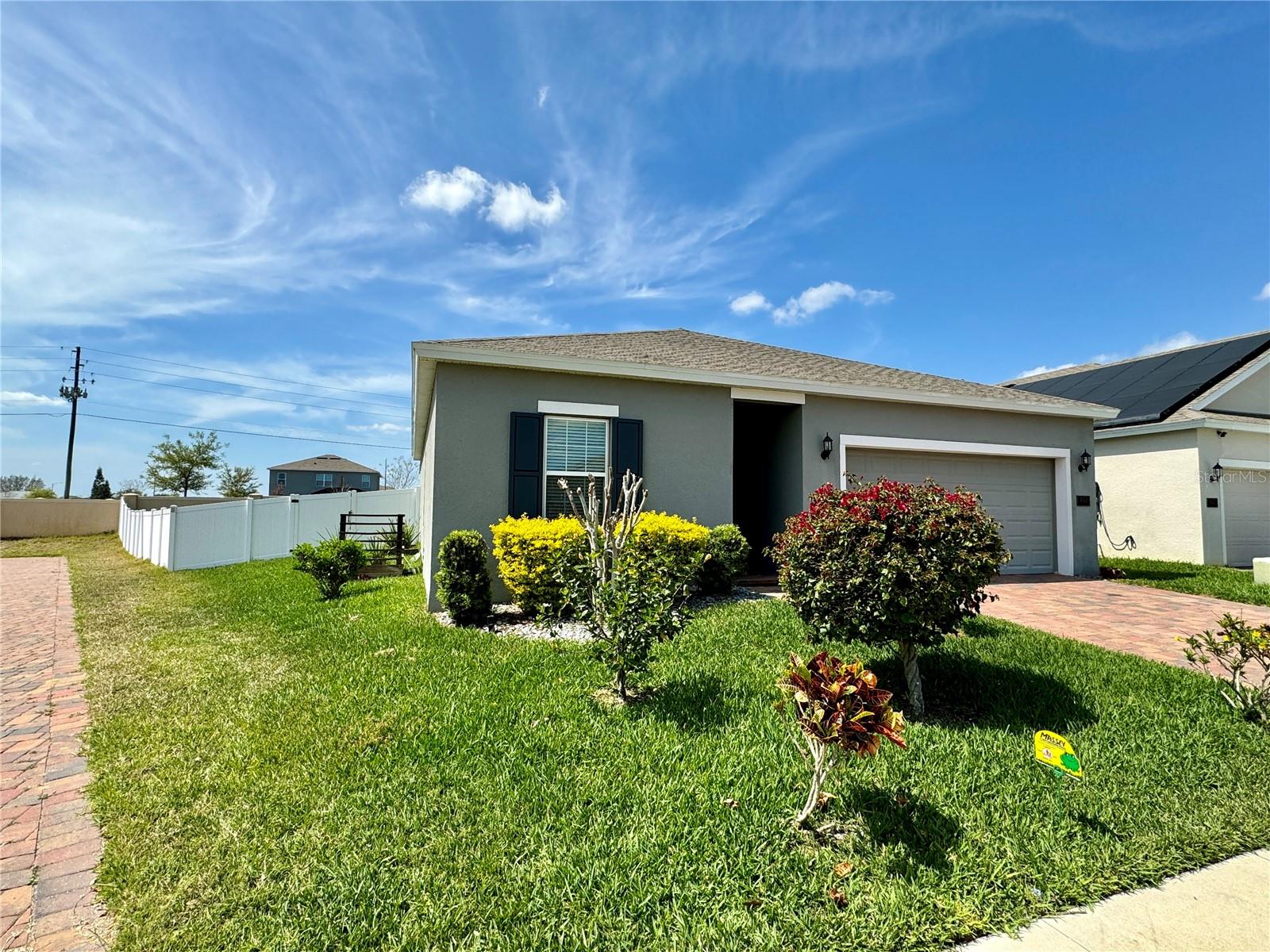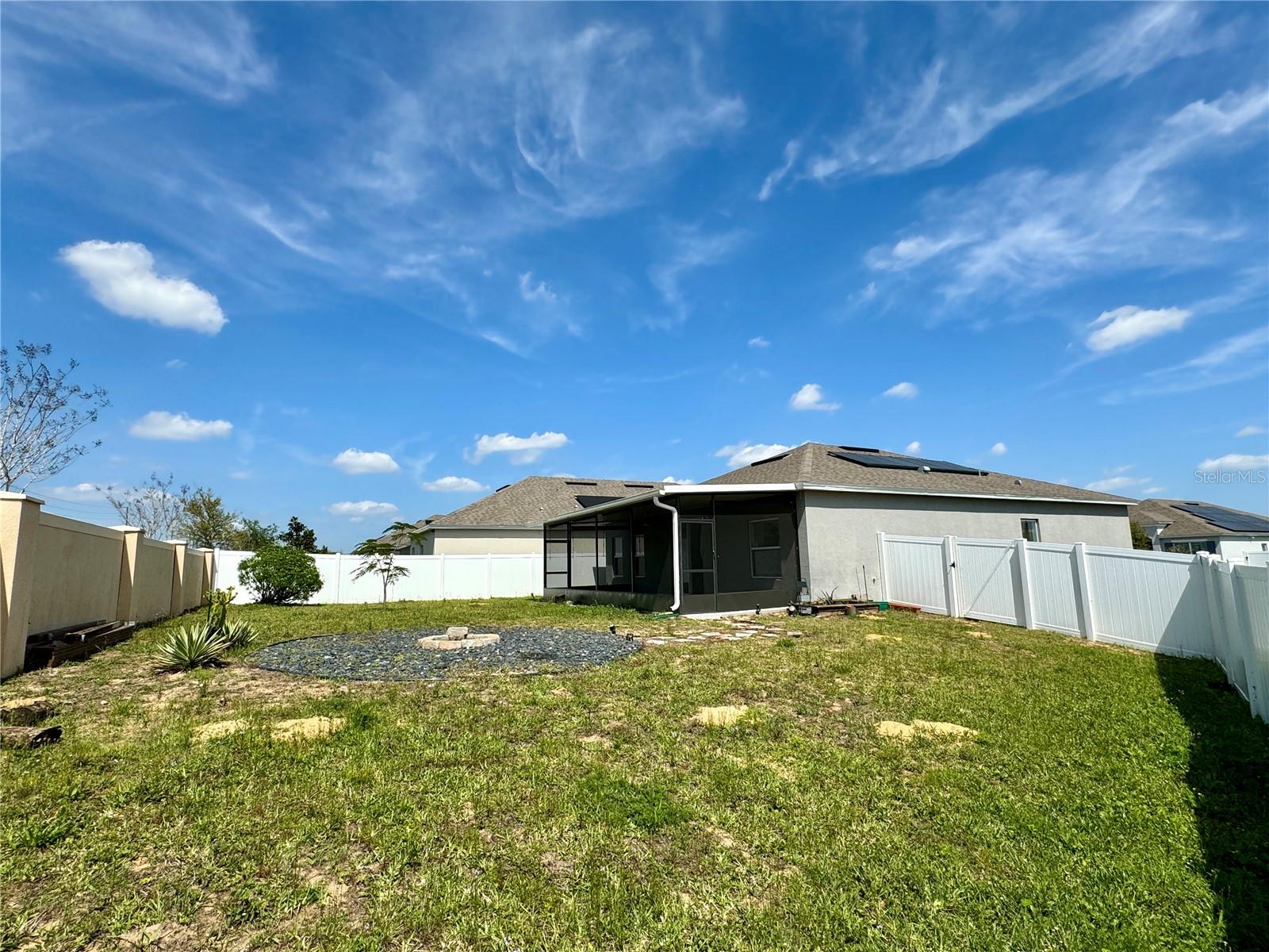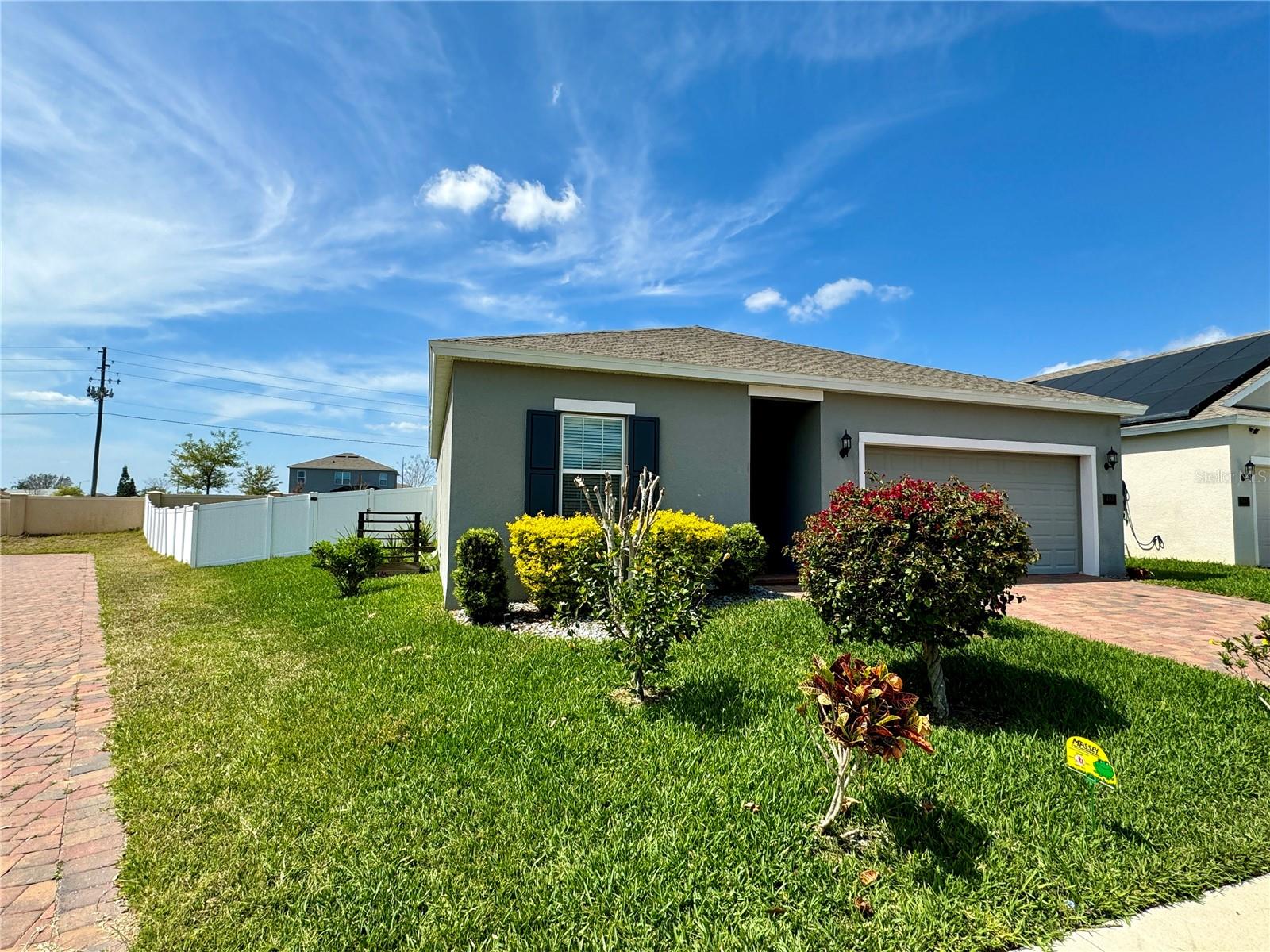 Price reduction!!!Wow!! THIS HOME QUALIFIES FOR 100% FINANCING WITH NO MORTGAGE INSURANCE!! Full Solar included in purchase price worth more than $60,000 today!! Welcome to this gorgeous single story home with an open Floor plan and high ceilings! This 3 bedroom 2 bathroom home has all of the comforts one would want in their sunny Florida home. The Kitchen is very large and is open to the Living and Dining area. The Living/family room is definitely large enough to have an epic game of duck-duck-goose, laser tag or twister with the gang! This gourmet kitchen has stainless steel appliances and 42" tall upper cabinets with a rich espresso wood cabinet. Be the envy of your friends in this home while entertaining in the enormous covered and screened rear lanai that is certainly large enough to host a large event or perhaps just have a glass of wine in the evenings or a nice cup of "Joe" in the morning. We haven't even discussed the gigantic back yard of this magical home!!! It's a corner lot with an oversized lot and comes with a beautiful decorative fire pit area to chill with friends and family and toast some hot dogs, kabobs or simply just sit in from of the fire on a cool night while enjoying an "Old Fashioned" Great community pool, park and playground. Solar! Solar!! Solar!!! Close to Disney Legoland Peppa Pig land and the parks, shopping and everything fun in Orlando. Don't miss out on this one....Ohhhh this home qualifies for 100% financing with zero mortgage insurance(saving hundreds each month) and a lower rate than the normal mortgage rates!
