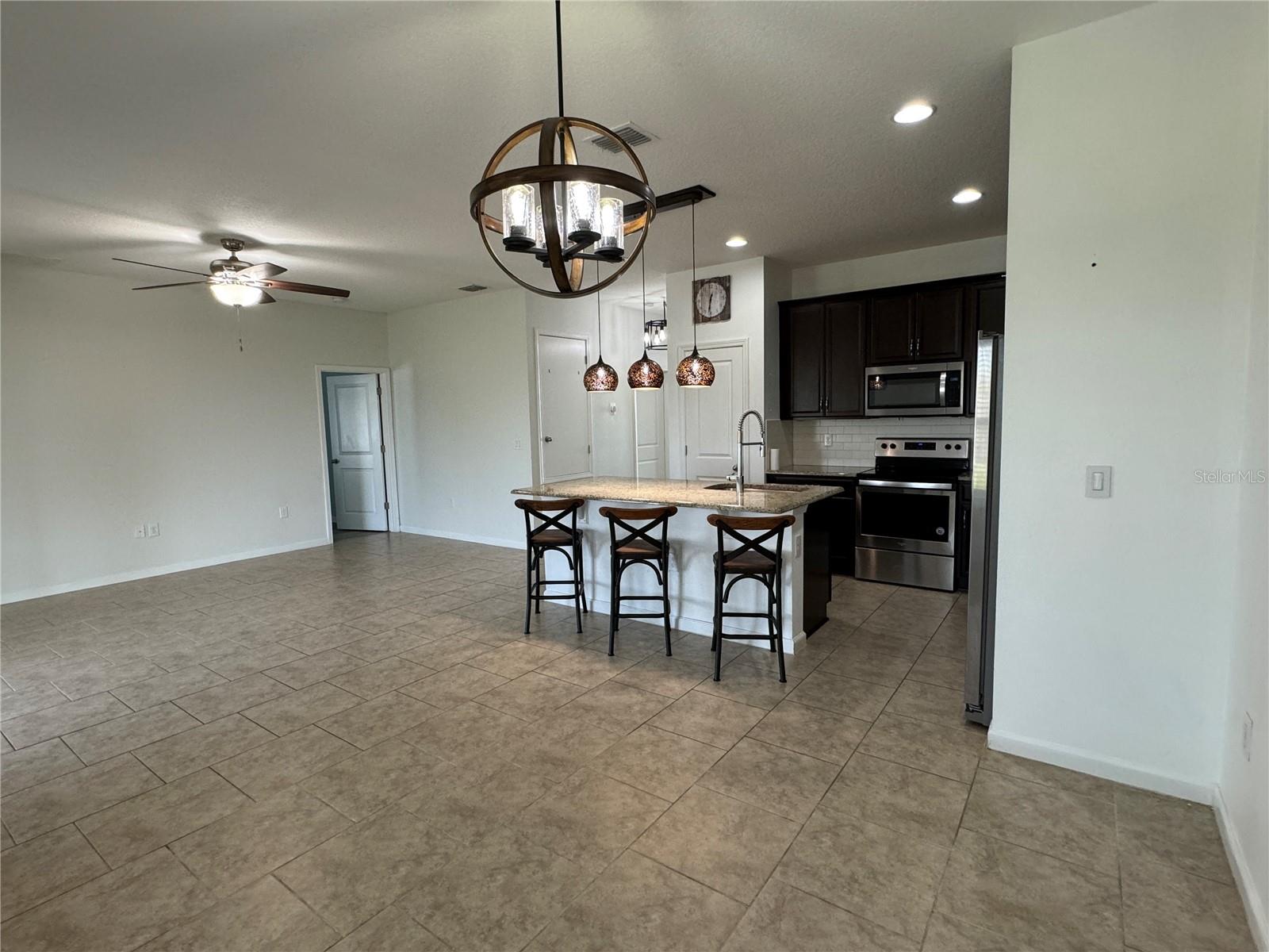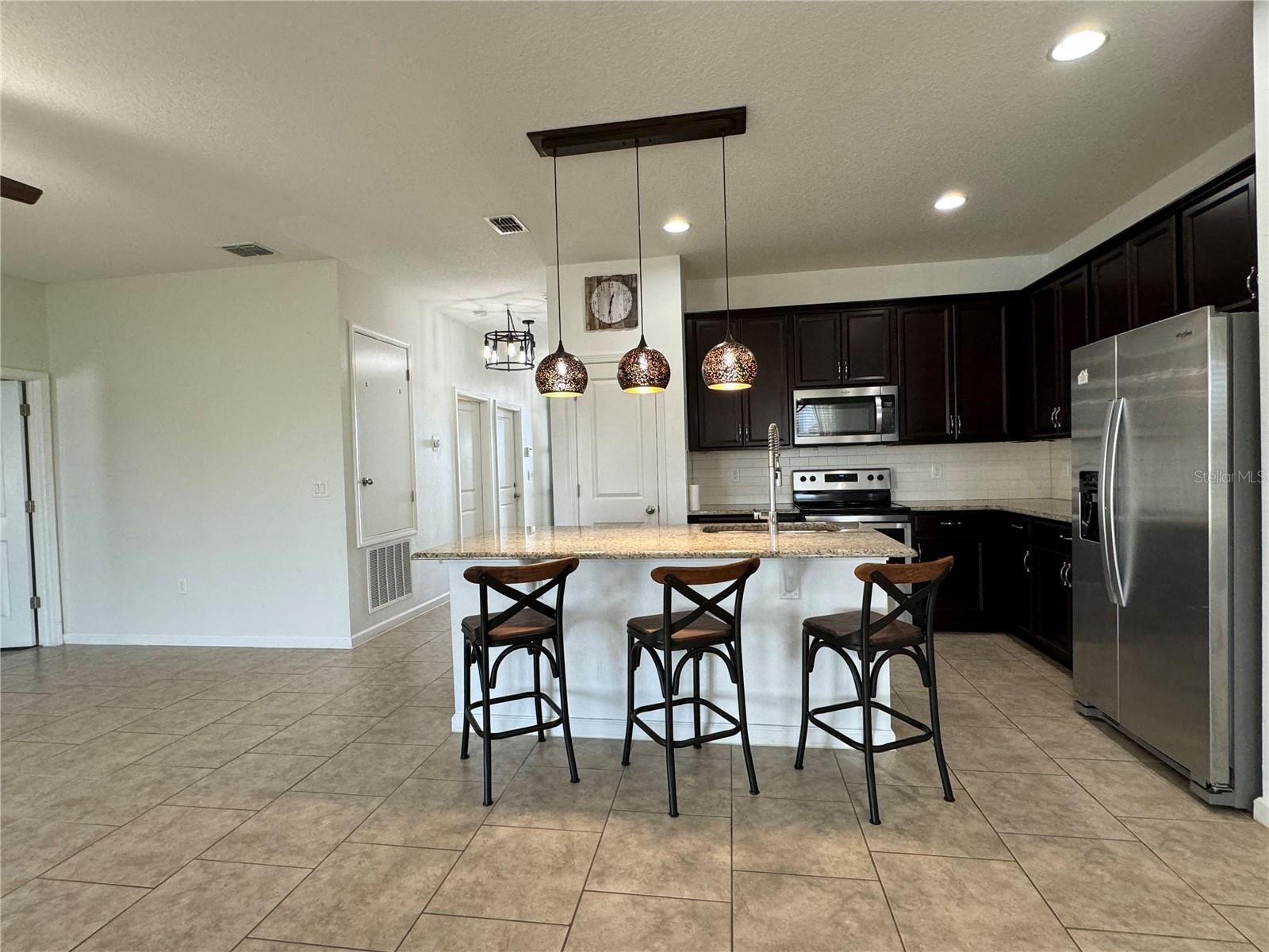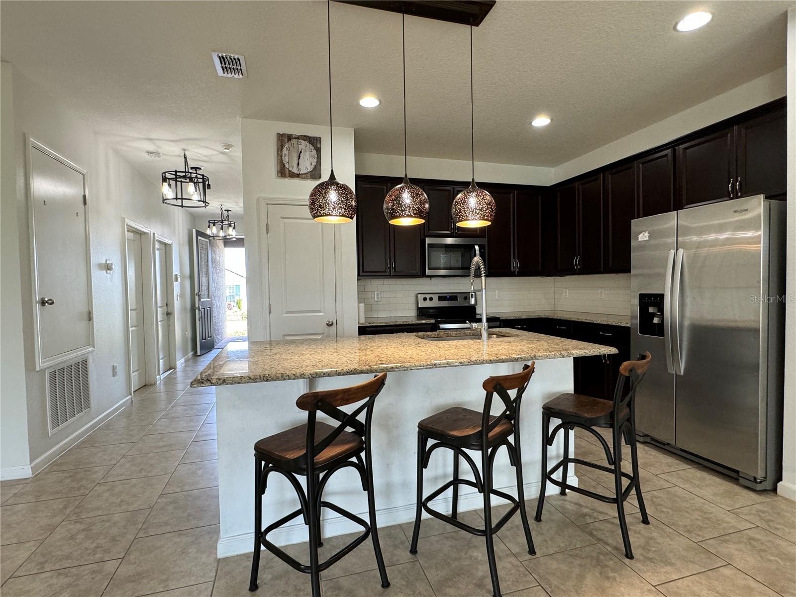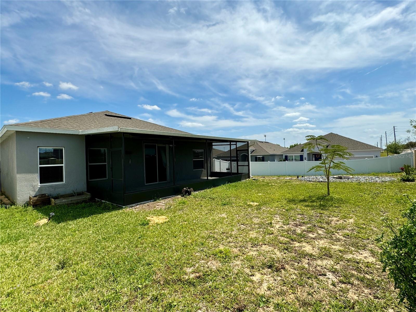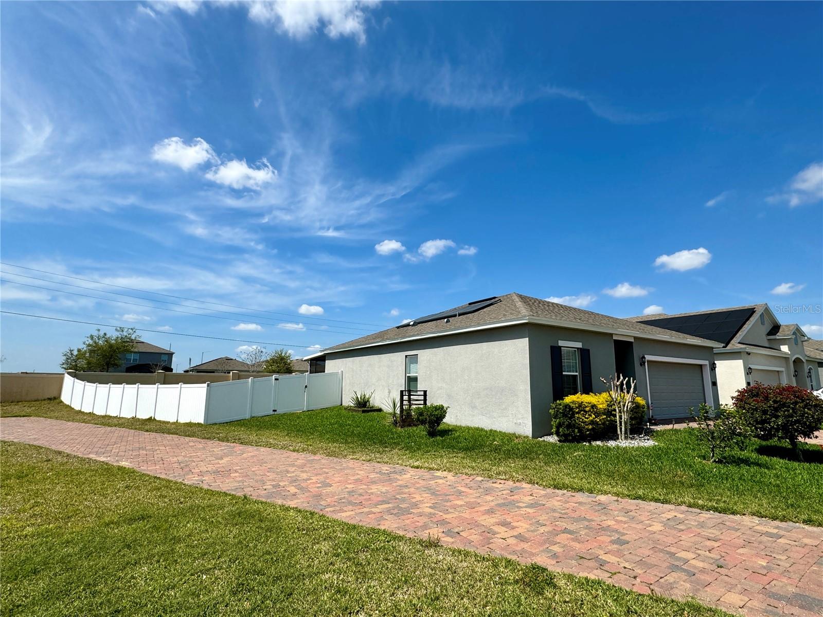 Price reduction!!!Wow!! THIS HOME QUALIFIES FOR 100% FINANCING WITH NO MORTGAGE INSURANCE!! Full Solar included in purchase price worth more than $60,000 today!! Welcome to this gorgeous single story home with an open Floor plan and high ceilings! This 3 bedroom 2 bathroom home has all of the comforts one would want in their sunny Florida home. The Kitchen is very large and is open to the Living and Dining area. The Living/family room is definitely large enough to have an epic game of duck-duck-goose, laser tag or twister with the gang! This gourmet kitchen has stainless steel appliances and 42" tall upper cabinets with a rich espresso wood cabinet. Be the envy of your friends in this home while entertaining in the enormous covered and screened rear lanai that is certainly large enough to host a large event or perhaps just have a glass of wine in the evenings or a nice cup of "Joe" in the morning. We haven't even discussed the gigantic back yard of this magical home!!! It's a corner lot with an oversized lot and comes with a beautiful decorative fire pit area to chill with friends and family and toast some hot dogs, kabobs or simply just sit in from of the fire on a cool night while enjoying an "Old Fashioned" Great community pool, park and playground. Solar! Solar!! Solar!!! Close to Disney Legoland Peppa Pig land and the parks, shopping and everything fun in Orlando. Don't miss out on this one....Ohhhh this home qualifies for 100% financing with zero mortgage insurance(saving hundreds each month) and a lower rate than the normal mortgage rates!