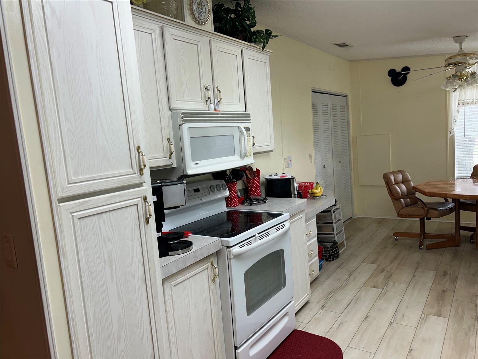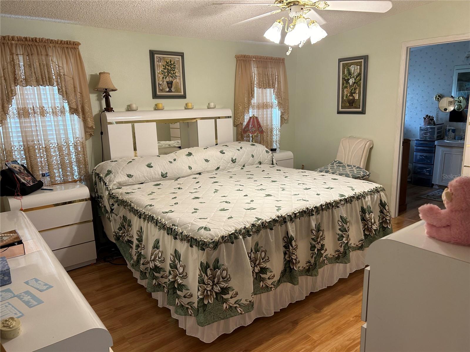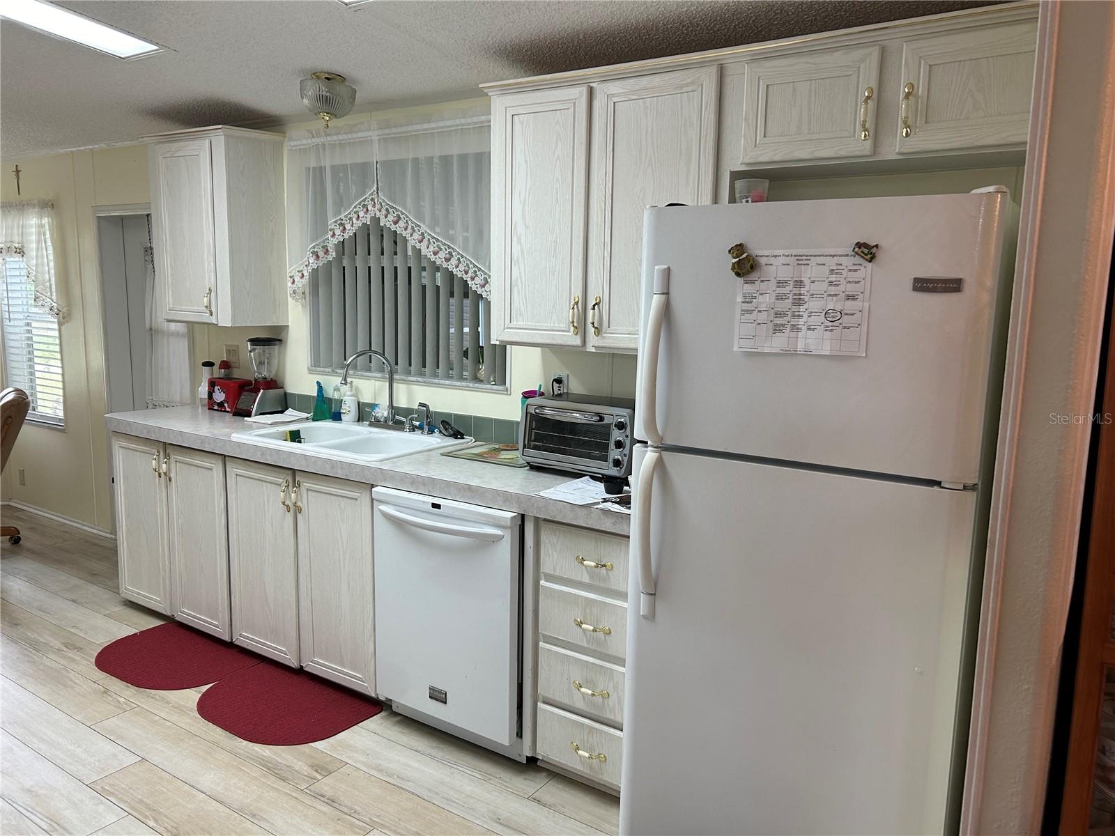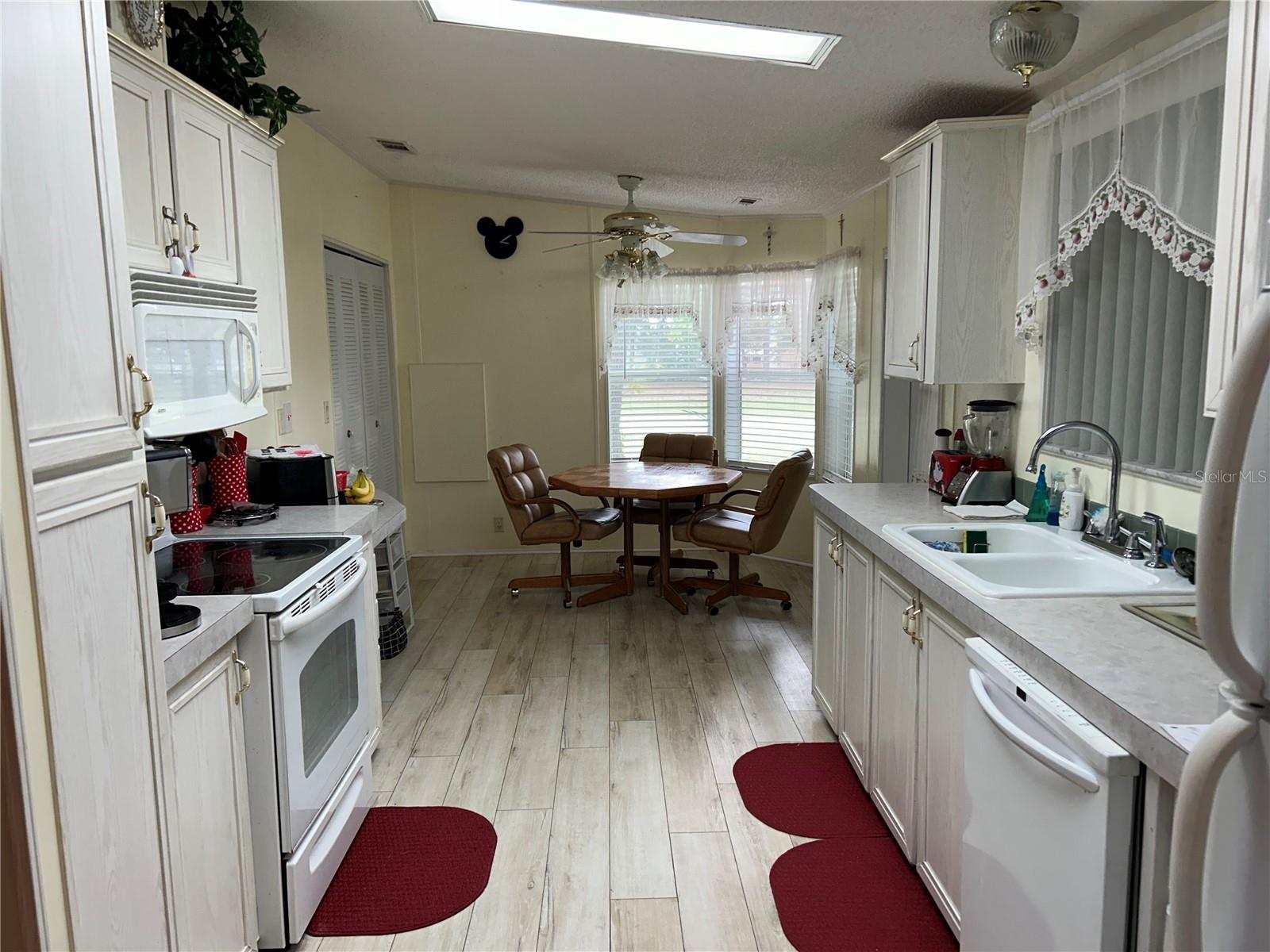Park East is an age 55+ Resident Owned Cooperative (Co-op) Community. The price of the home includes 1 share of the community ownership valued at $56,400). When you are a shareholder there is no lot rent to pay. The HOA fee for this property is $232.00 every month which includes Lawn Cutting and Edging, DIRECTV STREAM Cable and Frontier Fiber Optic High Speed WIFI. The clubhouse features an exercise room, library, billiard room and large hall with full kitchen (available to rent for private parties) where loads of community activities take place including Bingo half the year on Thursday nights and community holiday parties. Golf carts ok in community to drive on roads. Come live in this well sought after community and also enjoy the beautiful picturesque lakefront with 2 boat docks and picnic area. Executive public 9 hole golf course surrounds this beautiful community. Incredible picturesque lakefront with picnic area ,bbq's and firepit private boat ramp docks and fishing pier. Pool area with lounges, heated pool with relaxing spa. 15 minutes to Disney property. 3 bedrooms 2 baths 1539 sqft. double wide manufactured home on the Golf Course. New 1 year old roof, a/c unit 2021. Very spacious 3br 2 bath with open lr/dr combo. Large living room with sky windows. Laminate flooring throughout with exception to the kitchen that features luxury vinyl tile flooring. washer ? dryer closet inside home. The lanai looks over beautiful fairway. Home will come partially furnished.