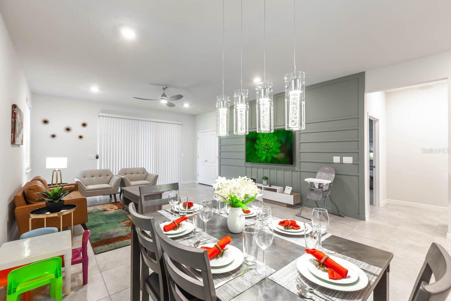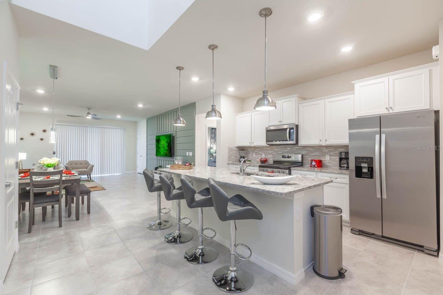 Welcome home to this FULLY FURNISHED 6 bedrooms and 5 bathrooms in the desirable Solterra Resort! Airbnb and rentals also an option. Each room is uniquely decorated to the smallest details. The kitchen is fully equipped with high end stainless steel appliances and granite countertops. The open concept living space boasts title flooring that leads to the sliding doors opening to the beautiful pool. As a resident of the Solterra Resort, you'll have access to an array of resort amenities, including a sparkling pool with a lazy river, gym facilities, a snack bar, and a shop. You'll also be conveniently located near all local attractions such as Disney, Universal, local parks, shopping plazas, and restaurants.