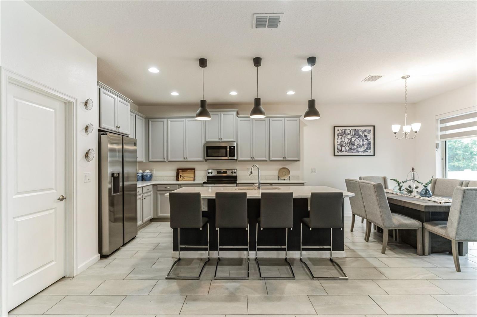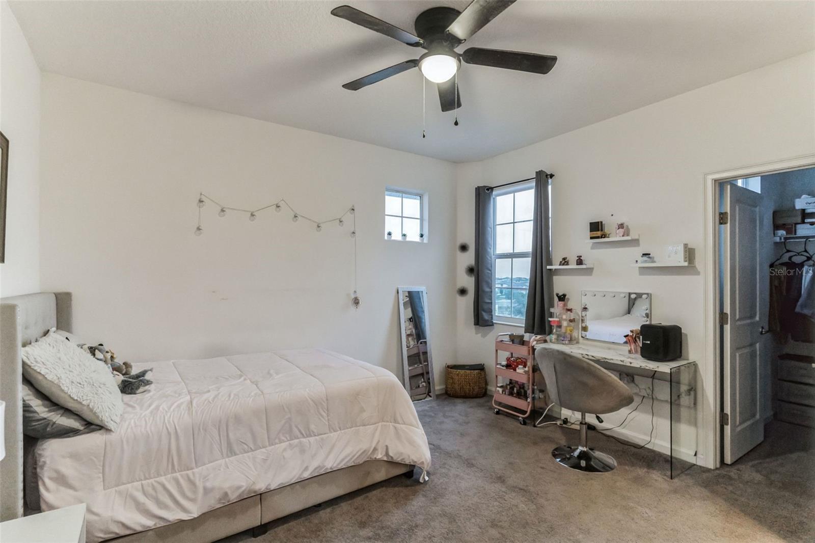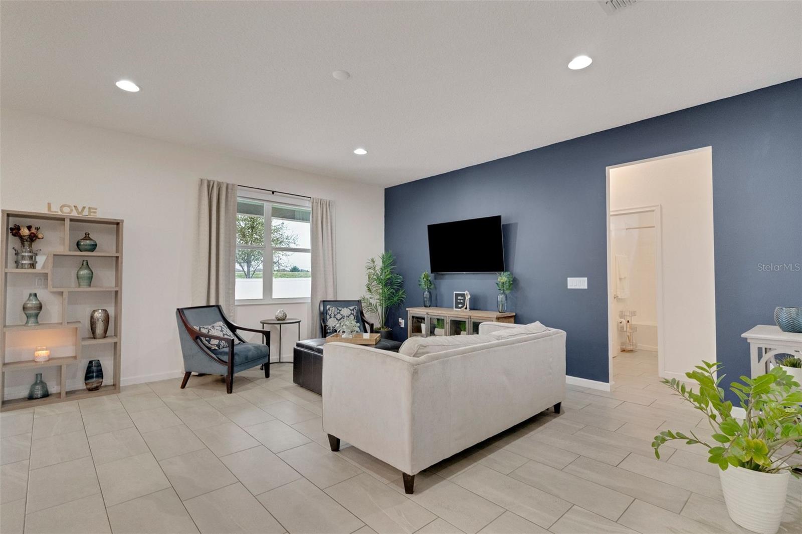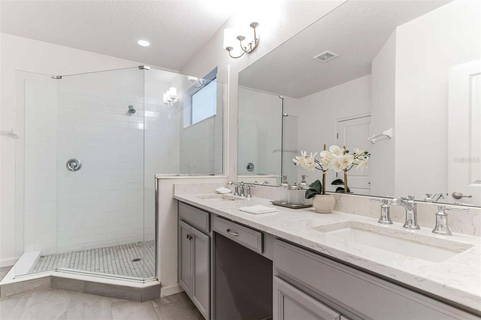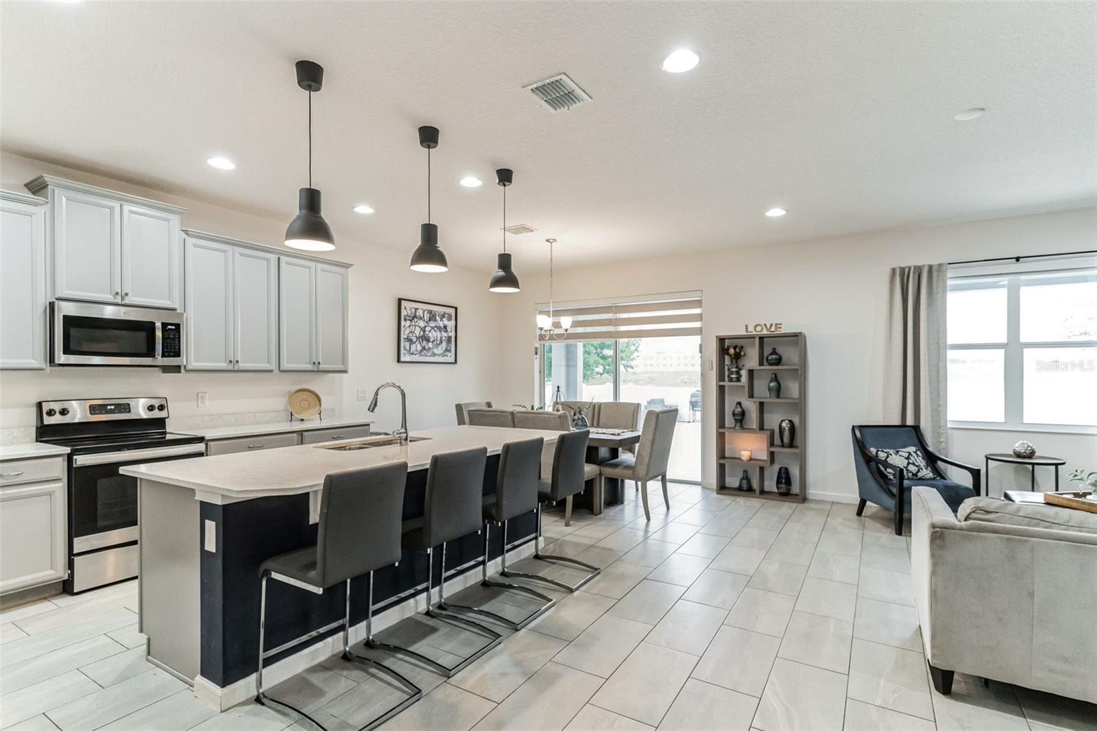 **Don't forget to immerse yourself in the 3D tour** Walk into one of the most beautiful pool homes in the area!. This spacious, bright and open Wellington model was built by Park Square homes just a few years ago. The home features: a tandem 3 car garage with luxury vinyl waterproof plank flooring, upgraded flooring throughout the entire first story including in the well appointed downstairs guest bedroom, there is a downstairs office, upgraded quartz countertops in the kitchen that features a large island and stainless steel appliances, there is also quartz in all bathrooms, upgraded fixtures throughout, a downstairs laundry room with a convenient laundry chute on the second story, a huge upstairs loft space/game room, plus four large bedrooms; the master bedroom is very spacious with a large walk-in closet and a smaller closet as well, and the master bathroom features double sinks with large shower. Other features include upgraded network panel for POE surveillance system in the master bedroom and a panel for fiber optic cable and modem in the laundry room, home theater surround system inputs and surround sound pre wiring in the ceiling of upstairs game room. In 2022 the 16x29 custom pool was added, for you to enjoy the FL sun in, it features the lagoon dark pebble tec finish, a sundeck with bubblers, multi color lights, a huge travertine deck plus pavers extension surrounds the pool, all completely fenced in and private with no rear neighbors. The landscaping has been professionally done with mature landscaping and an automatic irrigation system, the drive way pavers have been extended to go around the home. This home has everything you could ever need and wish for in Florida. It is located in the Golden Ridge community which is in desirable Davenport, just about 20 minutes away from Disney and about 30 minutes away from Legoland, but also conveniently located between Tampa and Orlando; there is shopping, dining, entertainment, hospitals, golf, etc. just a few minutes away. There is an easement between this property and the land behind which is privately owned is zoned as conservation/citrus grove as of right now. https://HomeJab.vr-360-tour.com/e/dFoBjlcRdQI/e Bedroom Closet Type: Walk-in Closet (Primary Bedroom).
