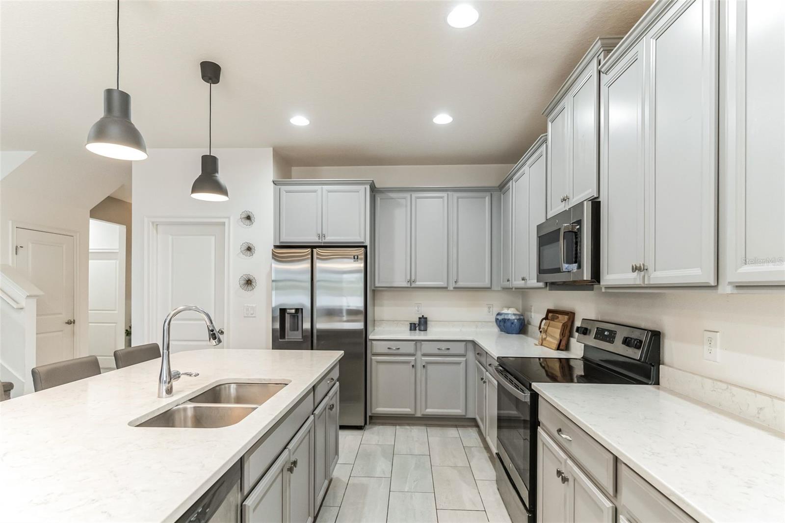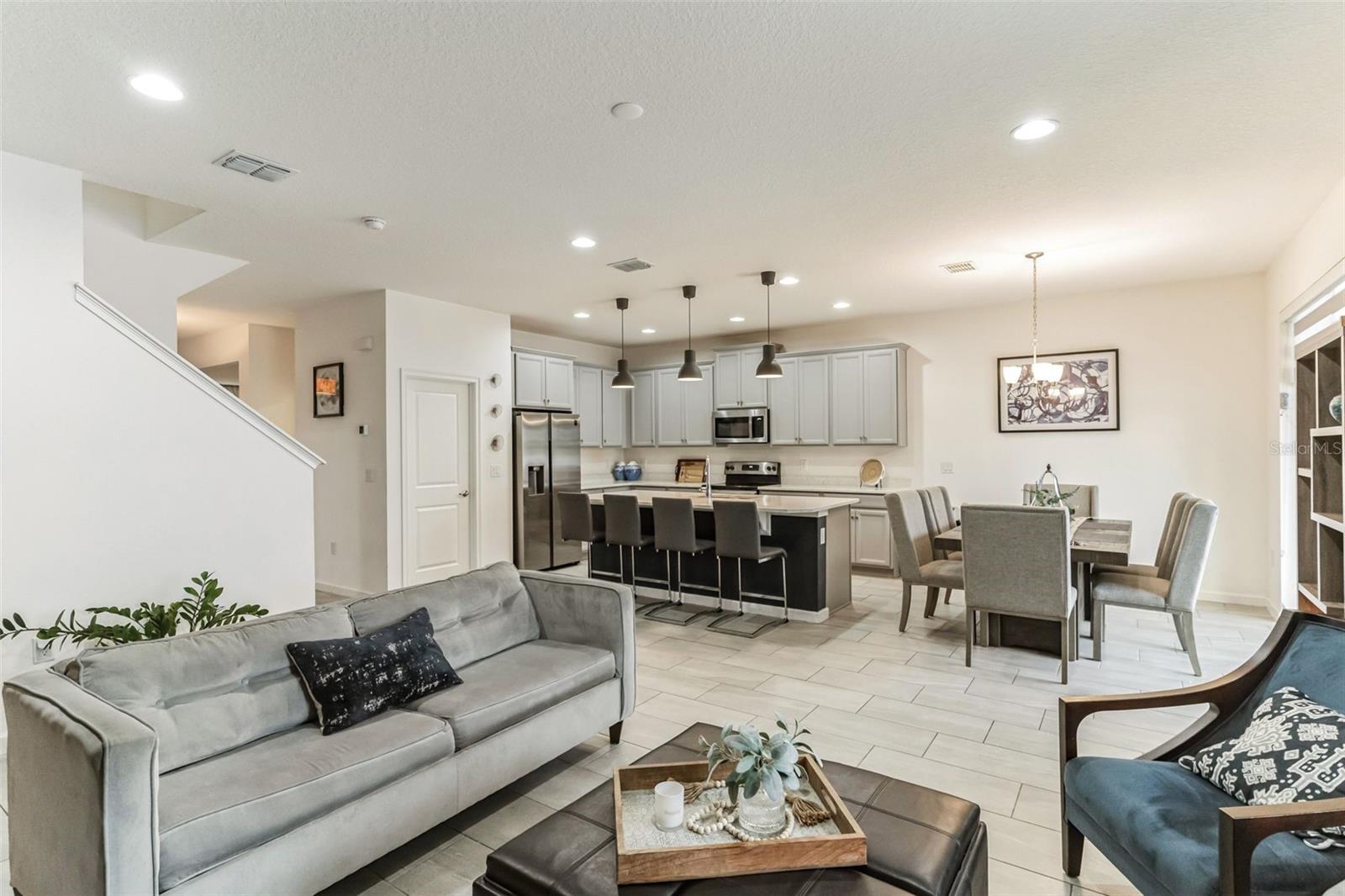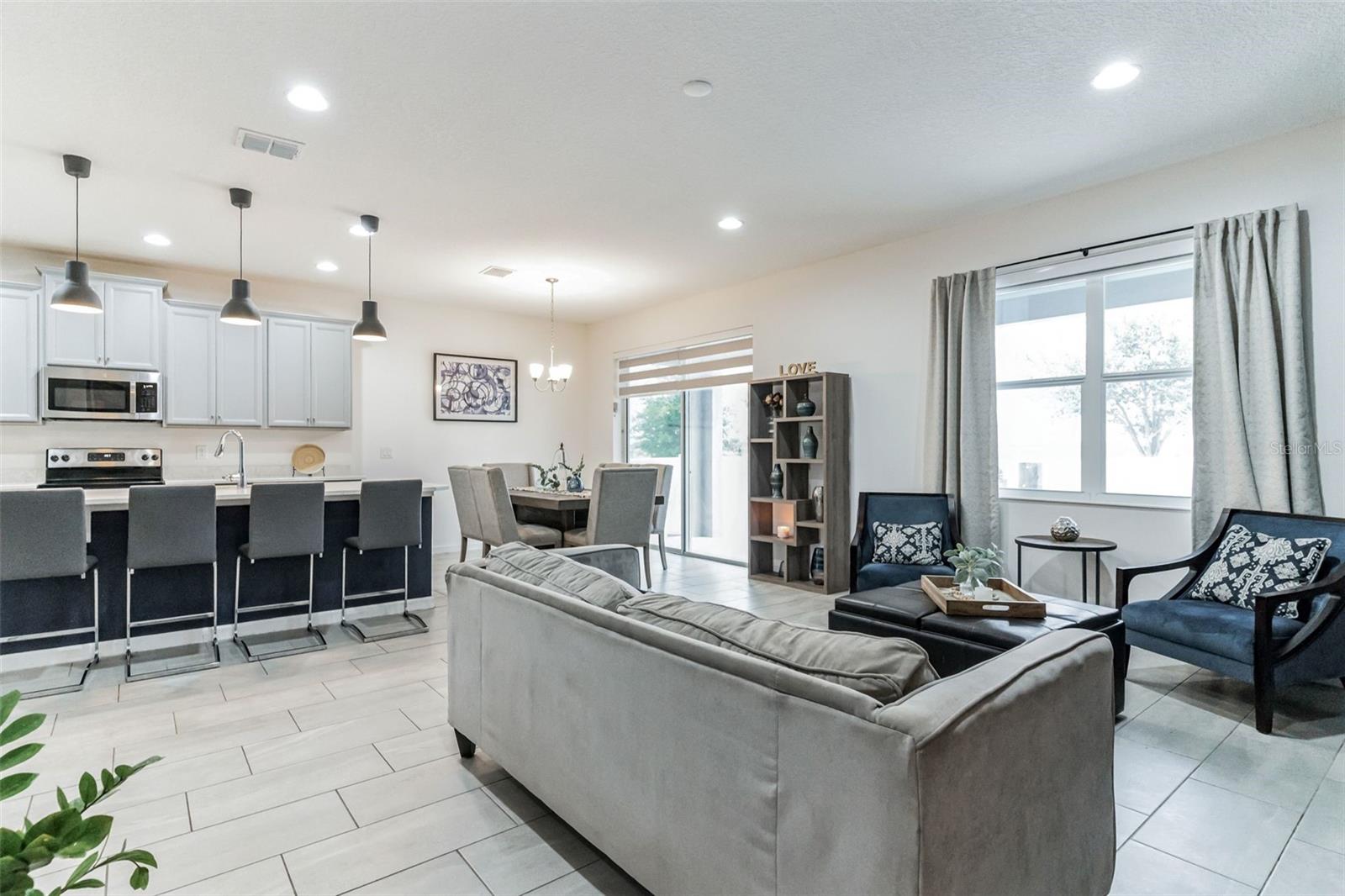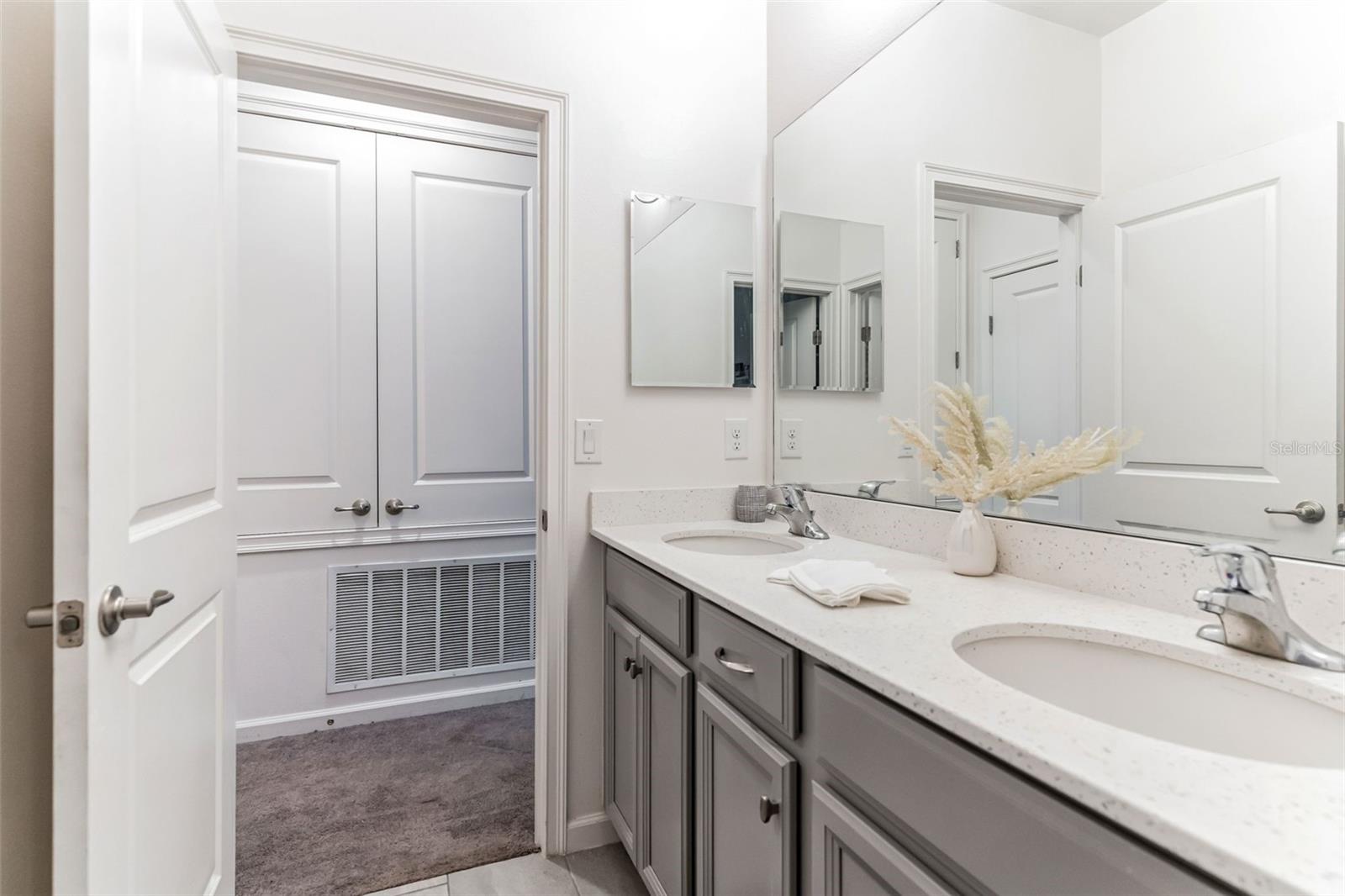 **Don't forget to immerse yourself in the 3D tour** Walk into one of the most beautiful pool homes in the area!. This spacious, bright and open Wellington model was built by Park Square homes just a few years ago. The home features: a tandem 3 car garage with luxury vinyl waterproof plank flooring, upgraded flooring throughout the entire first story including in the well appointed downstairs guest bedroom, there is a downstairs office, upgraded quartz countertops in the kitchen that features a large island and stainless steel appliances, there is also quartz in all bathrooms, upgraded fixtures throughout, a downstairs laundry room with a convenient laundry chute on the second story, a huge upstairs loft space/game room, plus four large bedrooms; the master bedroom is very spacious with a large walk-in closet and a smaller closet as well, and the master bathroom features double sinks with large shower. Other features include upgraded network panel for POE surveillance system in the master bedroom and a panel for fiber optic cable and modem in the laundry room, home theater surround system inputs and surround sound pre wiring in the ceiling of upstairs game room. In 2022 the 16x29 custom pool was added, for you to enjoy the FL sun in, it features the lagoon dark pebble tec finish, a sundeck with bubblers, multi color lights, a huge travertine deck plus pavers extension surrounds the pool, all completely fenced in and private with no rear neighbors. The landscaping has been professionally done with mature landscaping and an automatic irrigation system, the drive way pavers have been extended to go around the home. This home has everything you could ever need and wish for in Florida. It is located in the Golden Ridge community which is in desirable Davenport, just about 20 minutes away from Disney and about 30 minutes away from Legoland, but also conveniently located between Tampa and Orlando; there is shopping, dining, entertainment, hospitals, golf, etc. just a few minutes away. There is an easement between this property and the land behind which is privately owned is zoned as conservation/citrus grove as of right now. https://HomeJab.vr-360-tour.com/e/dFoBjlcRdQI/e Bedroom Closet Type: Walk-in Closet (Primary Bedroom).