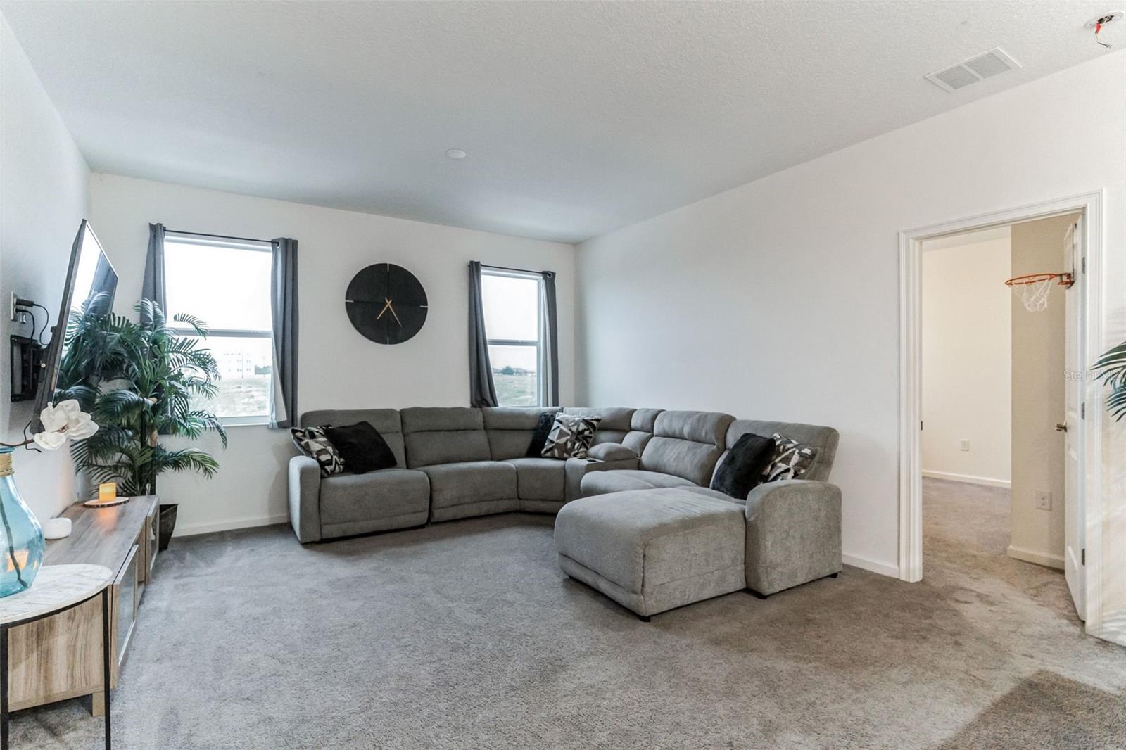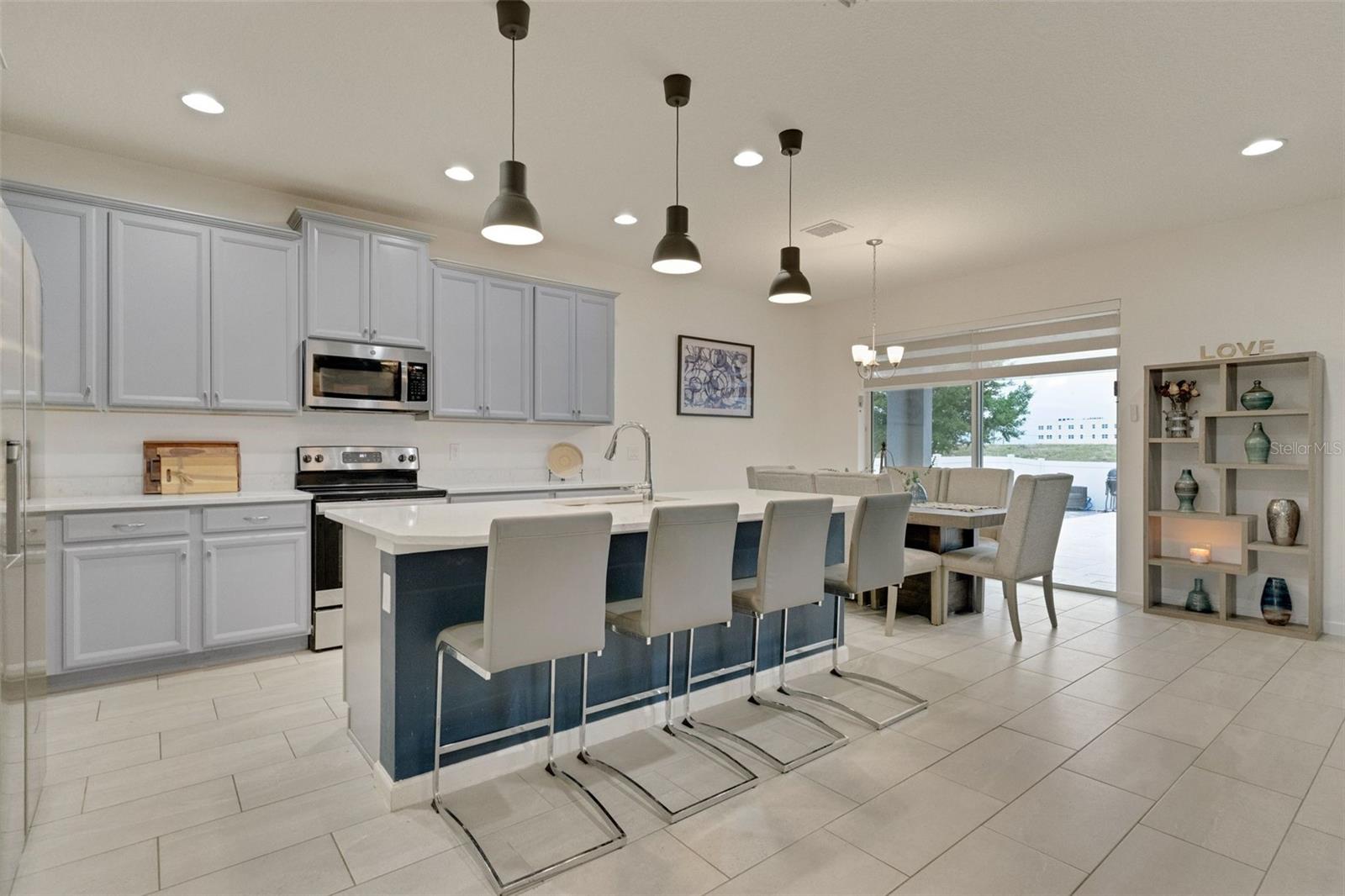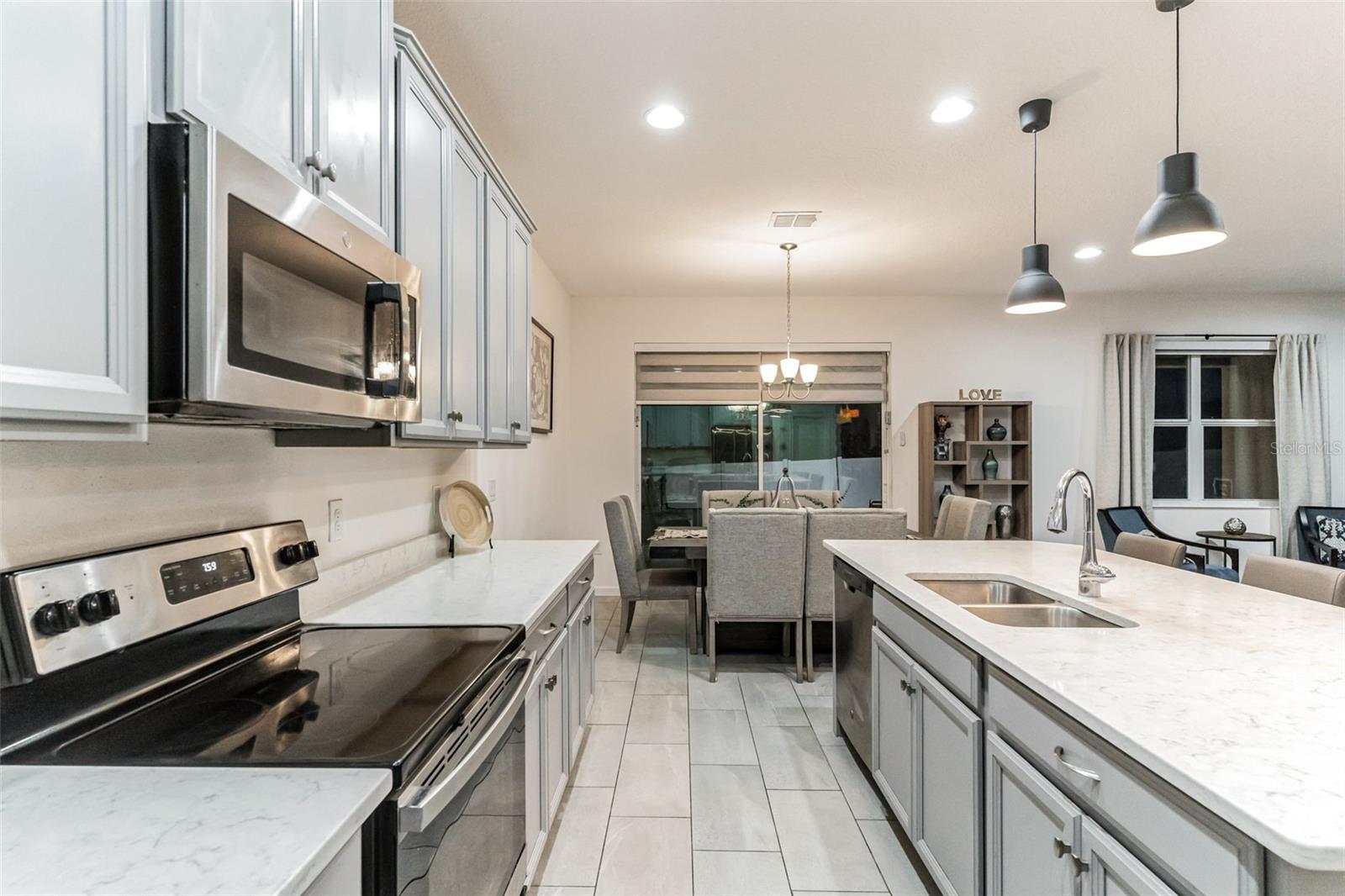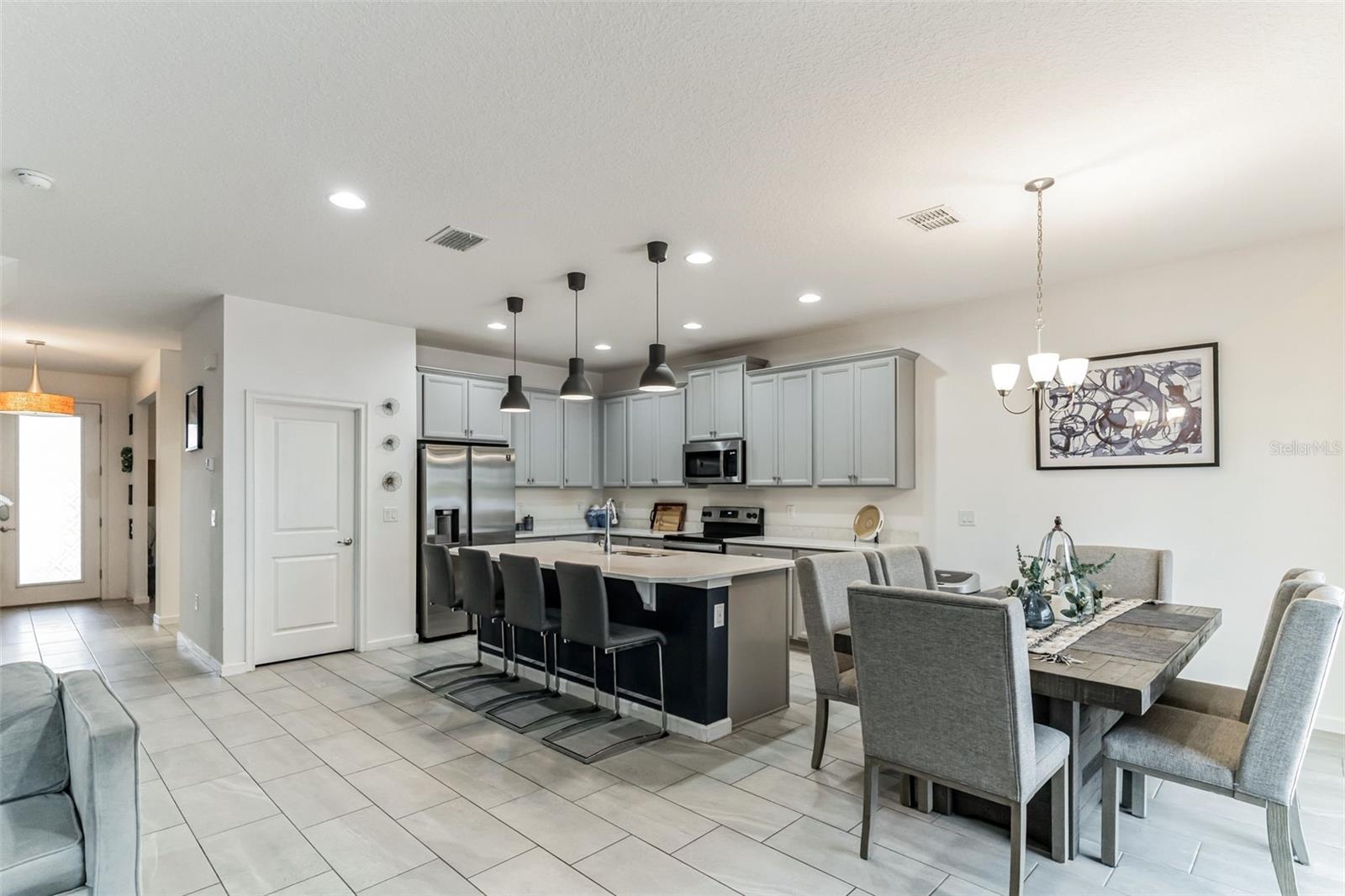 **Don't forget to immerse yourself in the 3D tour** Walk into one of the most beautiful pool homes in the area!. This spacious, bright and open Wellington model was built by Park Square homes just a few years ago. The home features: a tandem 3 car garage with luxury vinyl waterproof plank flooring, upgraded flooring throughout the entire first story including in the well appointed downstairs guest bedroom, there is a downstairs office, upgraded quartz countertops in the kitchen that features a large island and stainless steel appliances, there is also quartz in all bathrooms, upgraded fixtures throughout, a downstairs laundry room with a convenient laundry chute on the second story, a huge upstairs loft space/game room, plus four large bedrooms; the master bedroom is very spacious with a large walk-in closet and a smaller closet as well, and the master bathroom features double sinks with large shower. Other features include upgraded network panel for POE surveillance system in the master bedroom and a panel for fiber optic cable and modem in the laundry room, home theater surround system inputs and surround sound pre wiring in the ceiling of upstairs game room. In 2022 the 16x29 custom pool was added, for you to enjoy the FL sun in, it features the lagoon dark pebble tec finish, a sundeck with bubblers, multi color lights, a huge travertine deck plus pavers extension surrounds the pool, all completely fenced in and private with no rear neighbors. The landscaping has been professionally done with mature landscaping and an automatic irrigation system, the drive way pavers have been extended to go around the home. This home has everything you could ever need and wish for in Florida. It is located in the Golden Ridge community which is in desirable Davenport, just about 20 minutes away from Disney and about 30 minutes away from Legoland, but also conveniently located between Tampa and Orlando; there is shopping, dining, entertainment, hospitals, golf, etc. just a few minutes away. There is an easement between this property and the land behind which is privately owned is zoned as conservation/citrus grove as of right now. https://HomeJab.vr-360-tour.com/e/dFoBjlcRdQI/e Bedroom Closet Type: Walk-in Closet (Primary Bedroom).